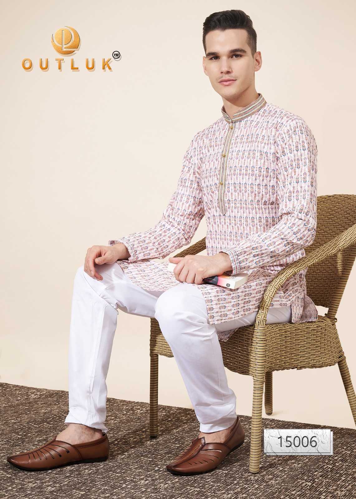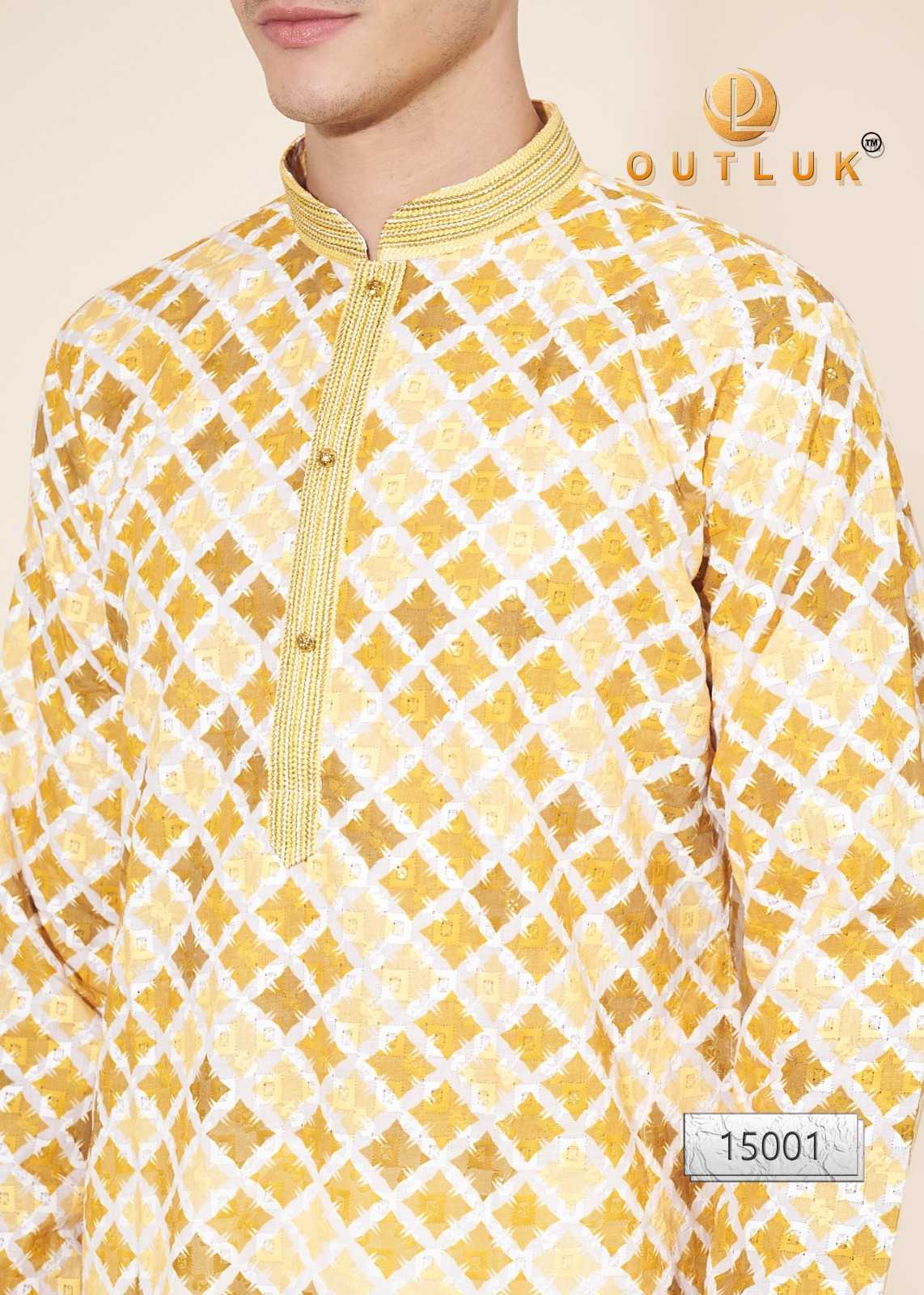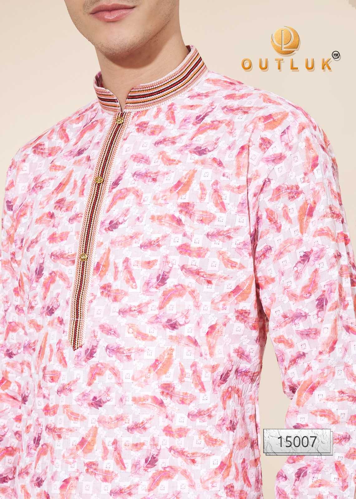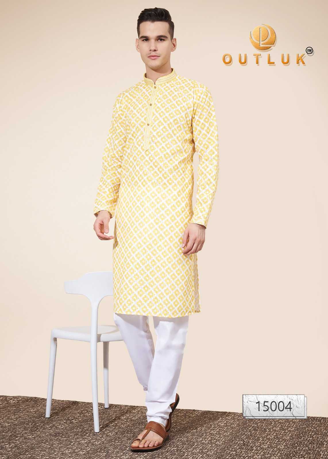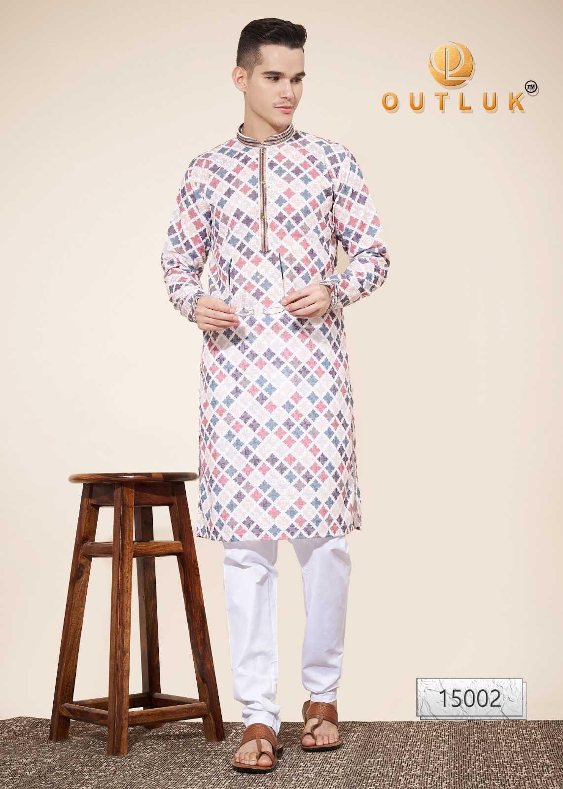 Outluk Added Wedding Collection Series New Designs in Pintex lakhnowi Work Kurta Pajama Outlook Catalog Name: Outlook Wedding Collection Vol 15 🔸 Fabric Details 🔸 ▪Kurta Fabric :- Heavy Cotton Digital Print with Lakhnowi, Sequance, Thread and Pintex Work ▪Pajama Fabric :- Art Silk ▪Total Design:- 7 pcs ▪Size:- 38,40,42,44 📝Booking started from now... Set And Single Available