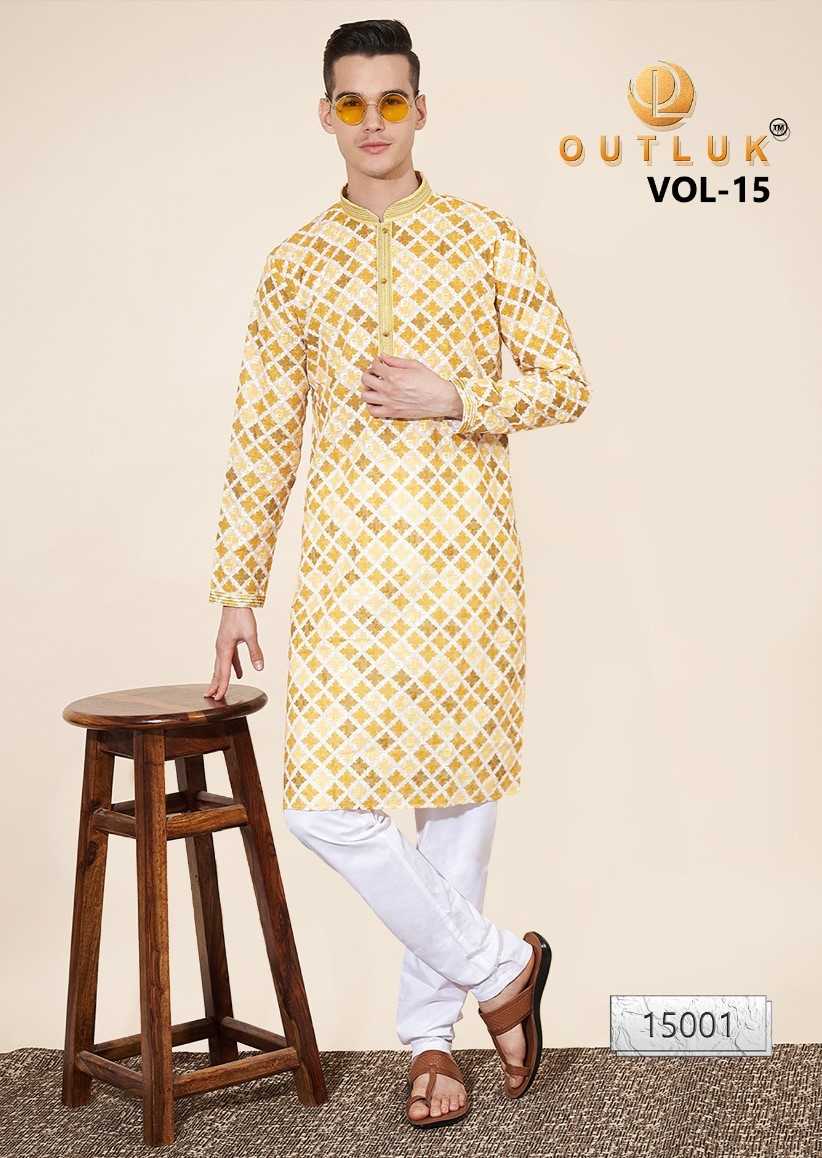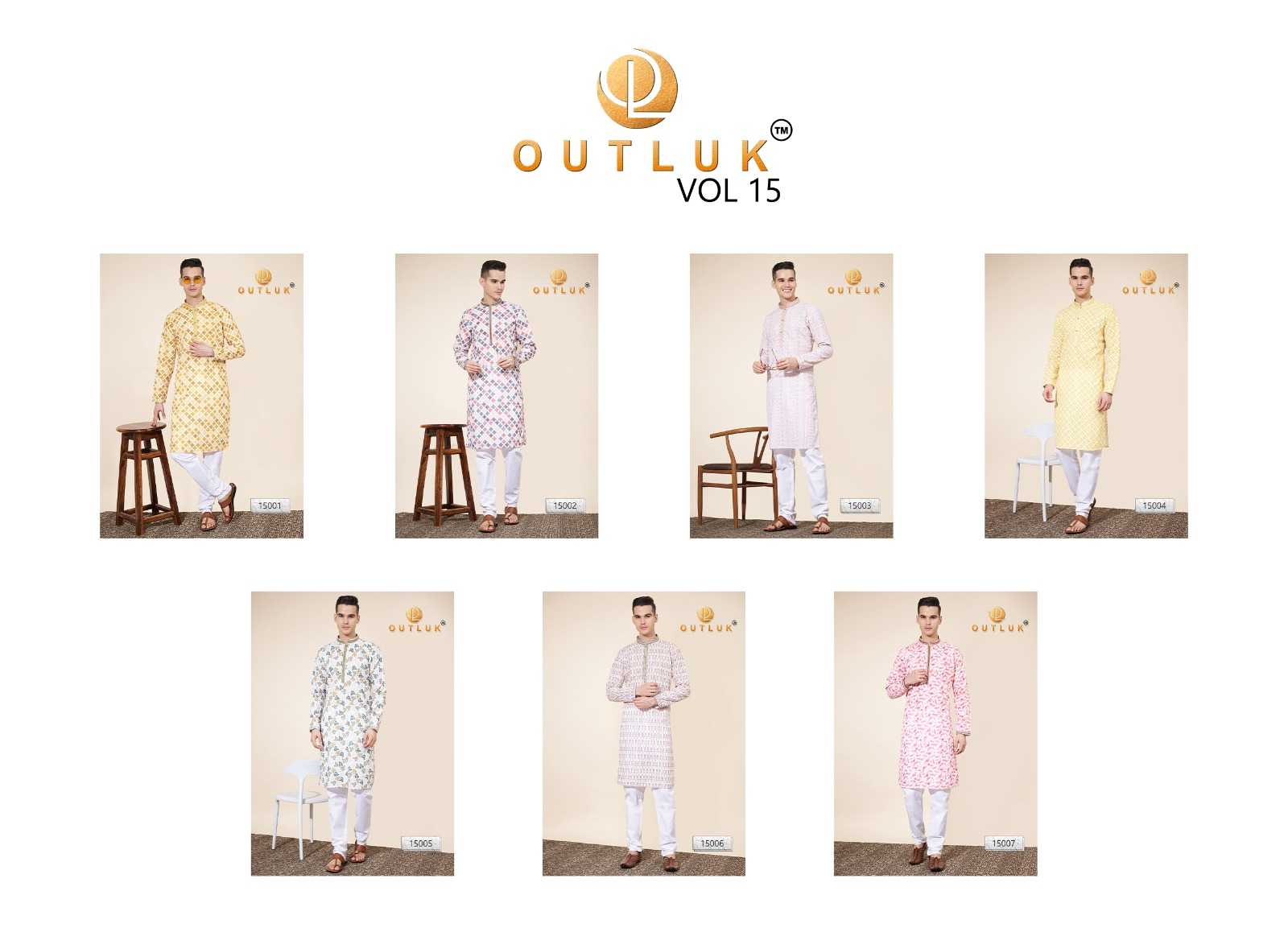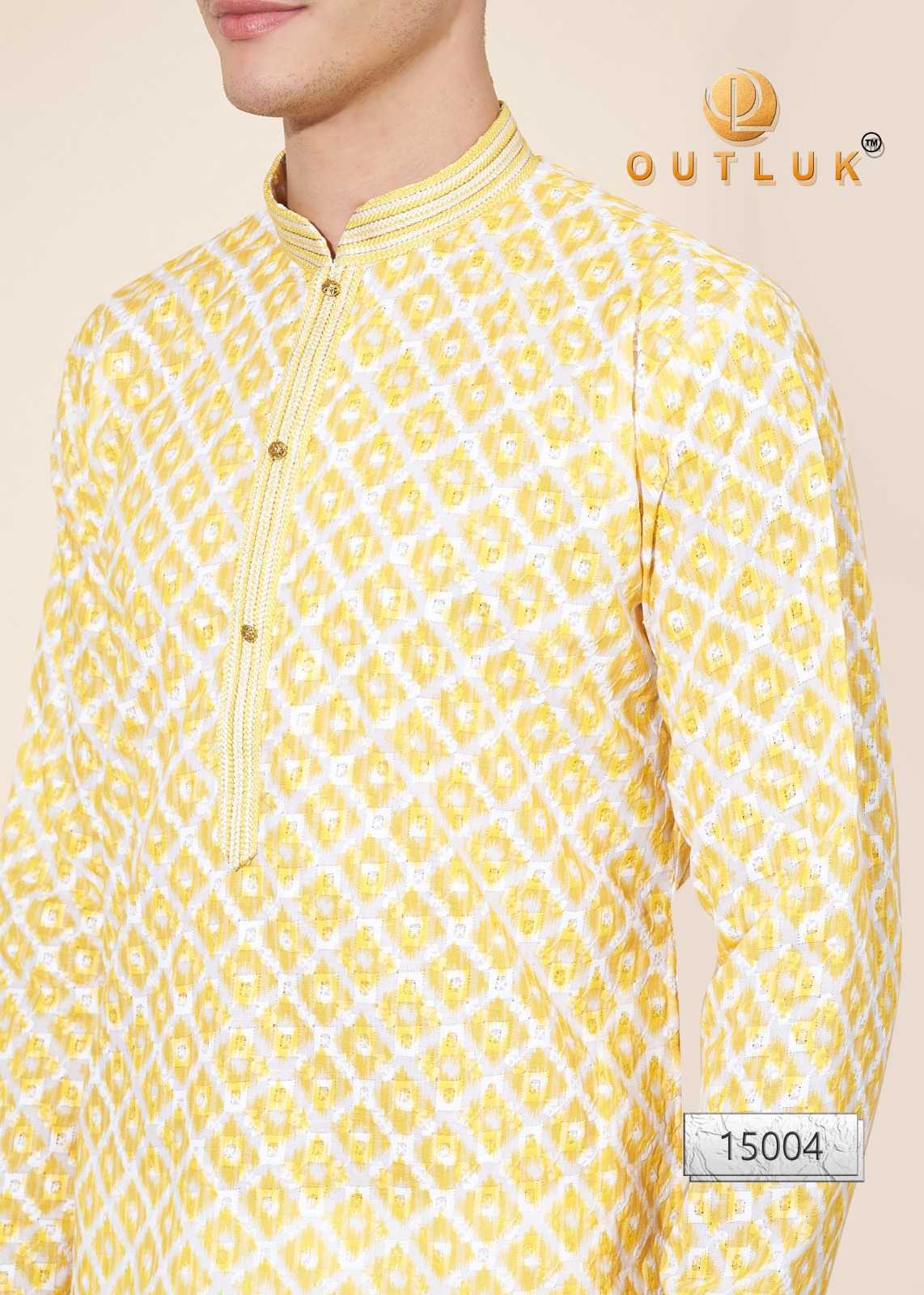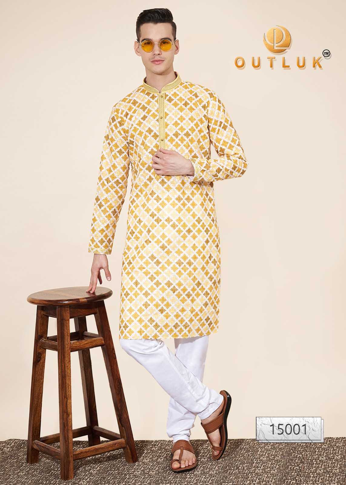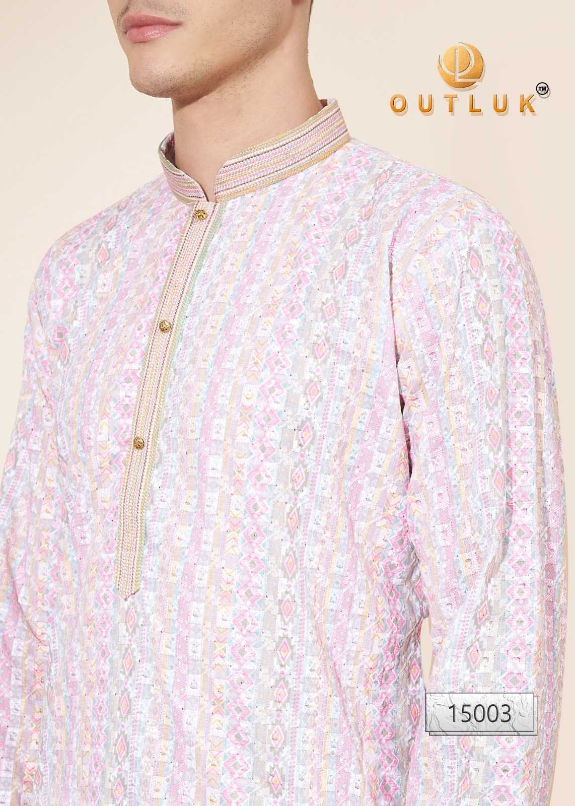 Outluk Added Wedding Collection Series New Designs in Pintex lakhnowi Work Kurta Pajama Outlook Catalog Name: Outlook Wedding Collection Vol 15 🔸 Fabric Details 🔸 ▪Kurta Fabric :- Heavy Cotton Digital Print with Lakhnowi, Sequance, Thread and Pintex Work ▪Pajama Fabric :- Art Silk ▪Total Design:- 7 pcs ▪Size:- 38,40,42,44 📝Booking started from now... Set And Single Available