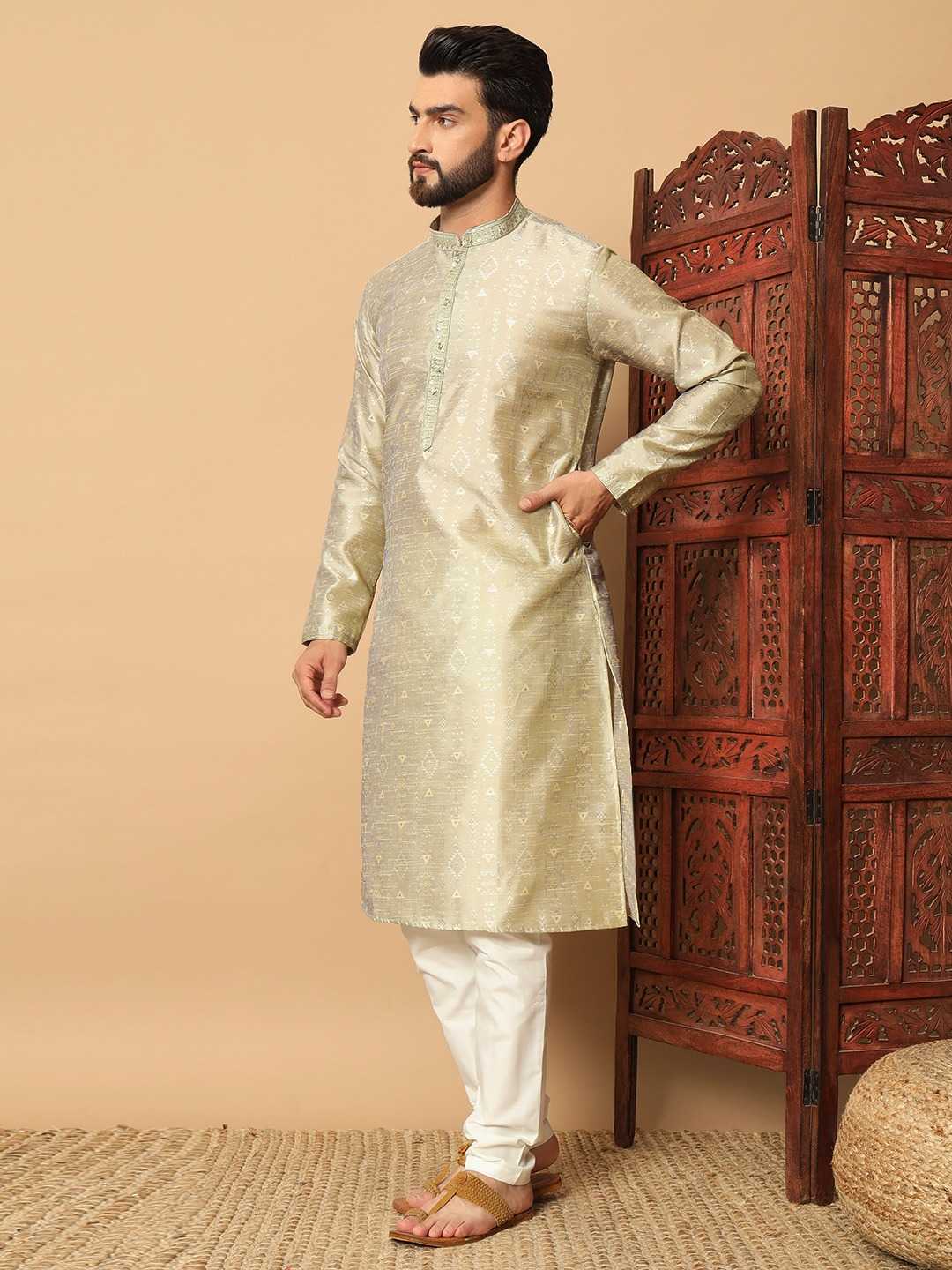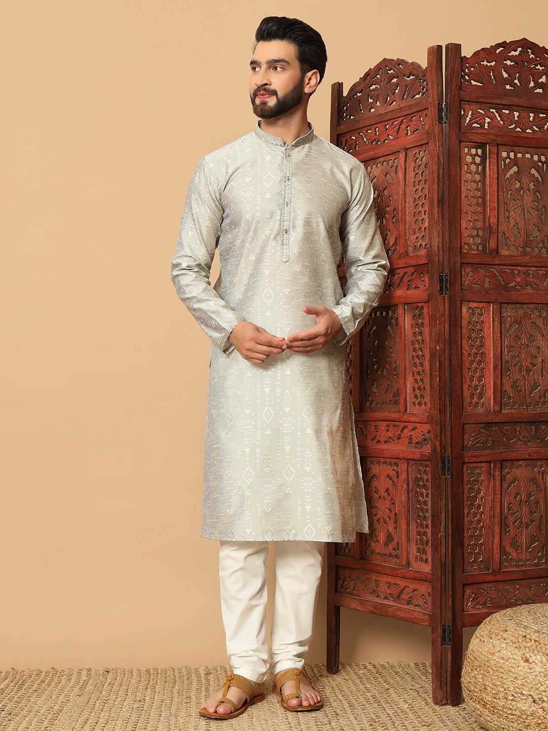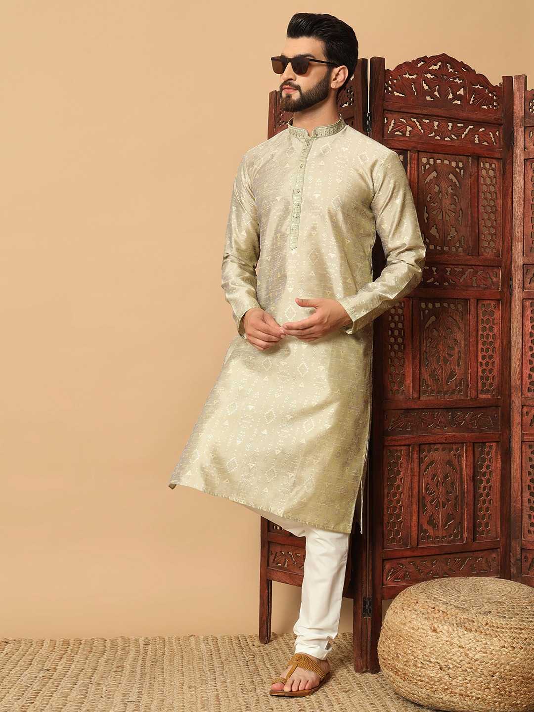 pr outluk vol 130 fancy jacquard party wear full stitch mens kurta with pajama
