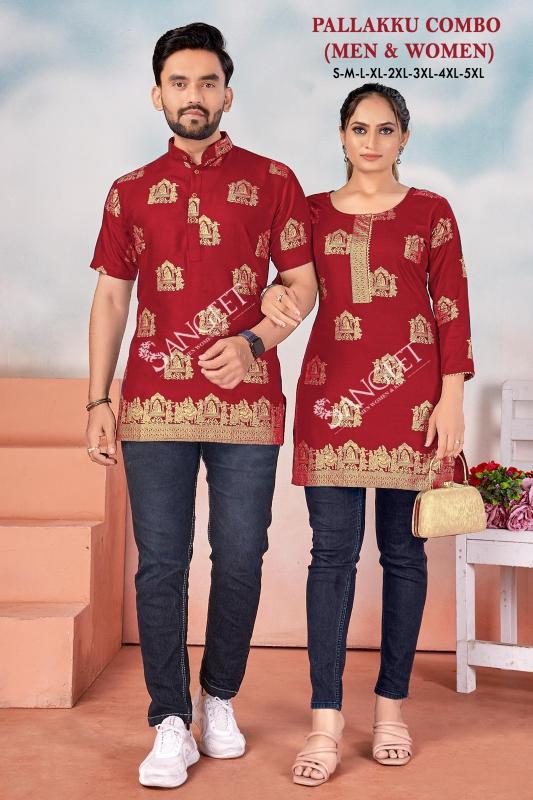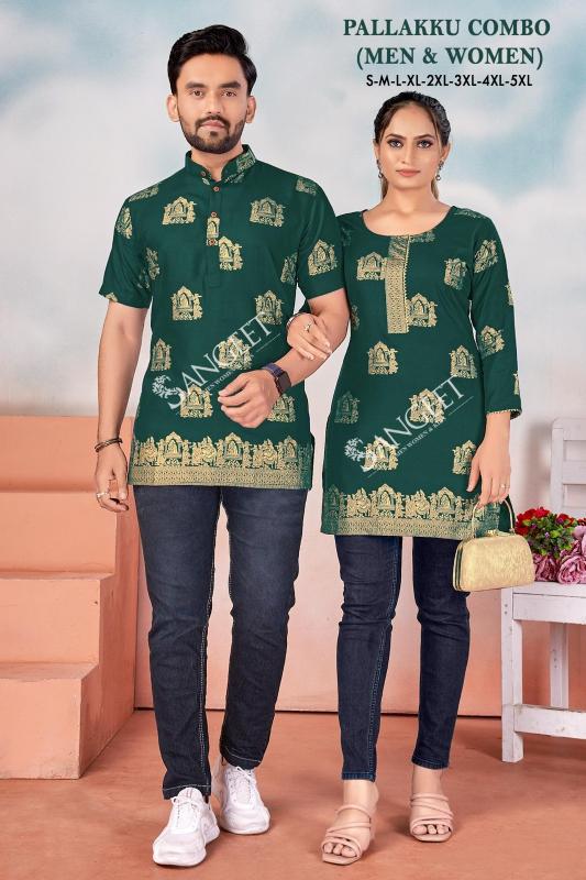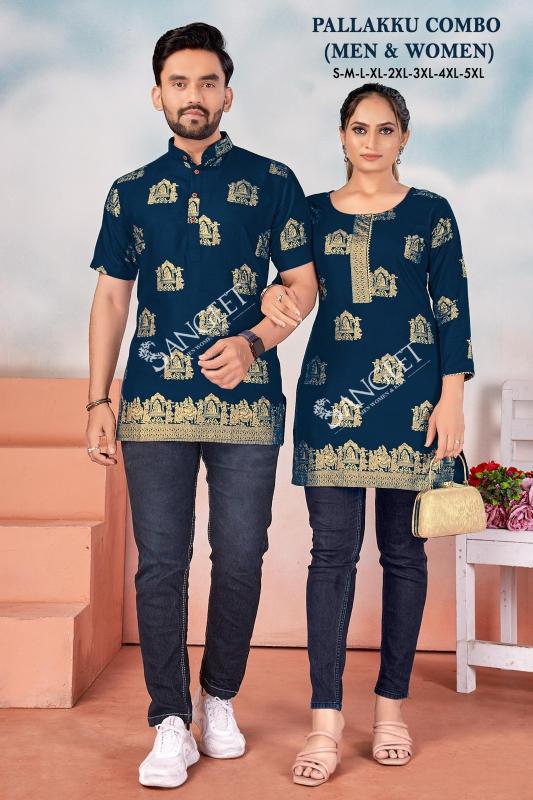 pr pallakku combo men & women readymade rayon gold print big size kuta & kurtis supplier