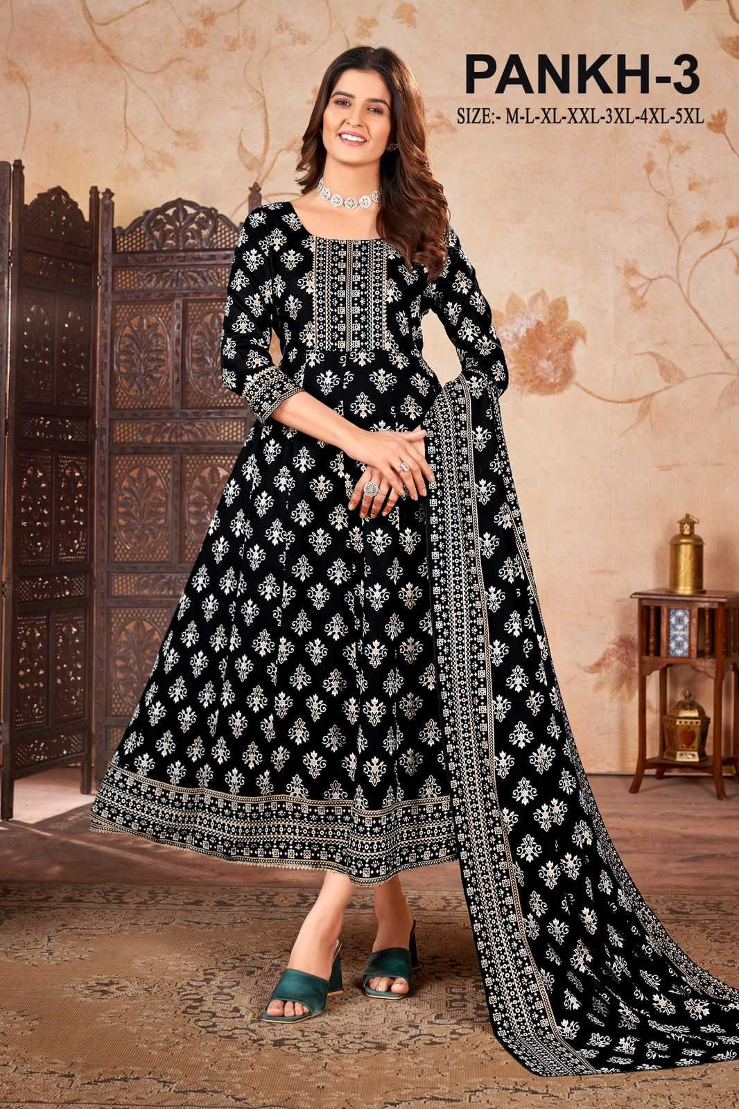 👗 PANKH-3👗 TOP - HEAVY 14 KG RAYON WITH MULTI GOLD PRINT DUPATTA - HEAVY 14 KG RAYON WITH MULTI GOLD PRINT