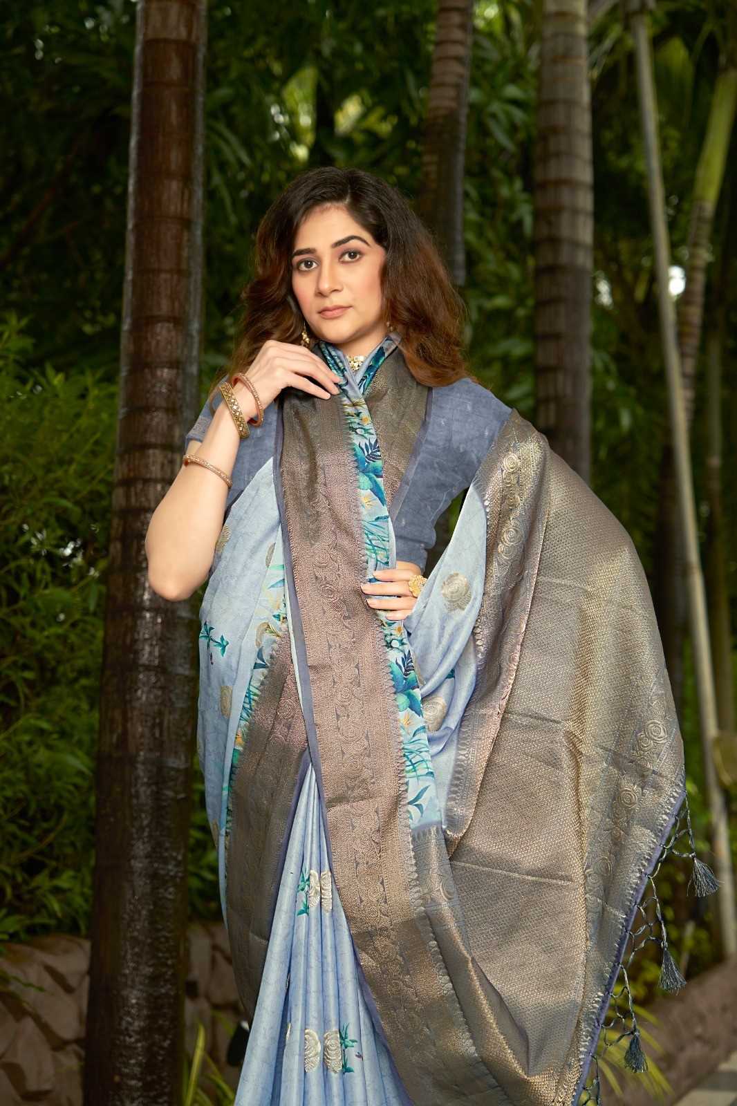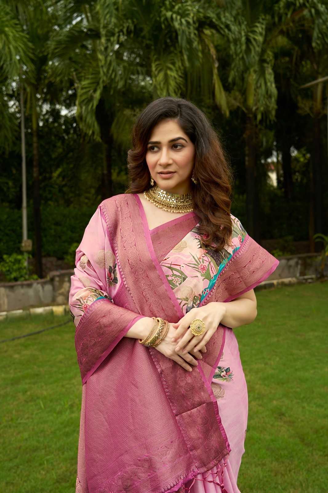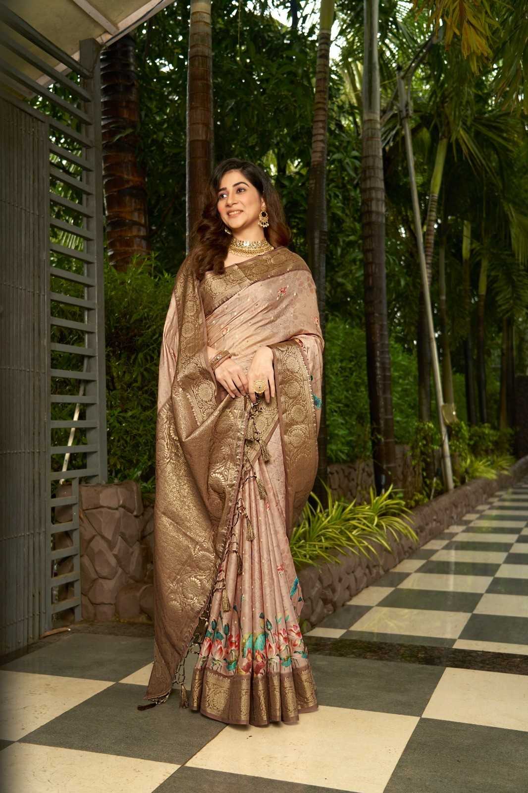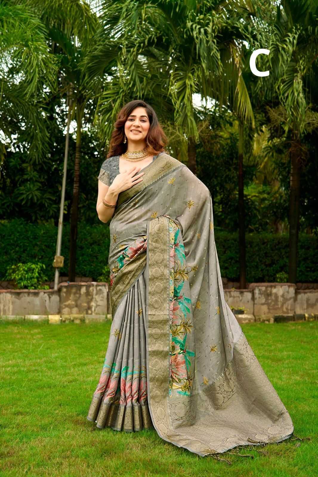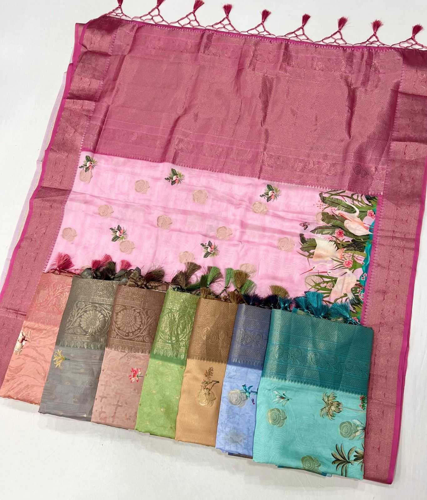 The Feminine Charm And Melodic Grace Of This Pastel Saree Add A Touch Of Sophistication And Elegance To Your Look Catalog Name : Pastel Vol -1 Series: A to H Saree Fabric : Soft Weaving Sartin Fabric With Rich Pallu & Digital Print Or Attached Tussles On Pallu Blouse Fabric : Jacquard Occasion : Festival Wear, Party Wear |