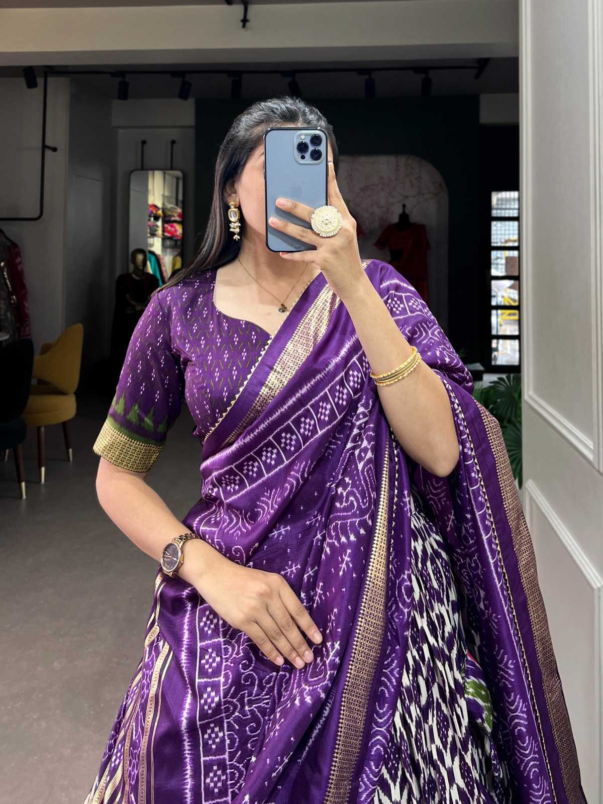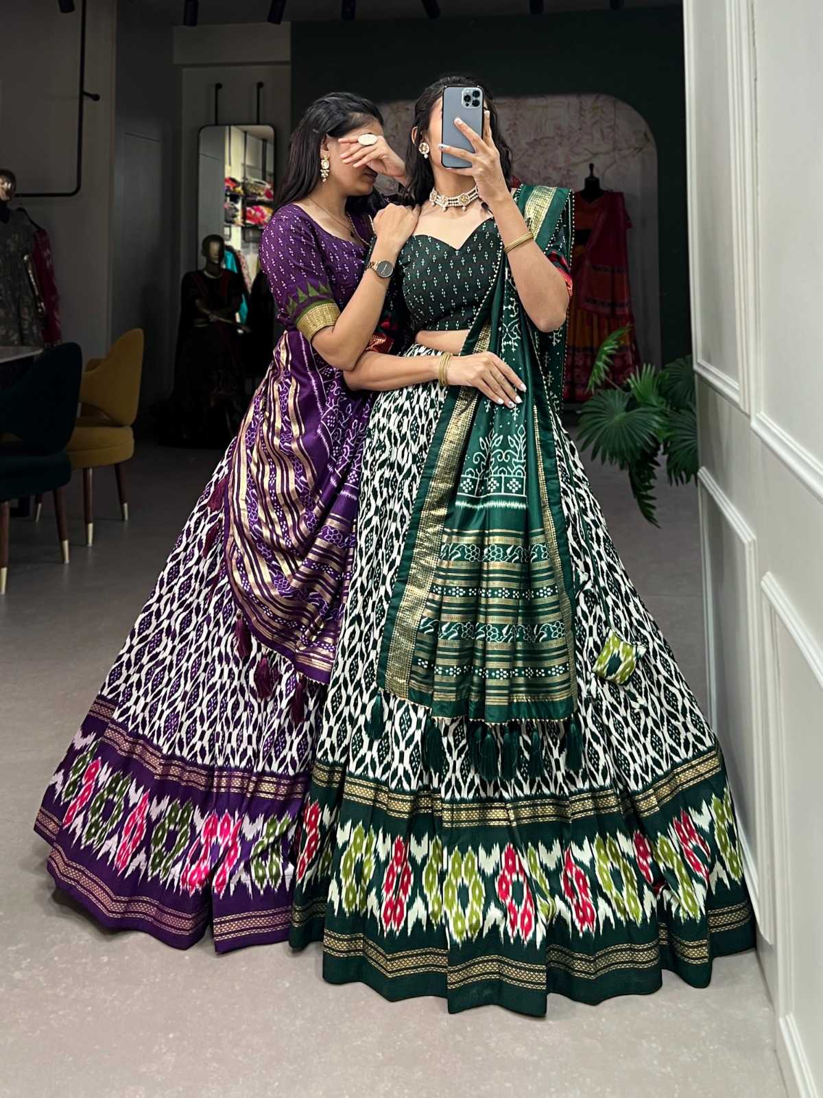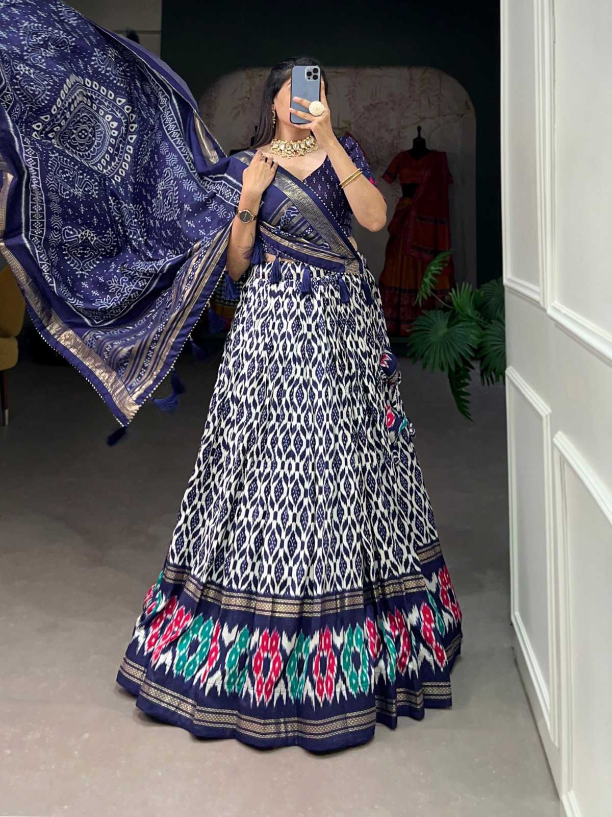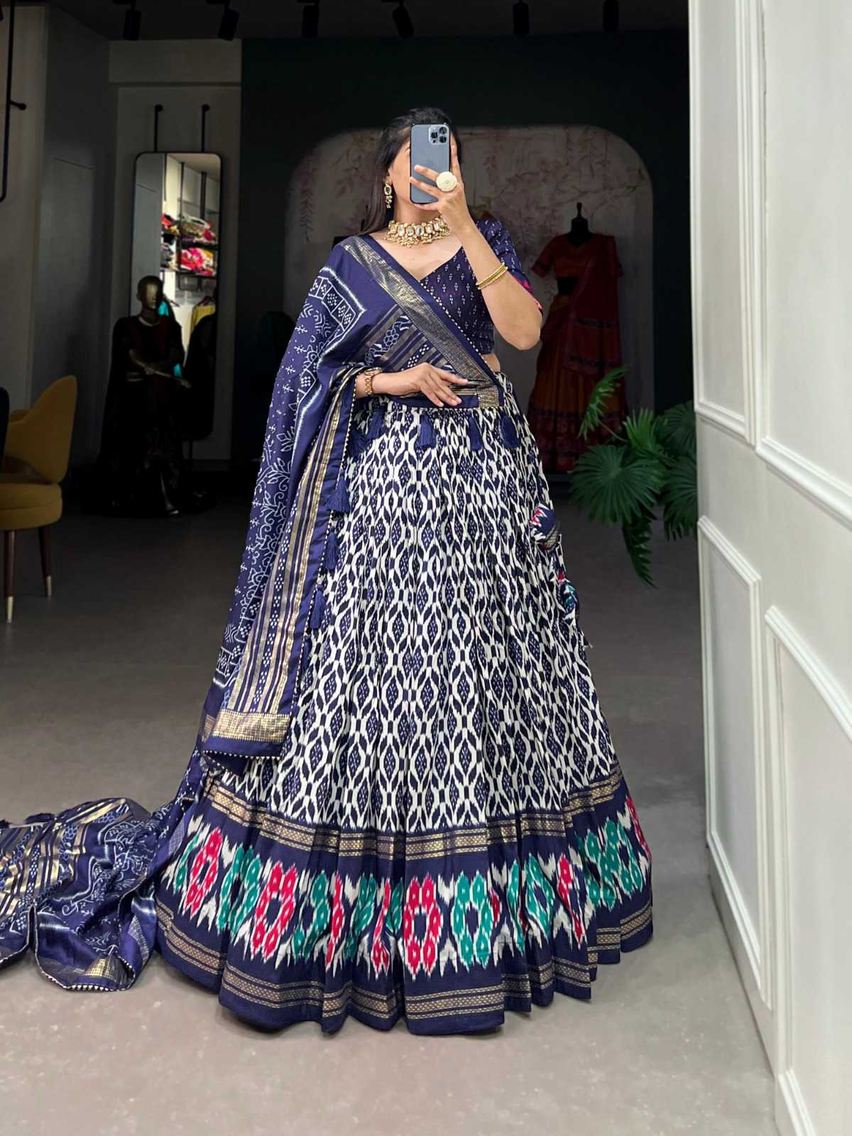 pr pranauthi tussar silk ikkat print stitch lehenga unstitch blouse dupatta