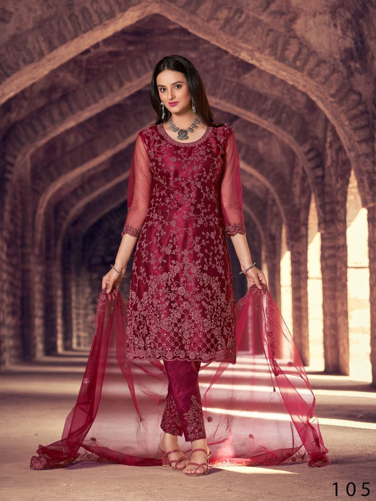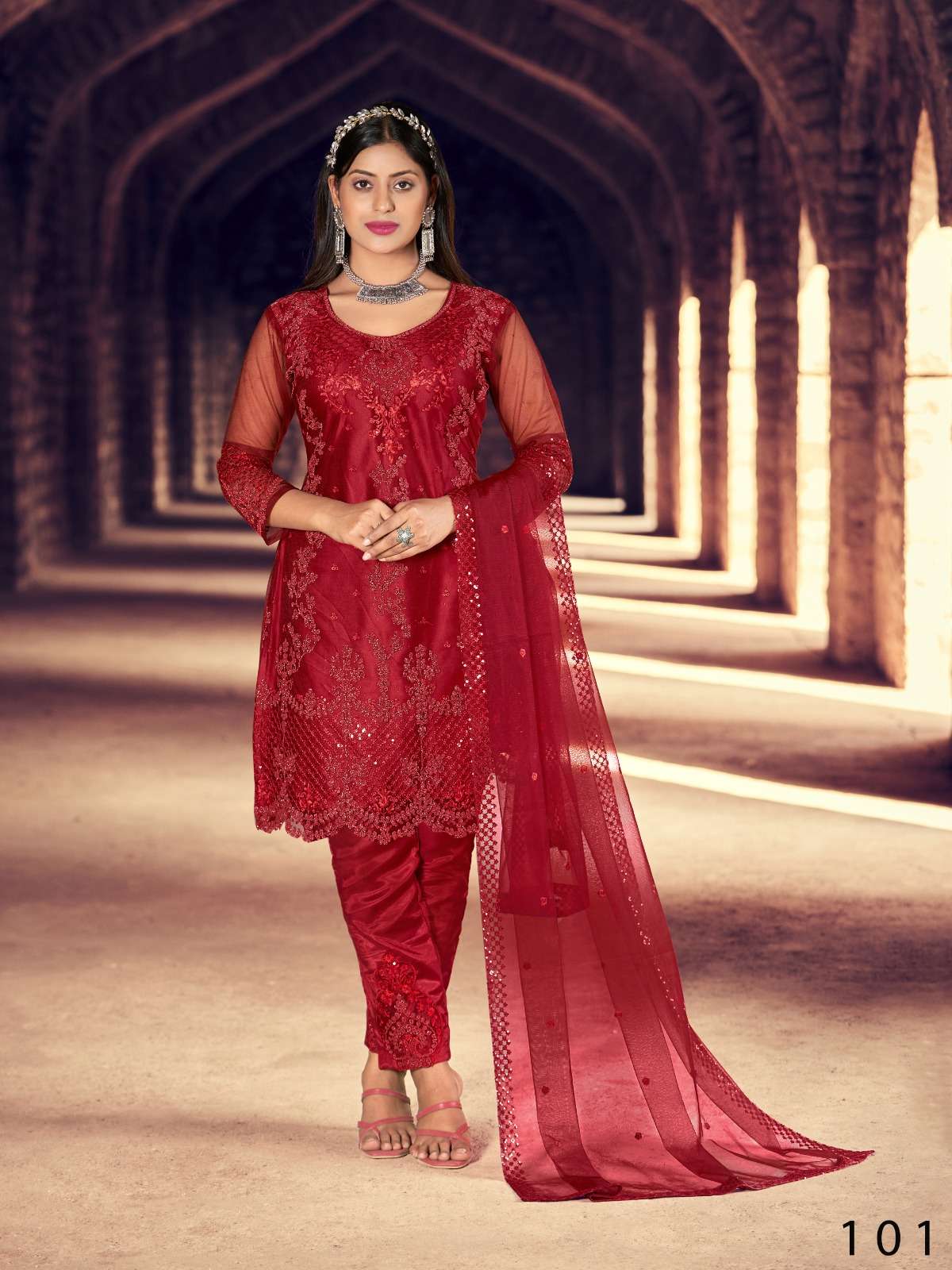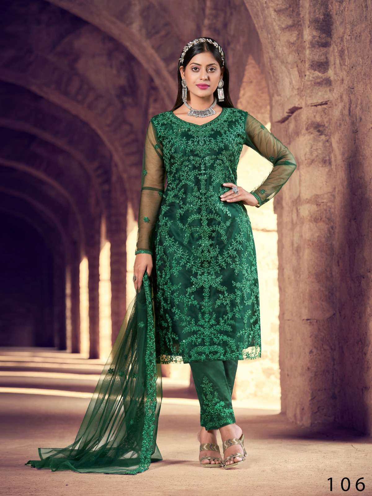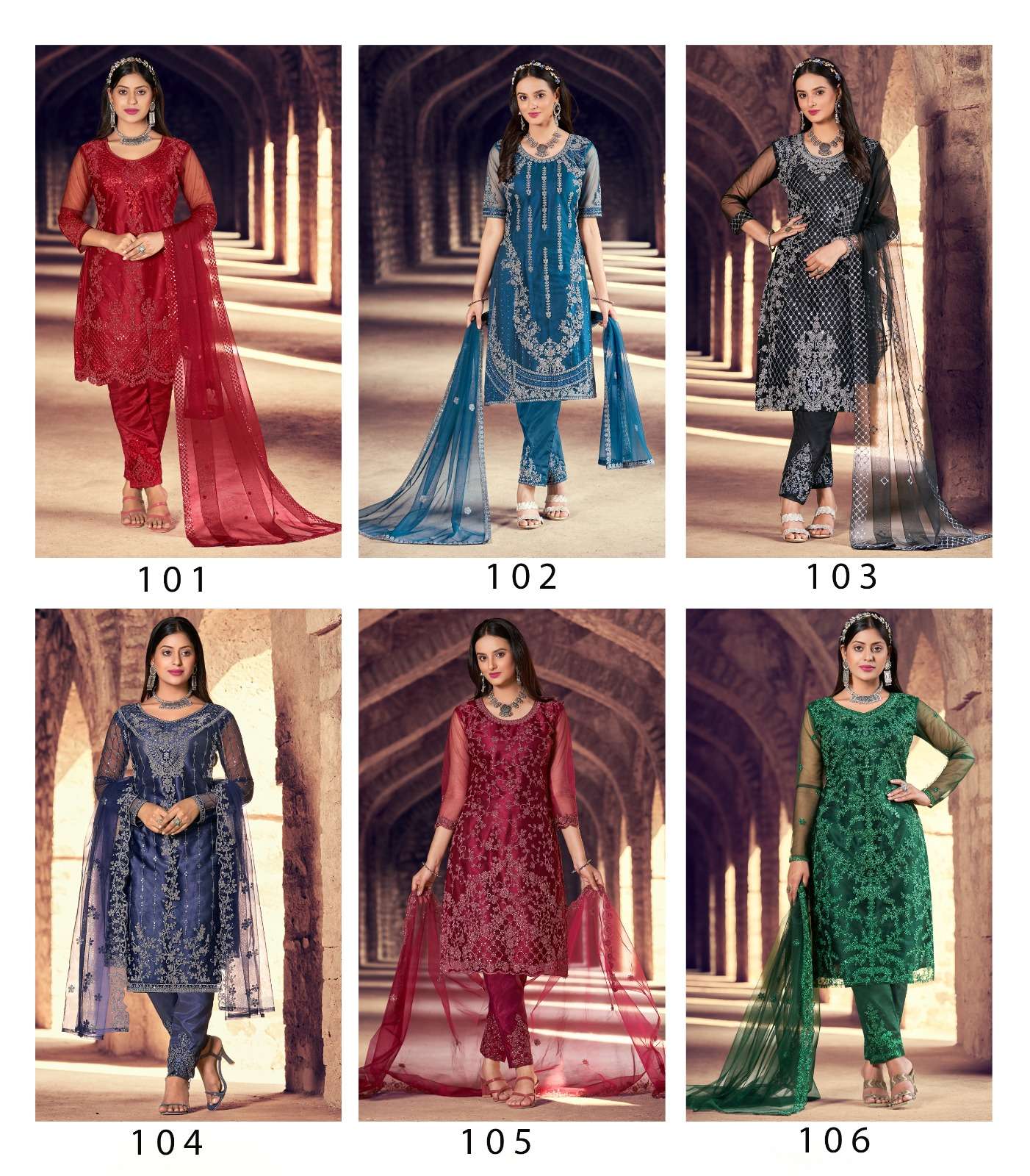 New Launch Catalog Fabric Details :- Stitched Type :- Semi stitched Total 6 Designs. GST : 5%
