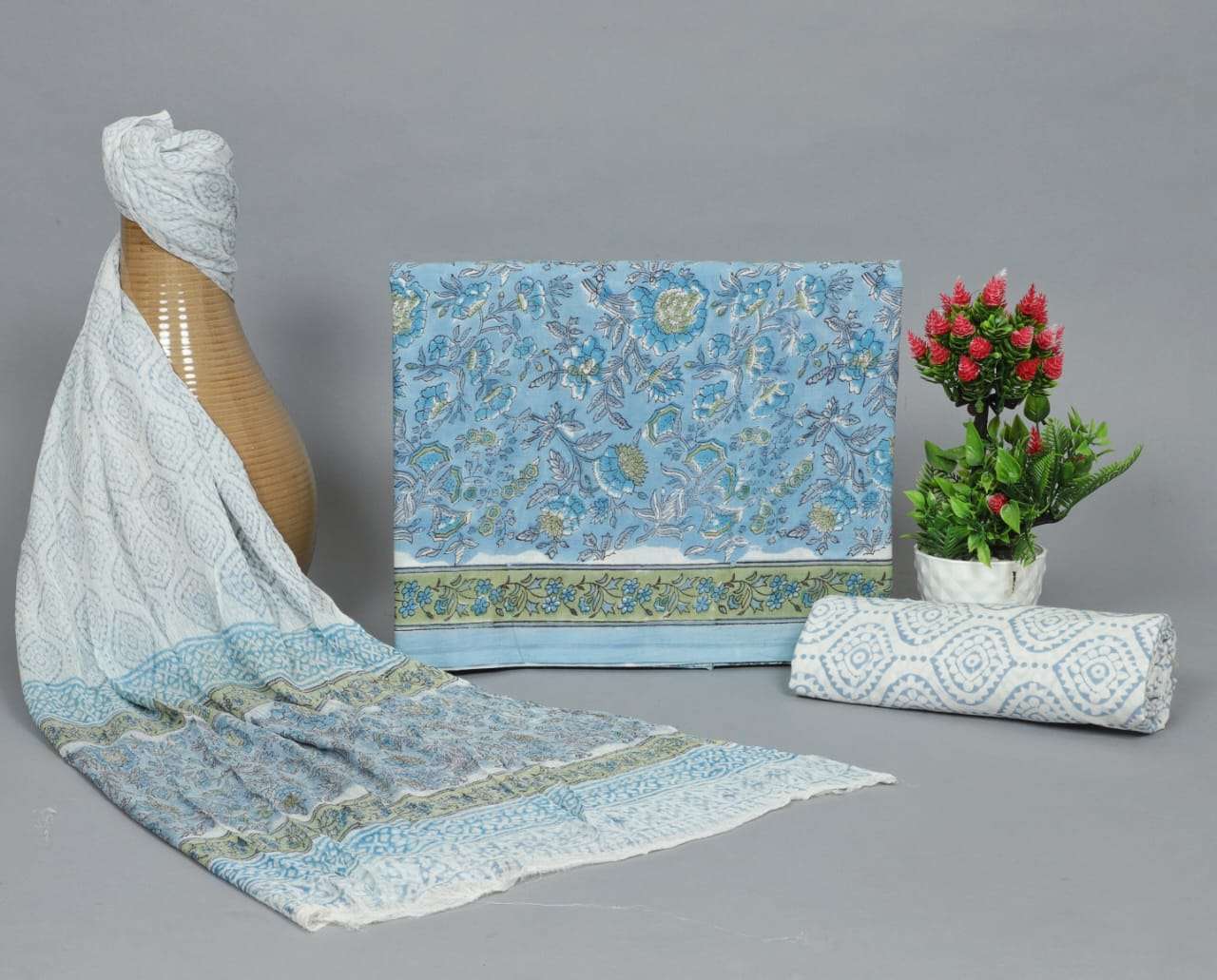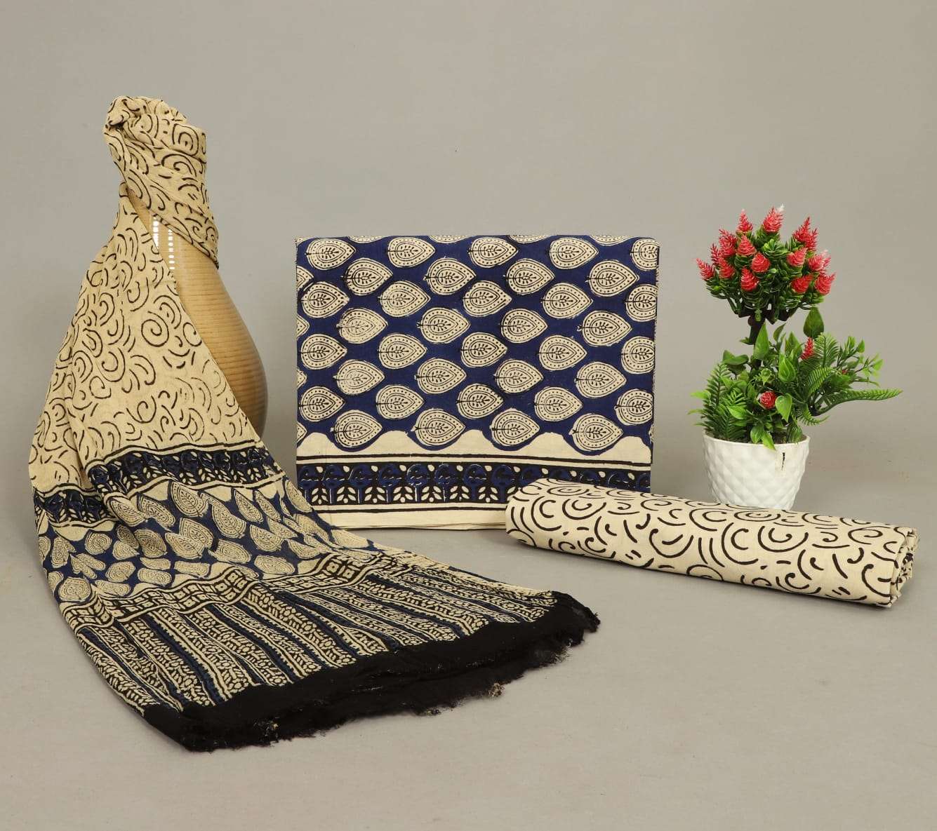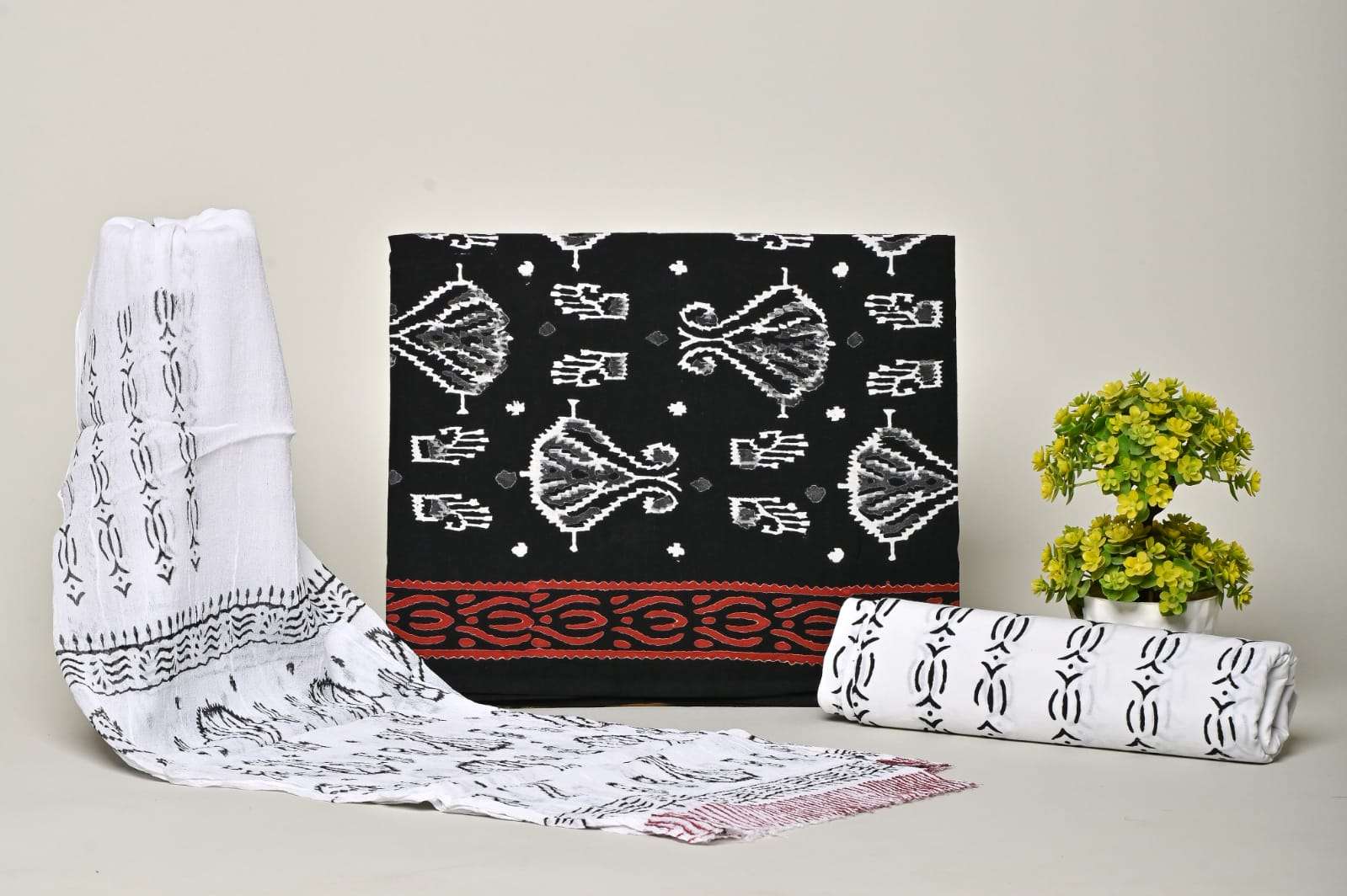 Exclusive new hand block printed cotton dress materials with chiffon dupata👌👌