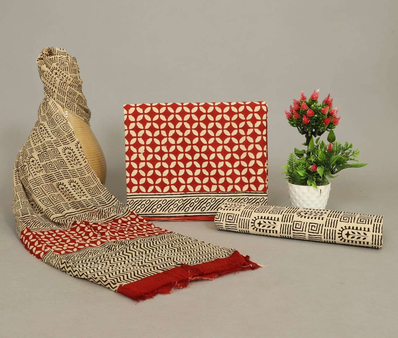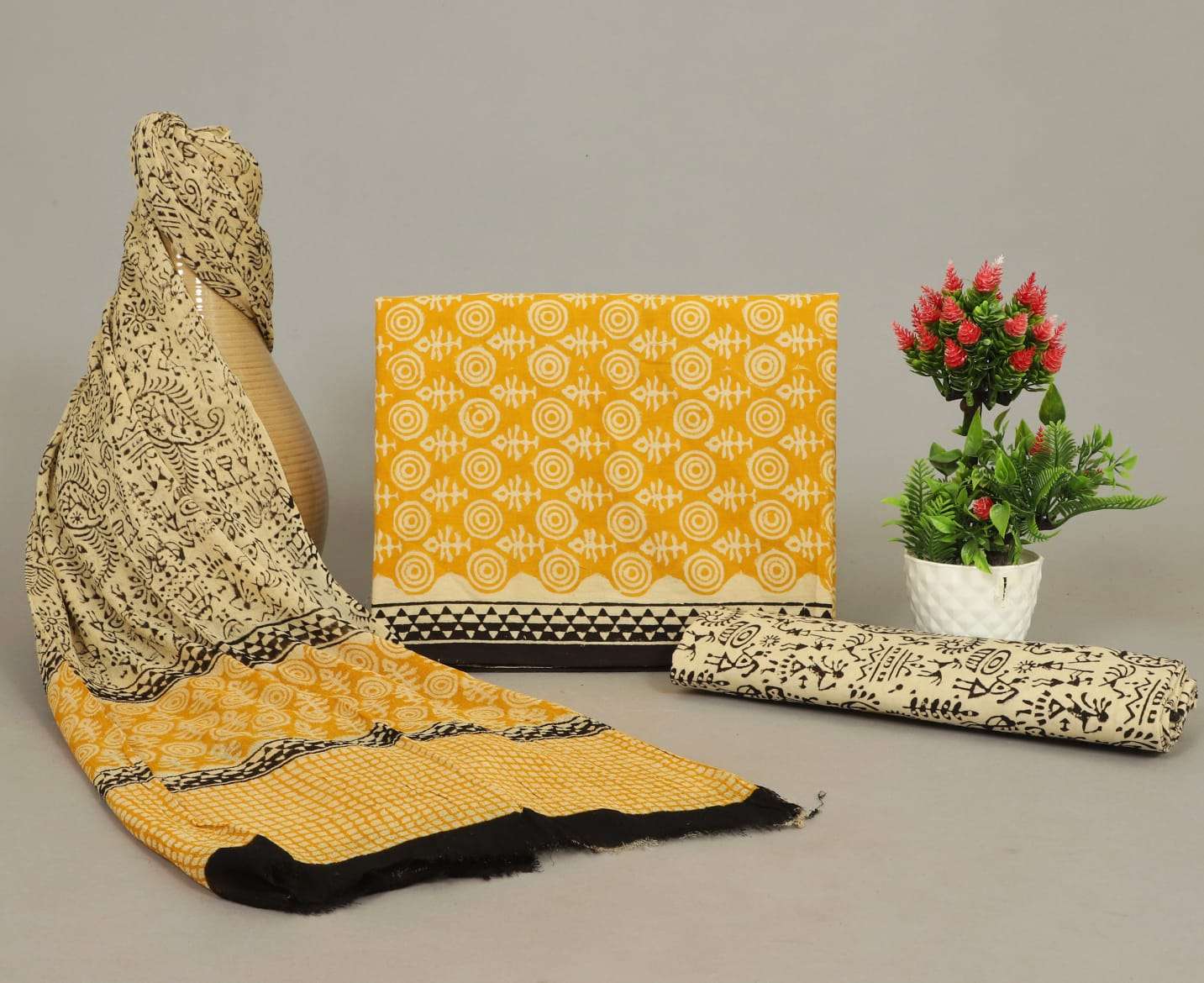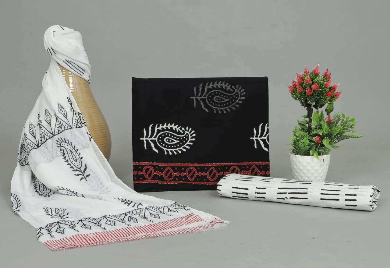 Exclusive new hand block printed cotton dress materials with chiffon dupata👌👌