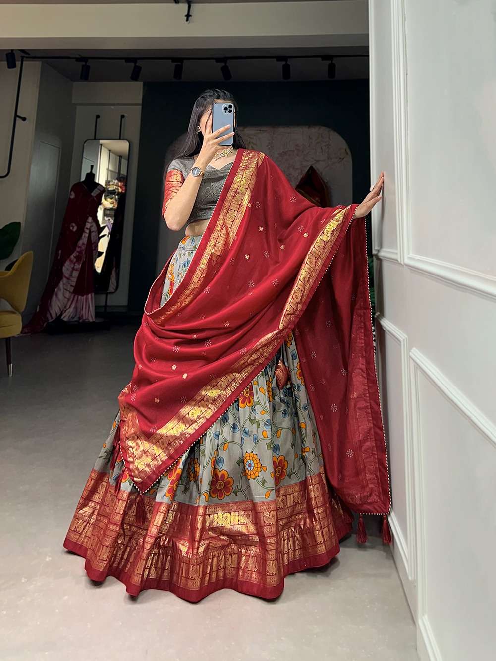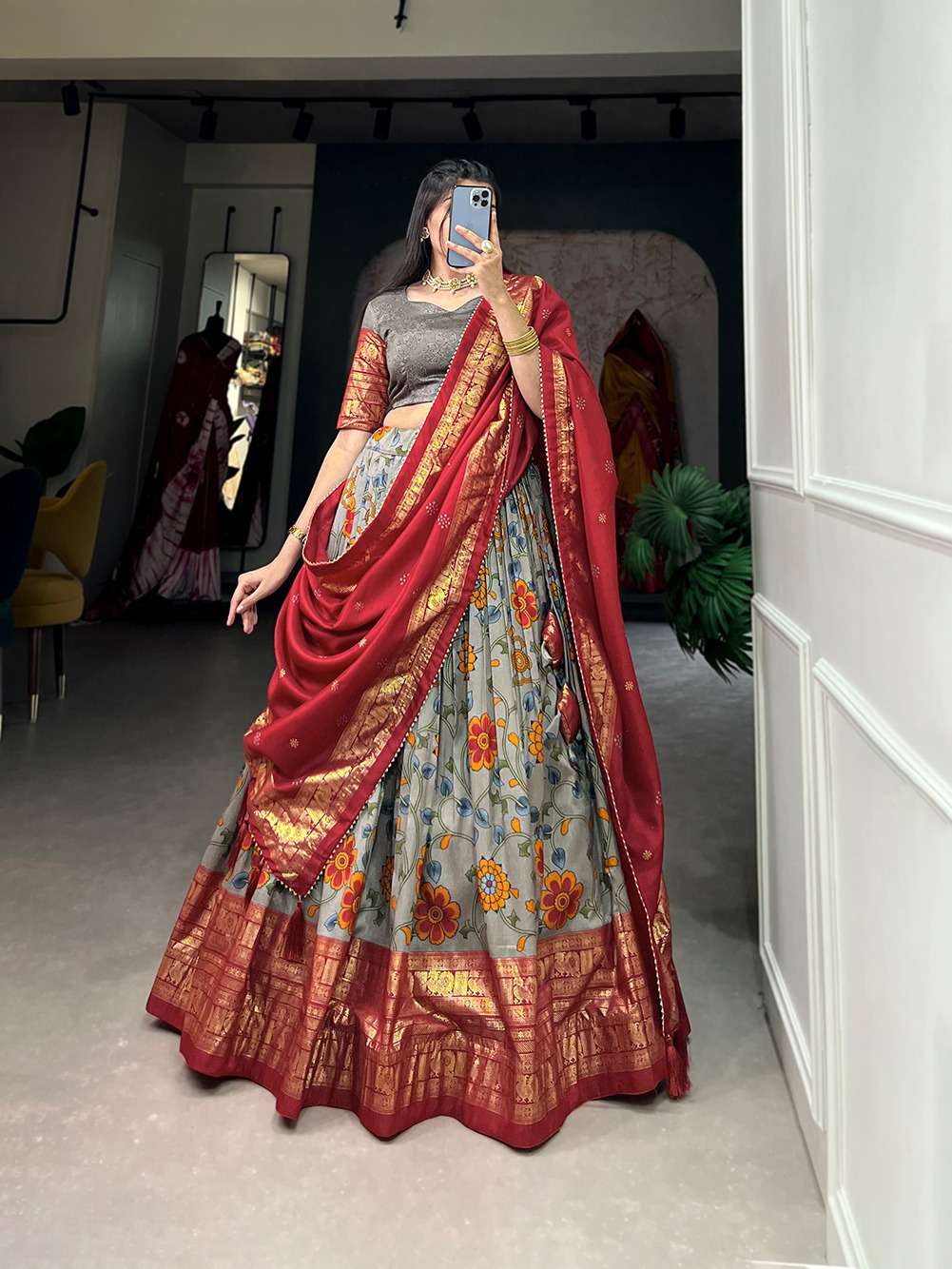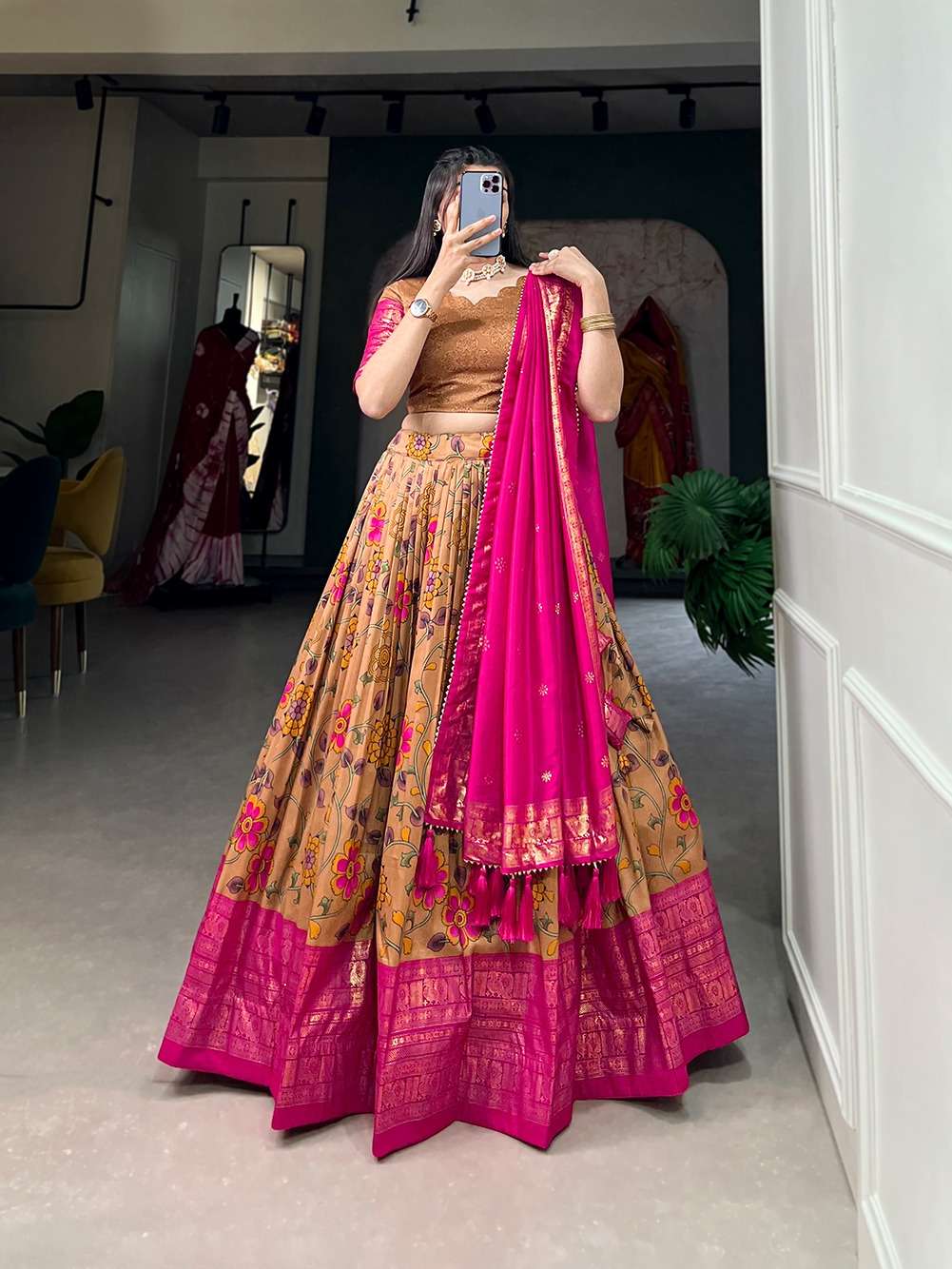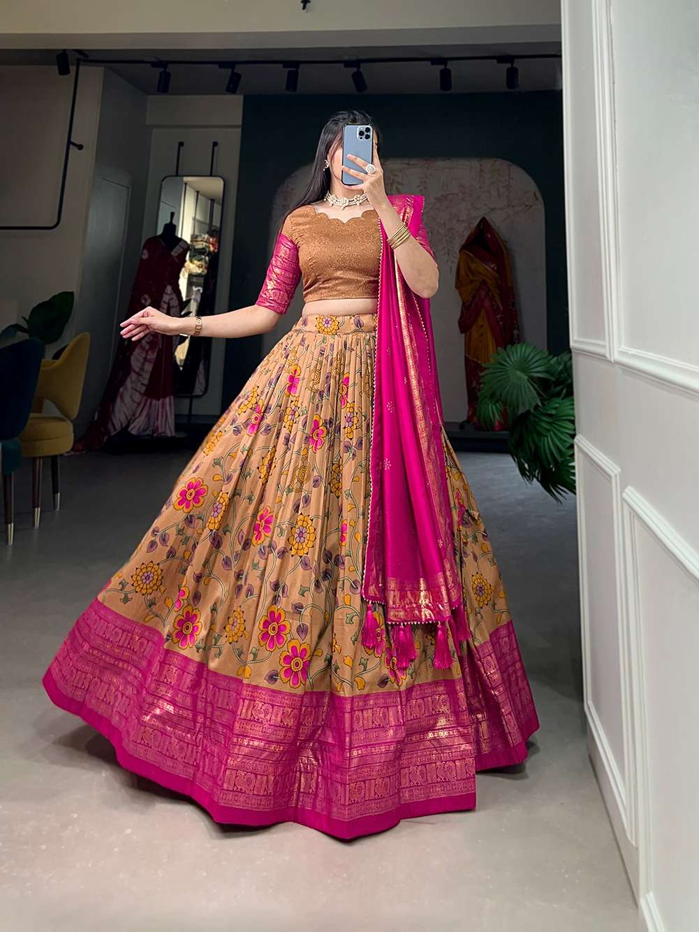 pr priyamani fancy tussar silk festival wear kalamkari print full stitch lehenga & unstitch choli