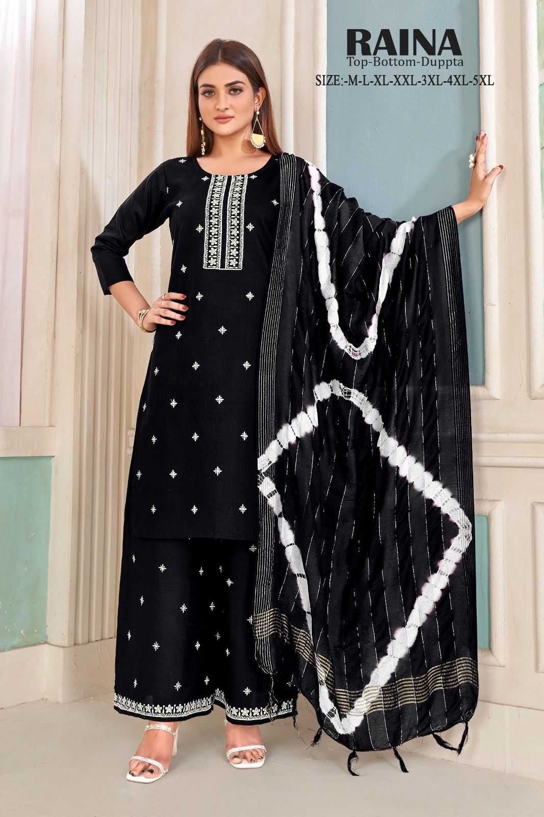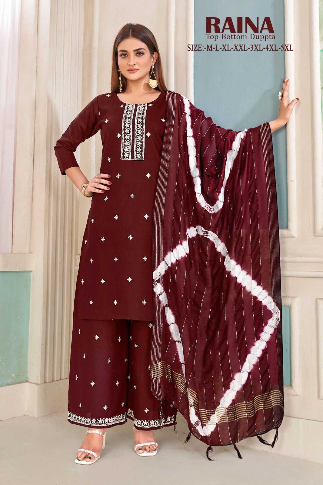 💐 RAINA💐 👗. TOP MAGIC COTTON WITH FANCY WORK 👖 BOTTOM MAGIC COTTON WITH WORK 🧣 DUPTTA FANCY SHADED ➖M L XL XXL 3XL 4XL 5XL RATE-600/- |