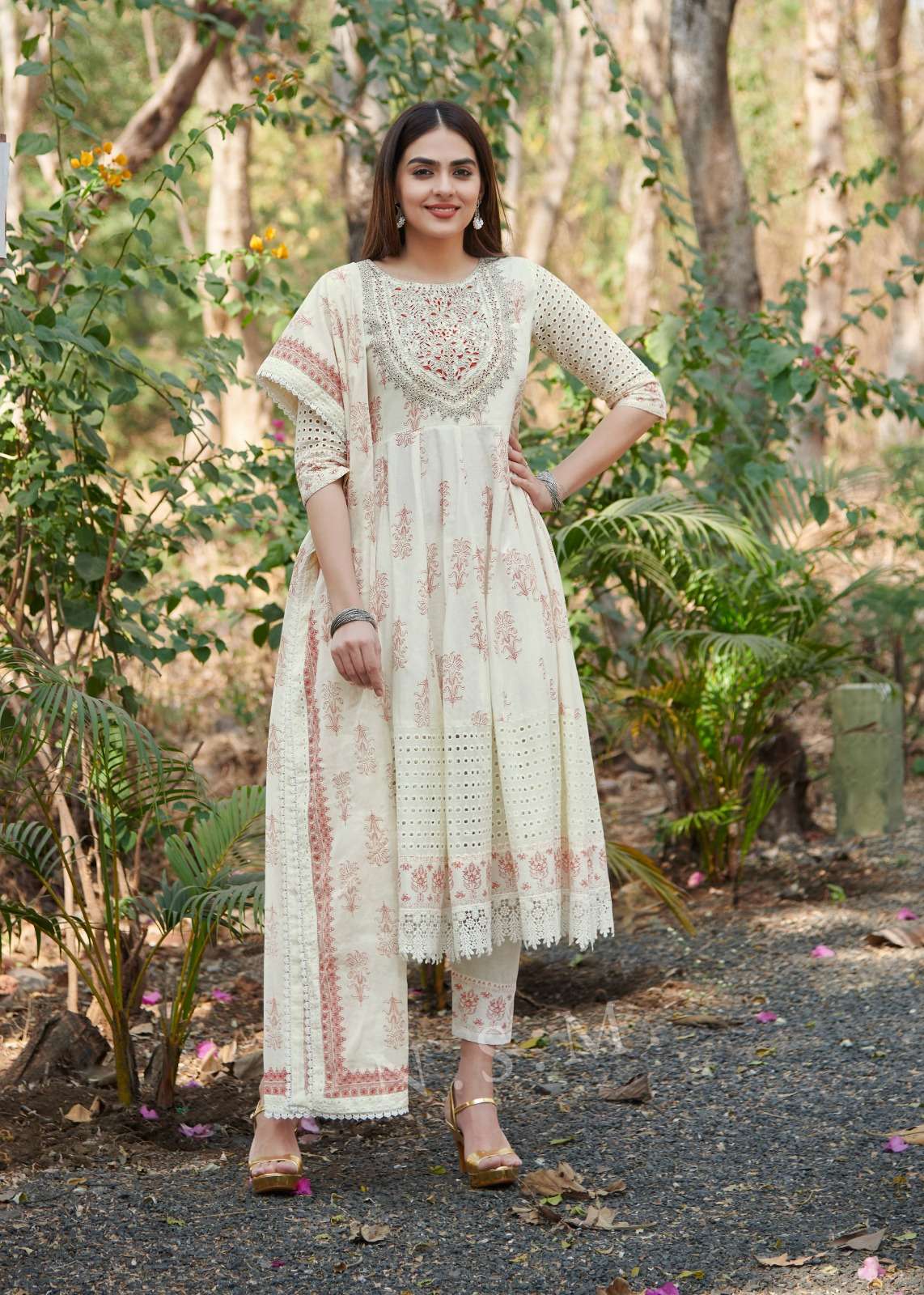 Dear Sir / Madam FABRIC DETAILS:- HEAVY SHIFFLI STICH SUIT TOP- HEAVY EMBROIDERY NACK WORK WITH PURE COTTON PRINT ANARKALI STYLE WITH SHIFFLI PANEL WORK BOTTOM- PURE COTTON INNER- PURE COTTON DUPATTA- PURE COTTONGE WITH PRINT PAYAL WORK
