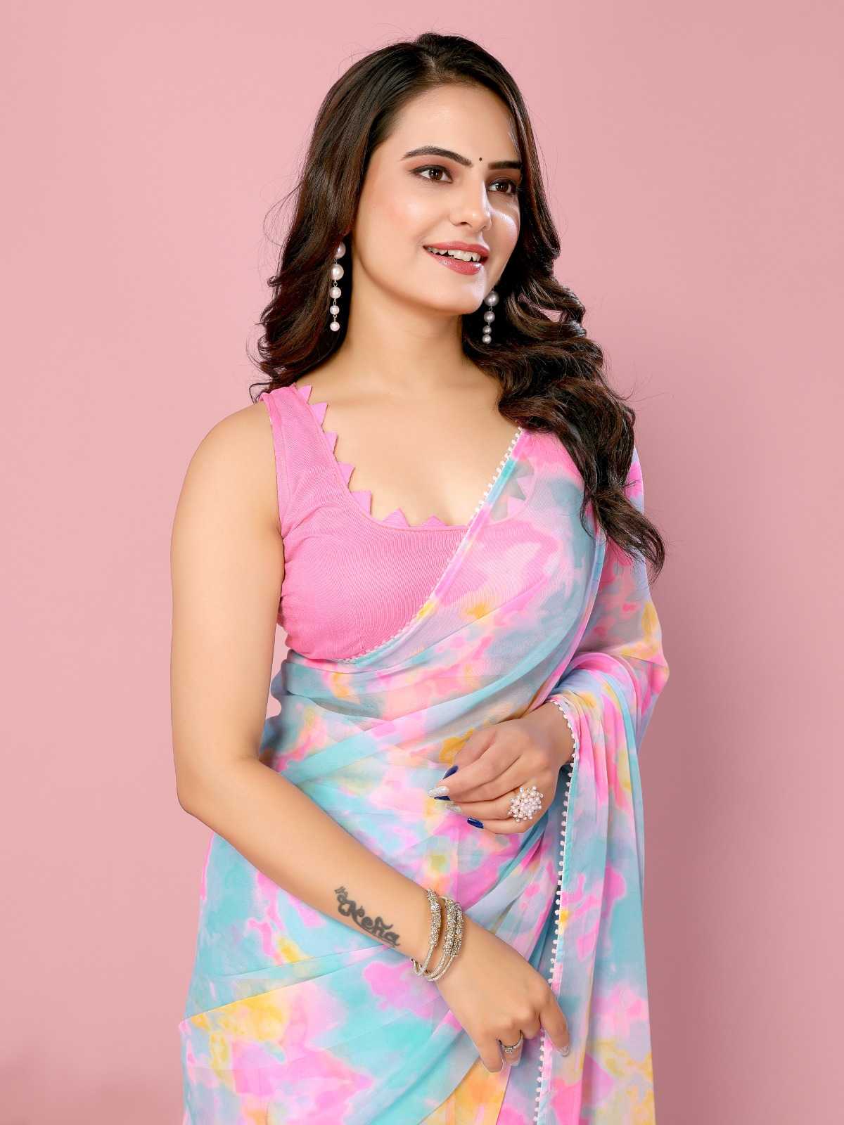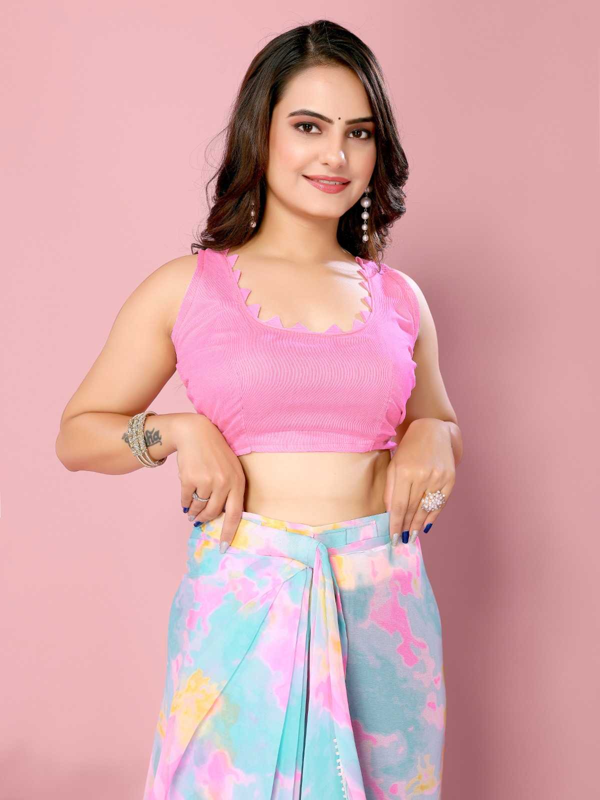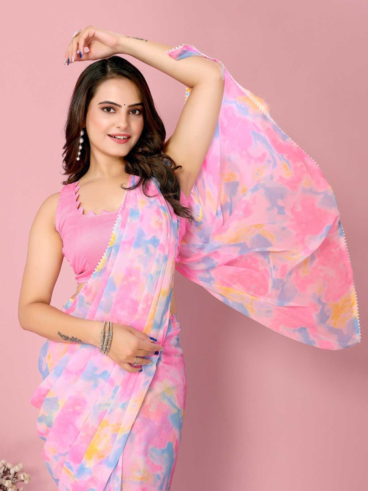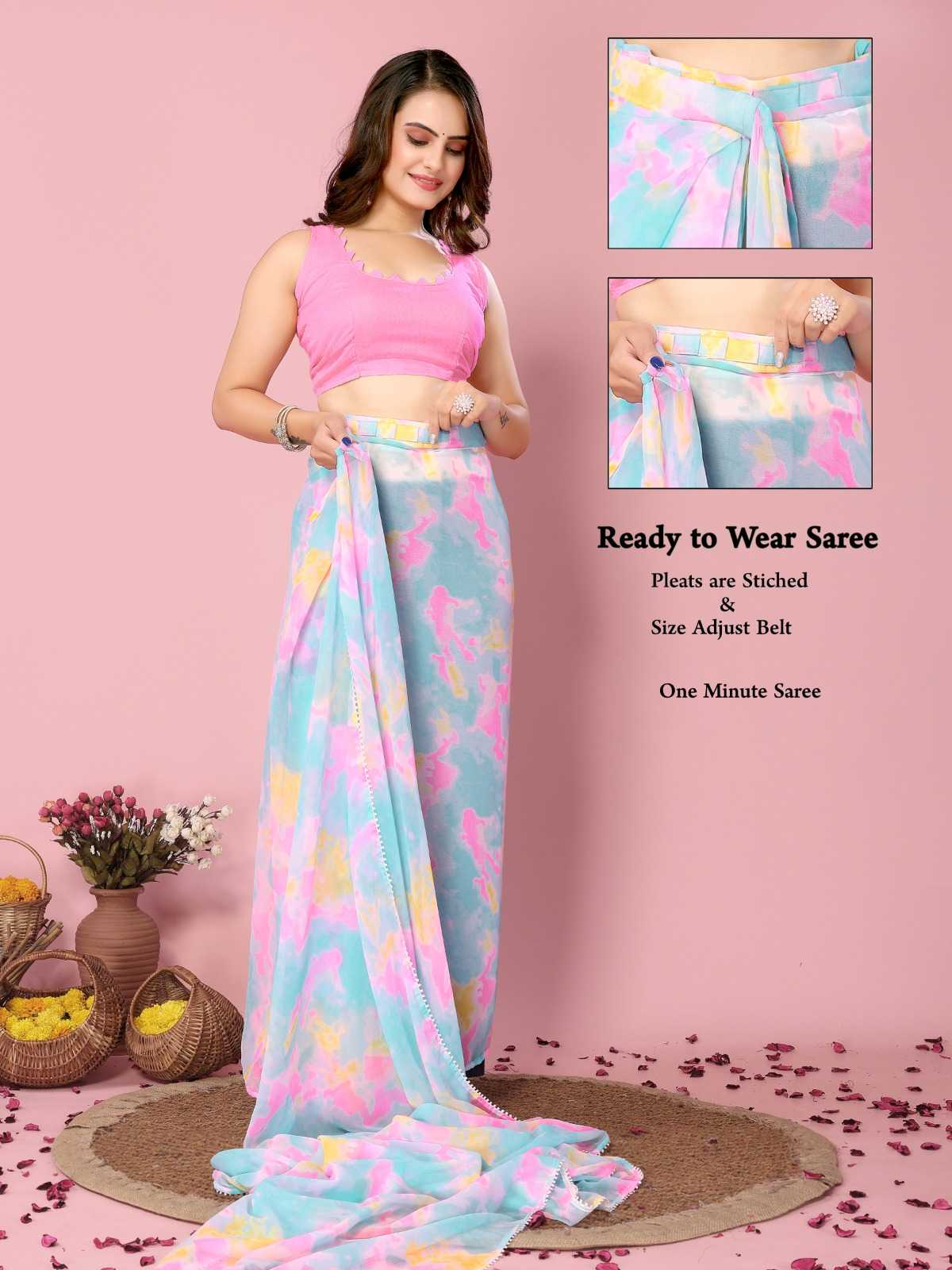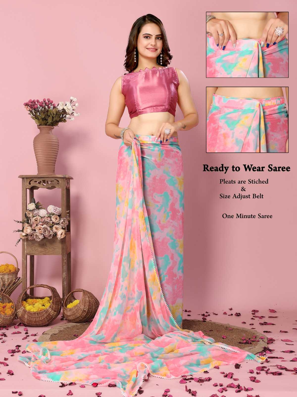 pr rakul vol 2 exclusive design fancy georgette pleats are stitch size adjust belt one minute saree