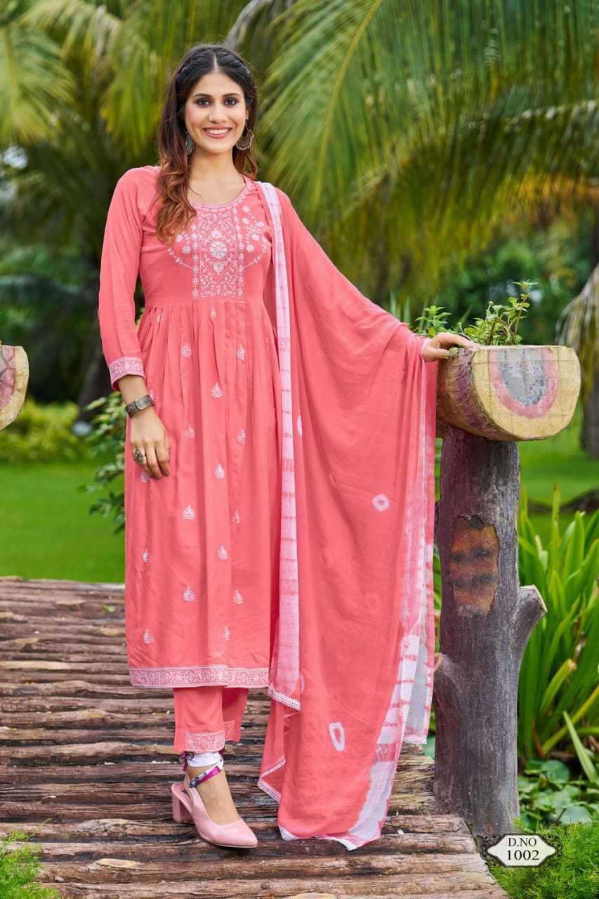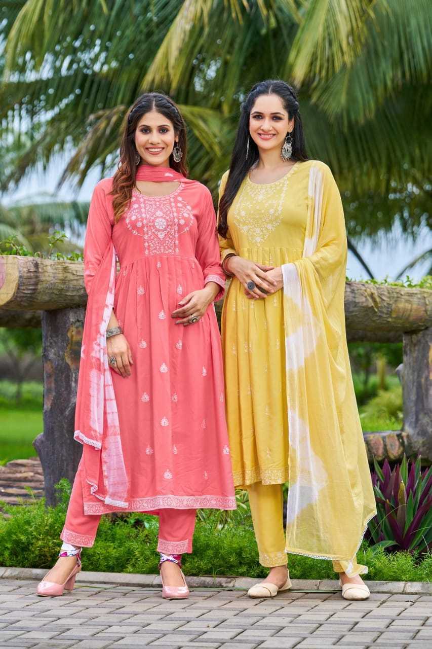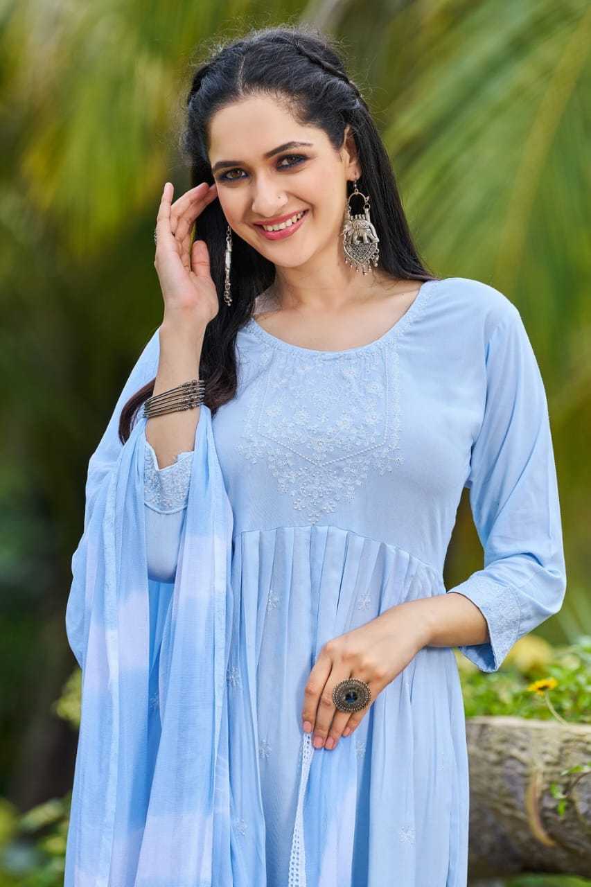 We are introducing OUR new catalog 📕Catalogue:- Rangoon 👗CLOTH:- RAYON 14KG DUPATTA-: Naznin Siburi with Two Side lace Concept-: 3 PCS ✅Pattern-: Nayra Cut with White Embroidery Size:- M L XL XXL 3XL AVAILABLE Rate 660 5 DESIGNS CATALOGUE 🚛 : Dispatch :- Ready Always with you...👍 |