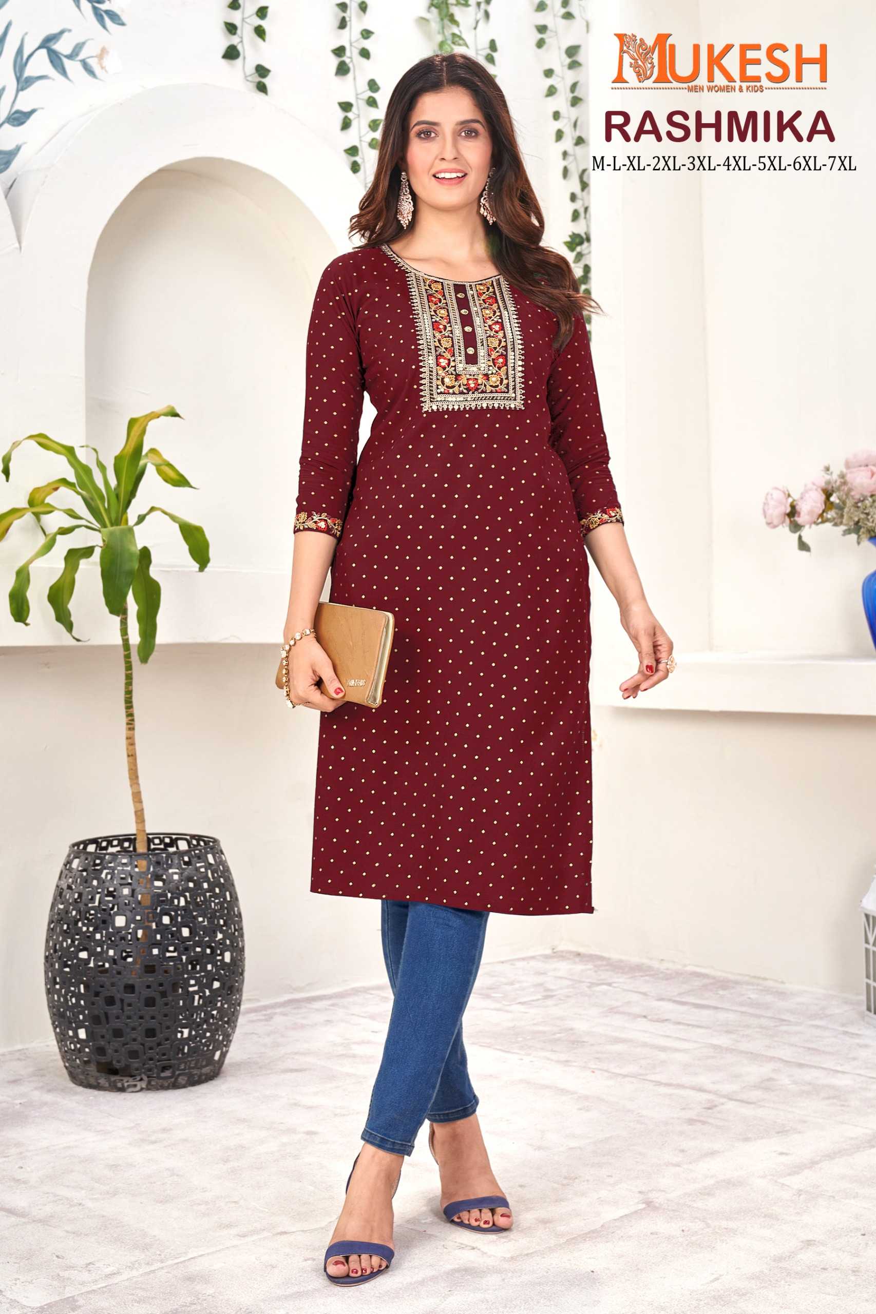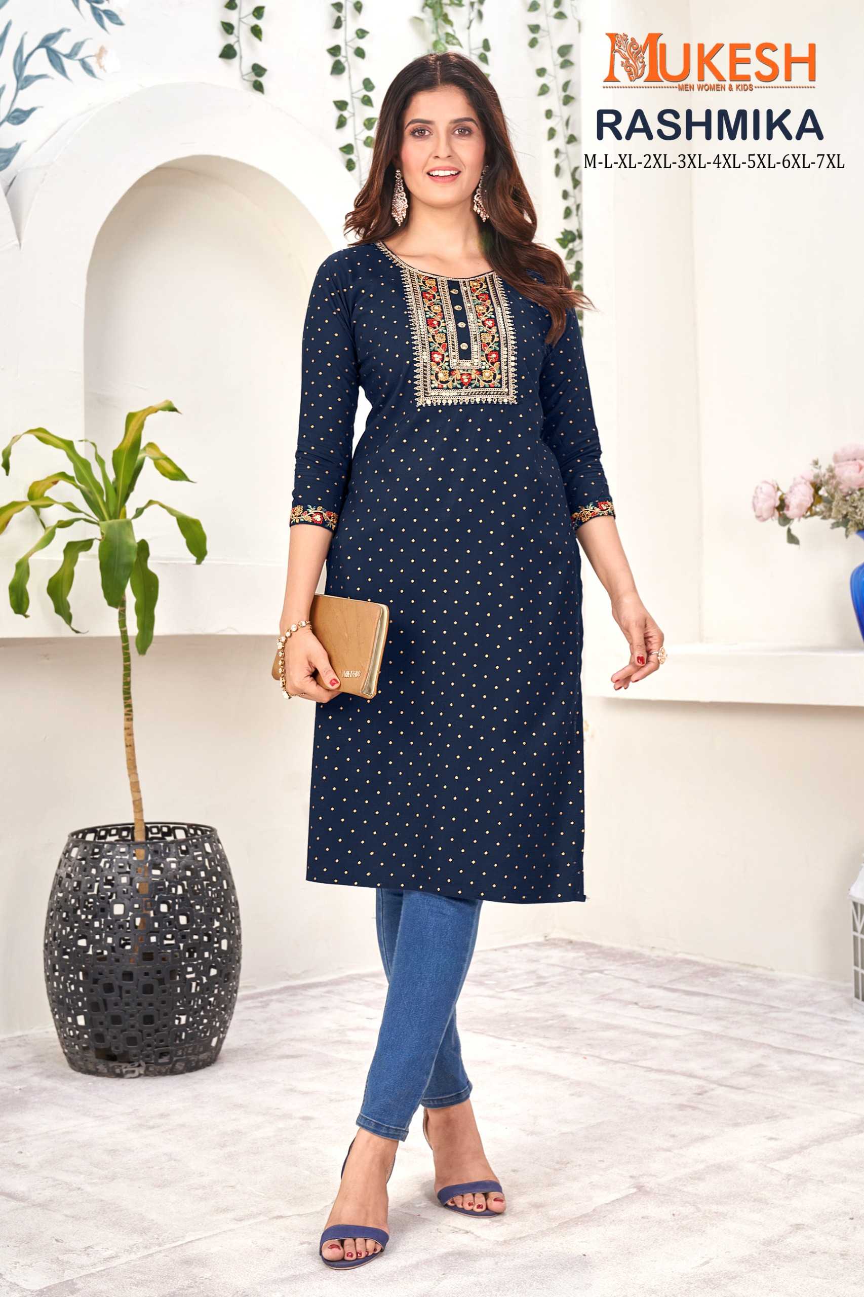 pr rashmika readymade daily wear embroidery with sequence big size long kurti