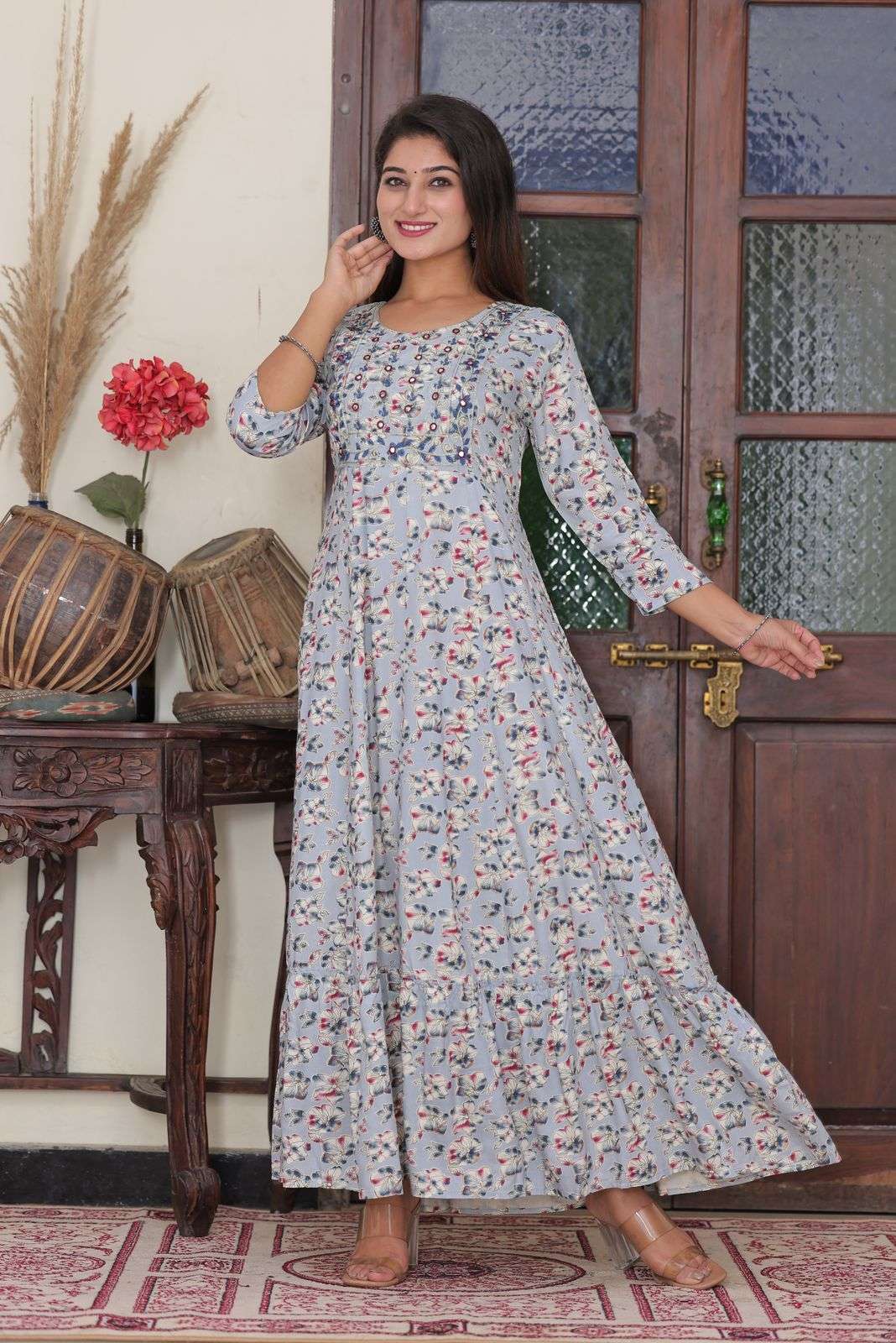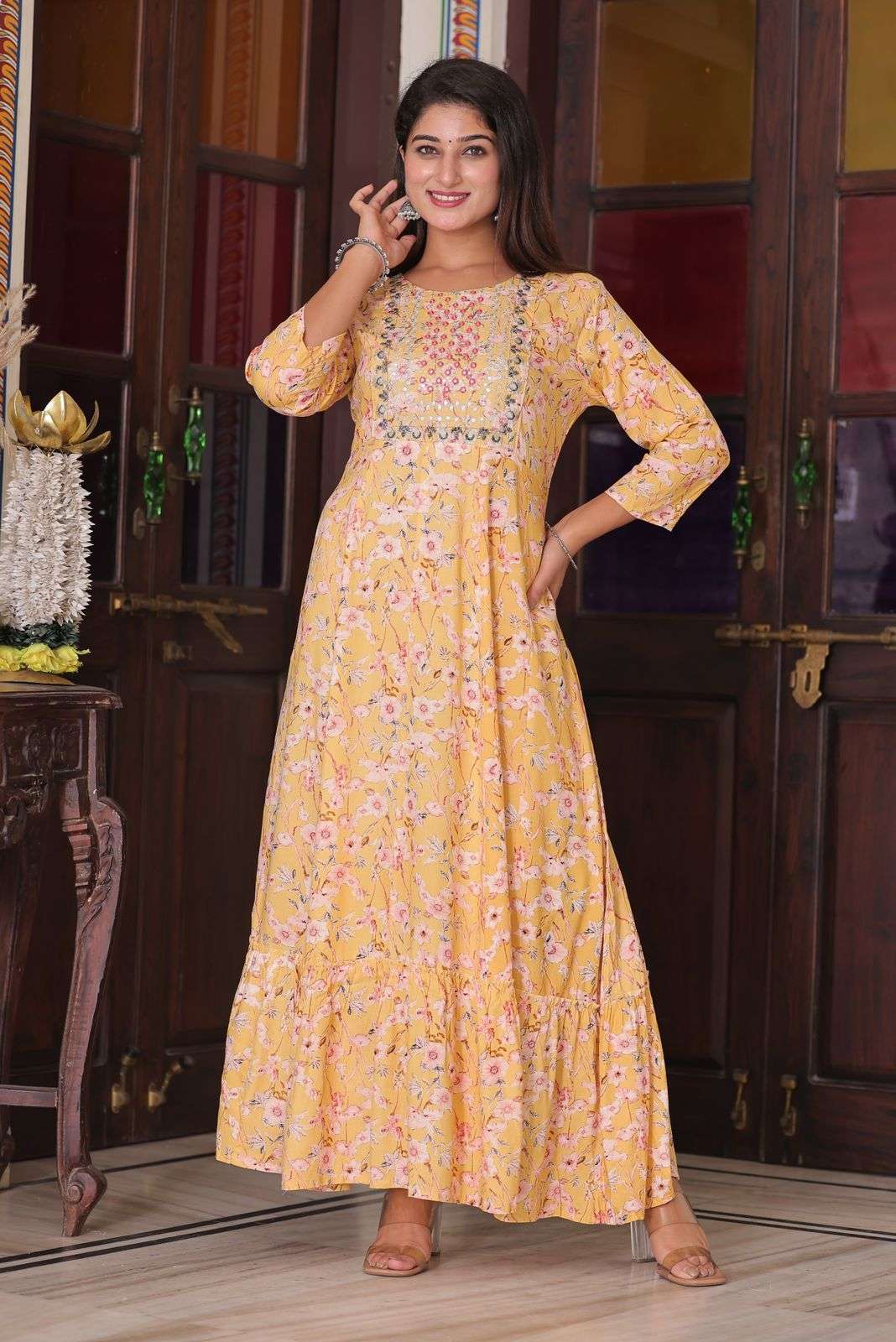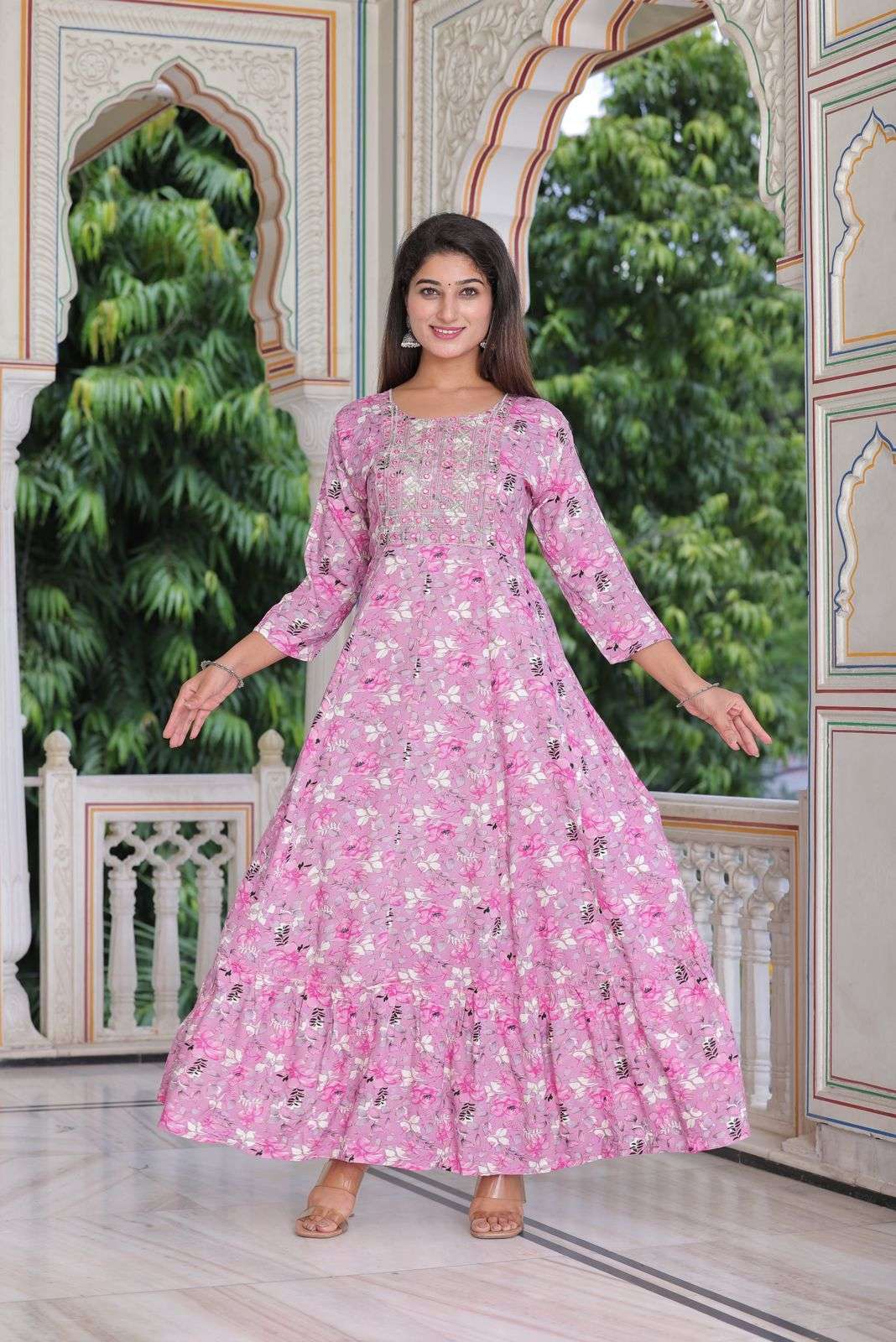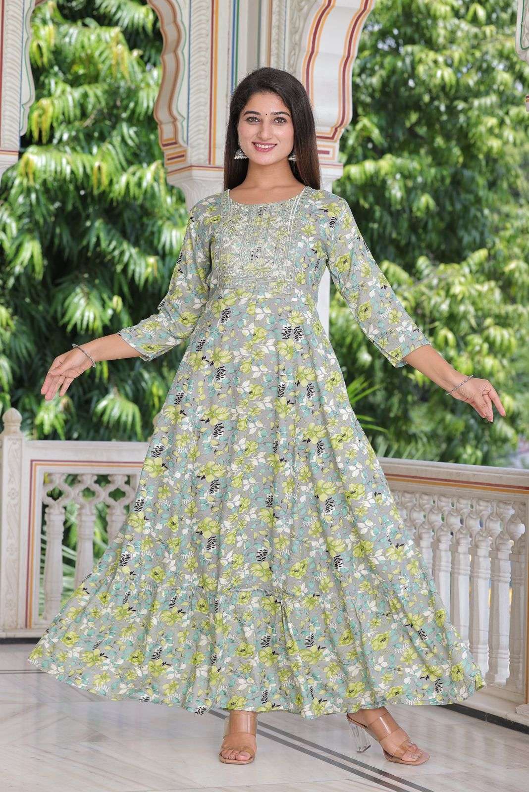 BOOK CATALOGUE PR RAYON LONG GOWN ON KRISHNA CREATION. CALL ON +91-8866778727.