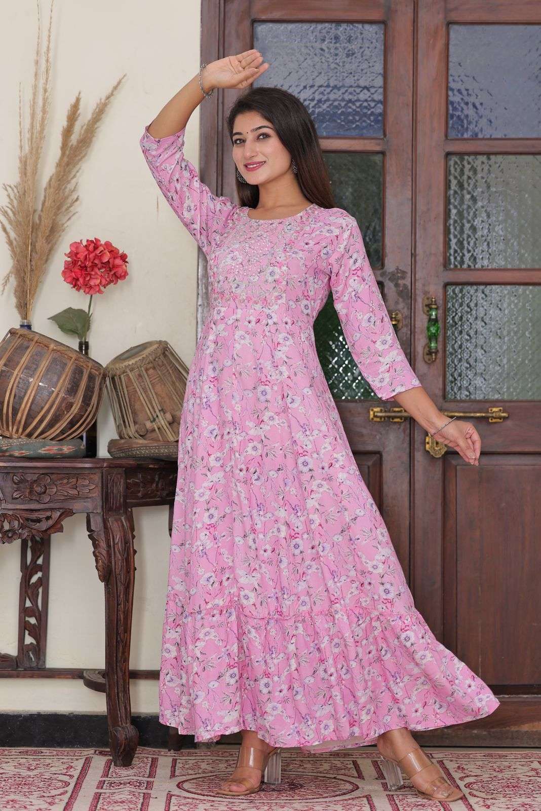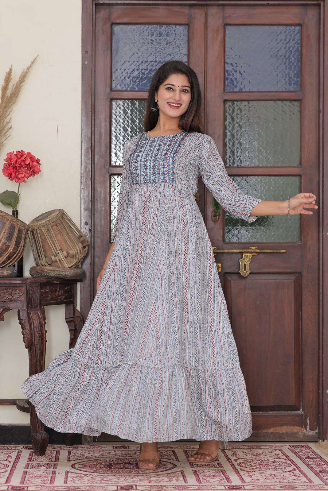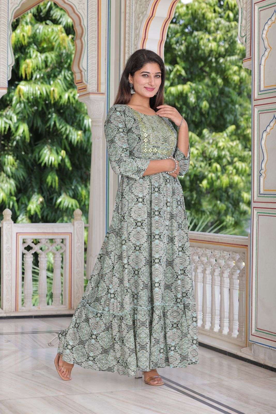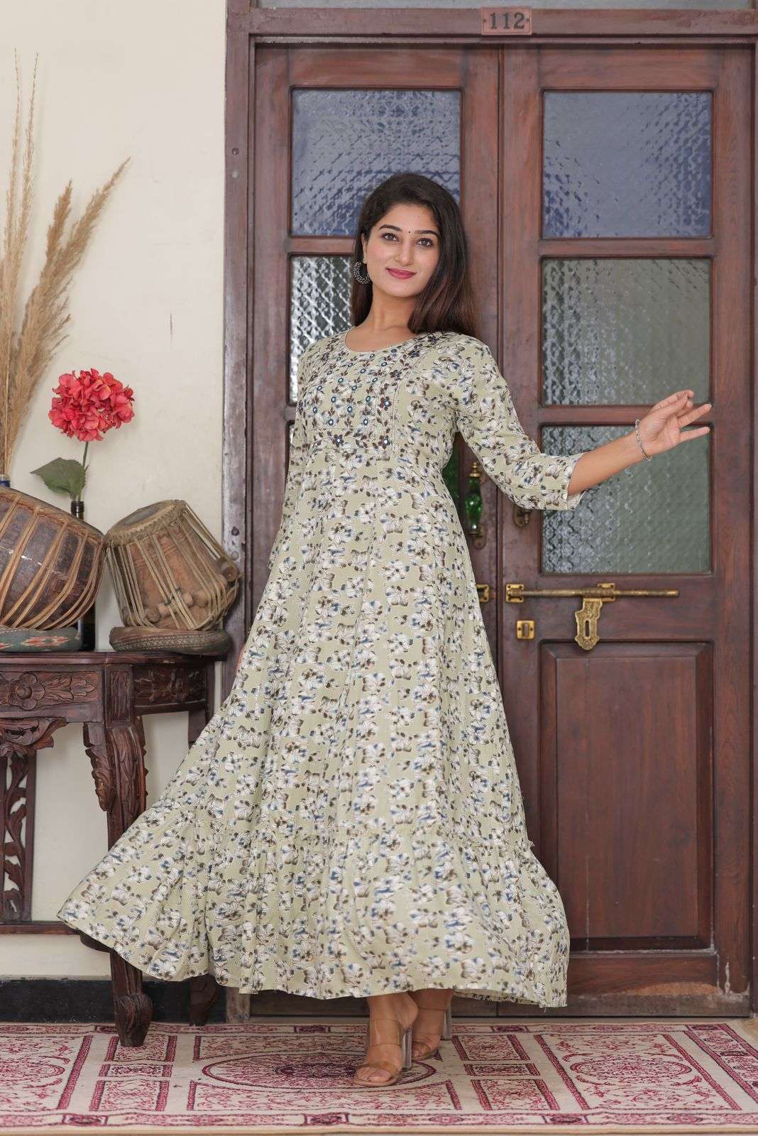BOOK CATALOGUE PR RAYON LONG GOWN ON KRISHNA CREATION. CALL ON +91-8866778727.