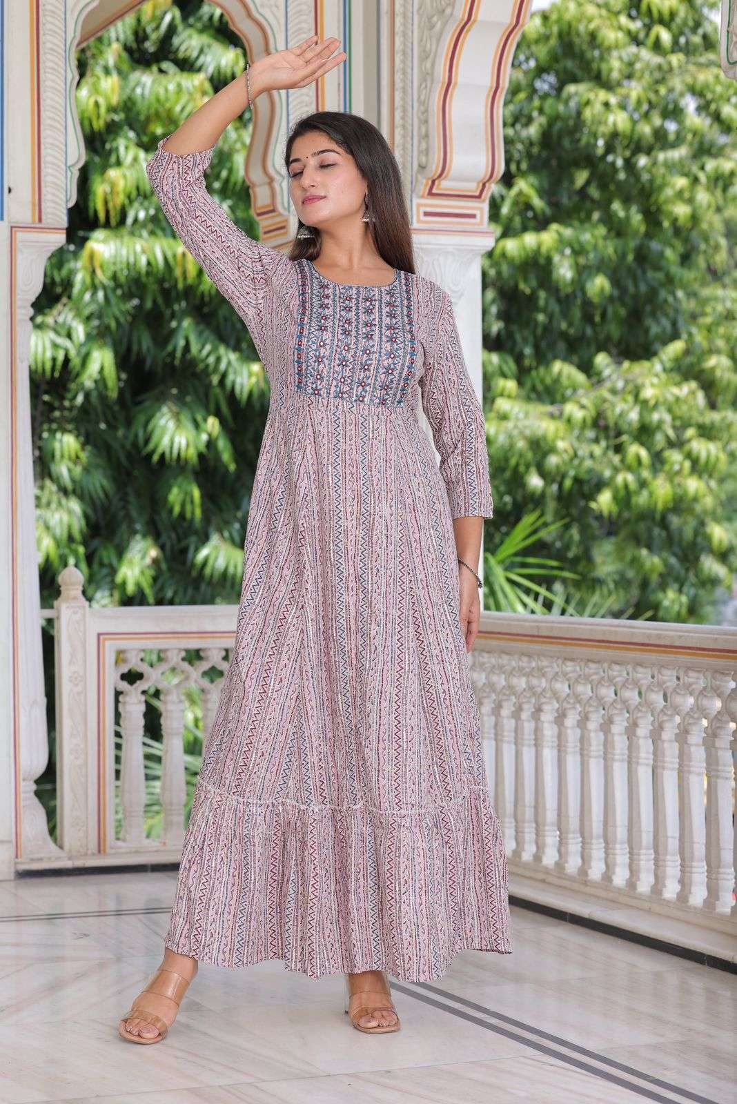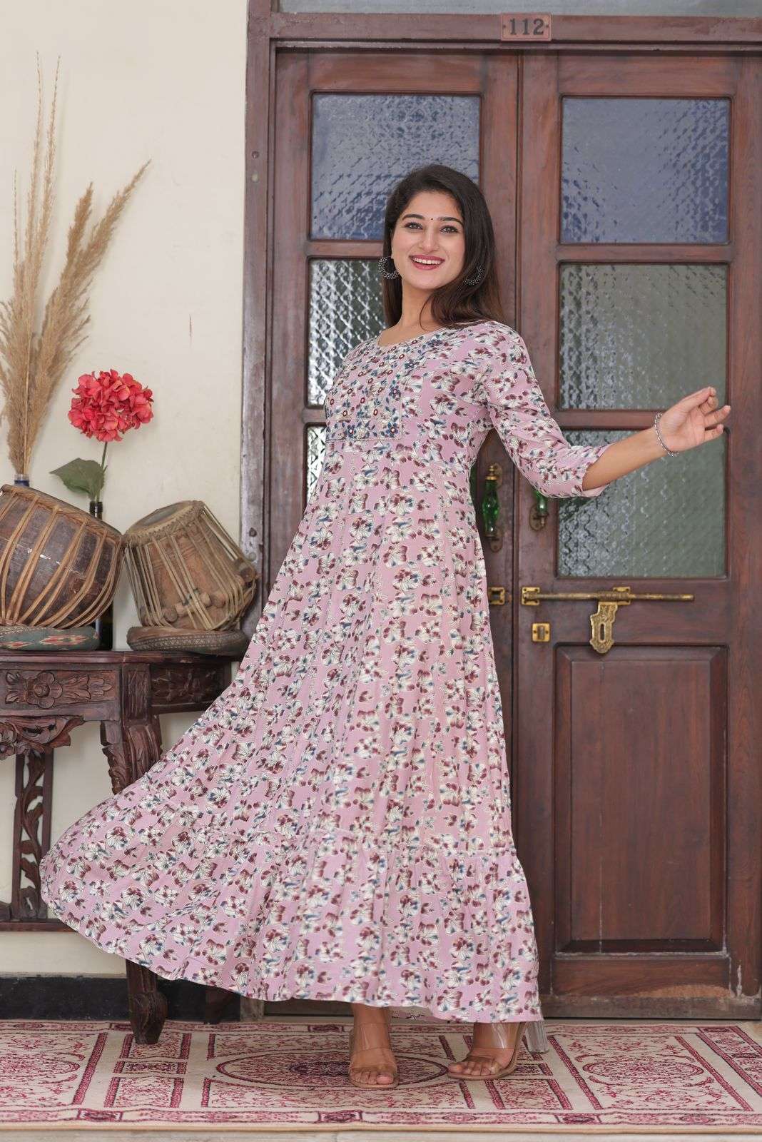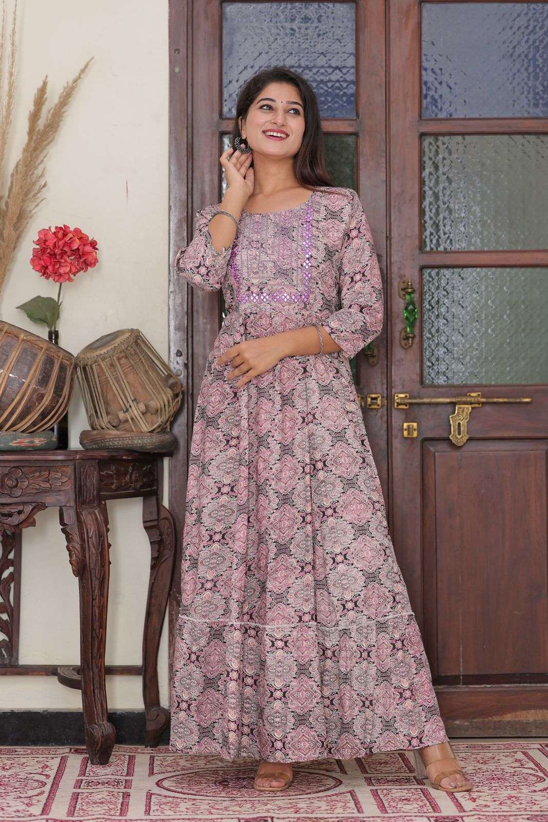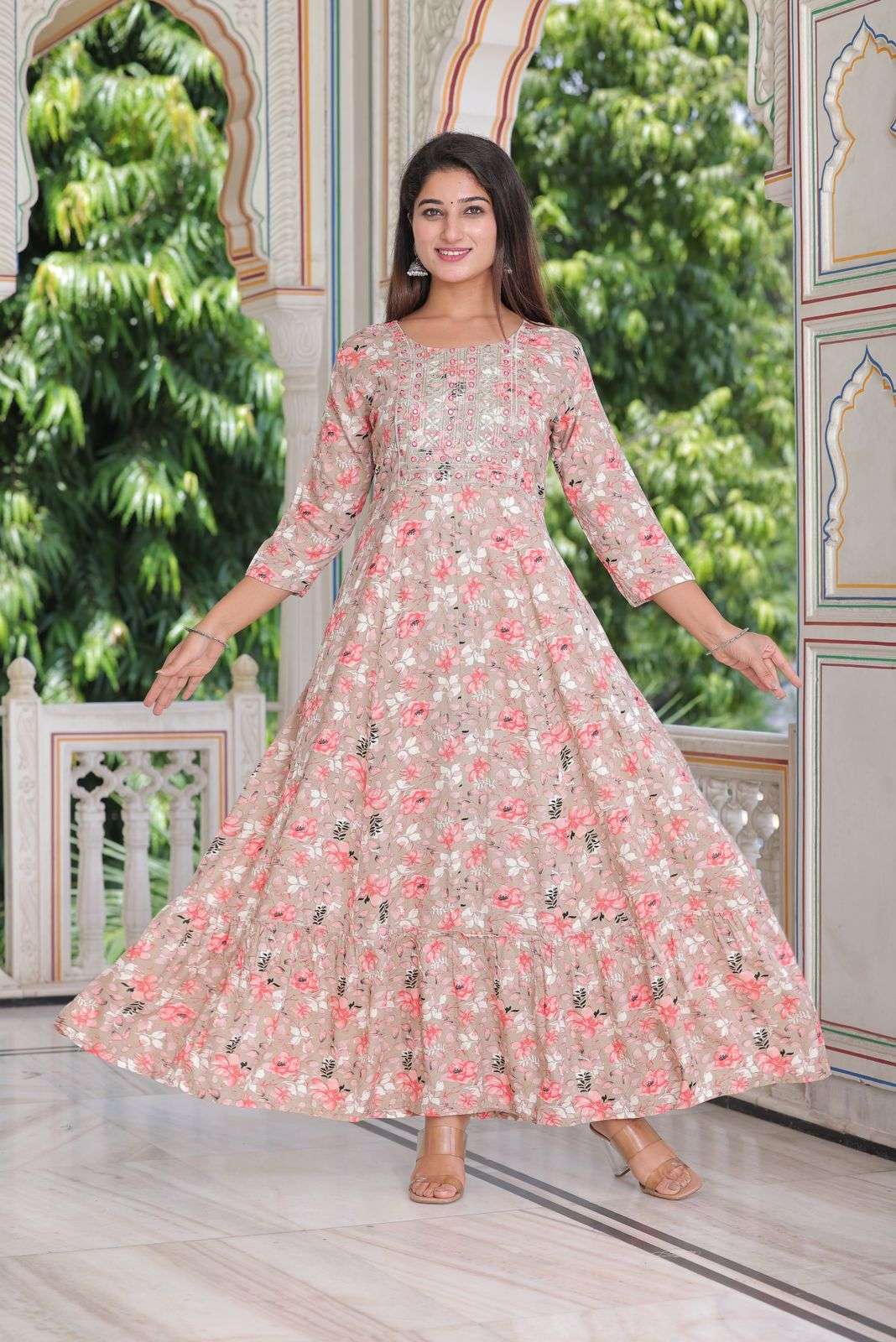 BOOK CATALOGUE PR RAYON LONG GOWN ON KRISHNA CREATION. CALL ON +91-8866778727.