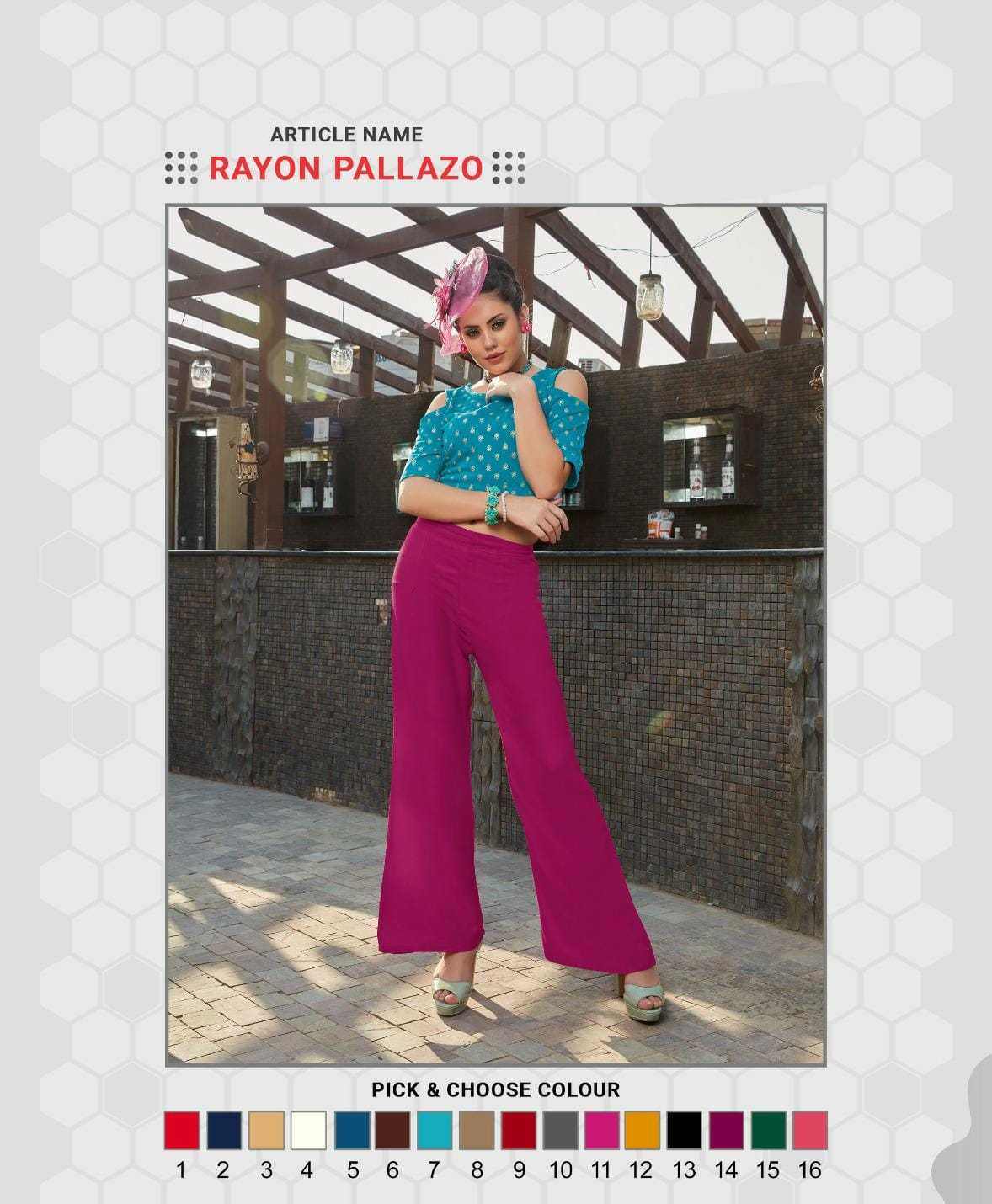 BOOK CATALOGUE RAYON PALAZZO ON KRISHNA CREATION. CALL ON +91-8866778727.