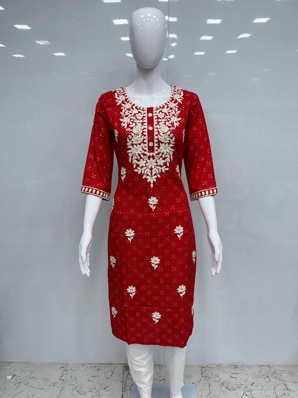 BOOK CATALOGUE RAYON PRINT CHIKANKARI COMBO ON KRISHNA CREATION. CALL ON +91-8866778727.