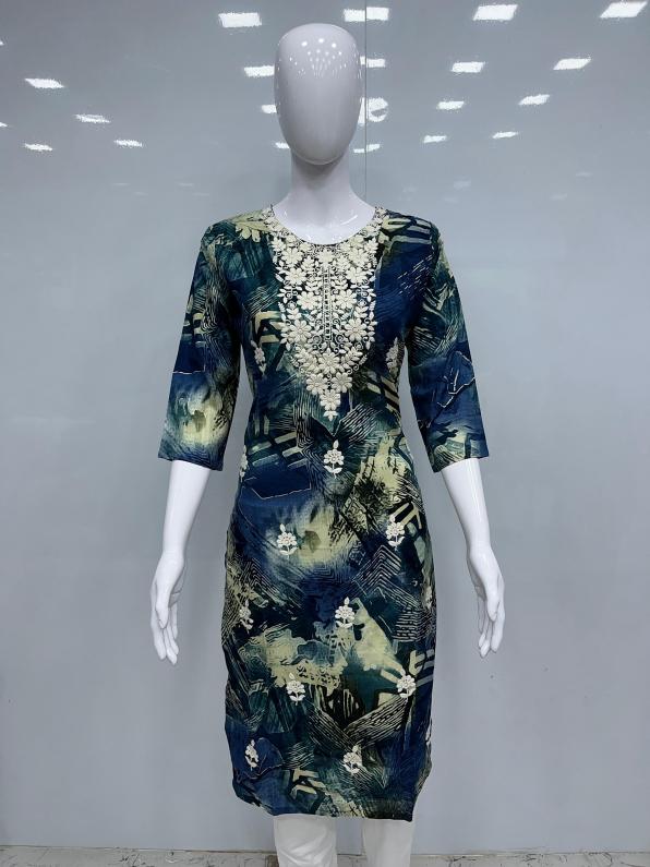 pr rayon print chikankari readymade colour addition combo set kurtis