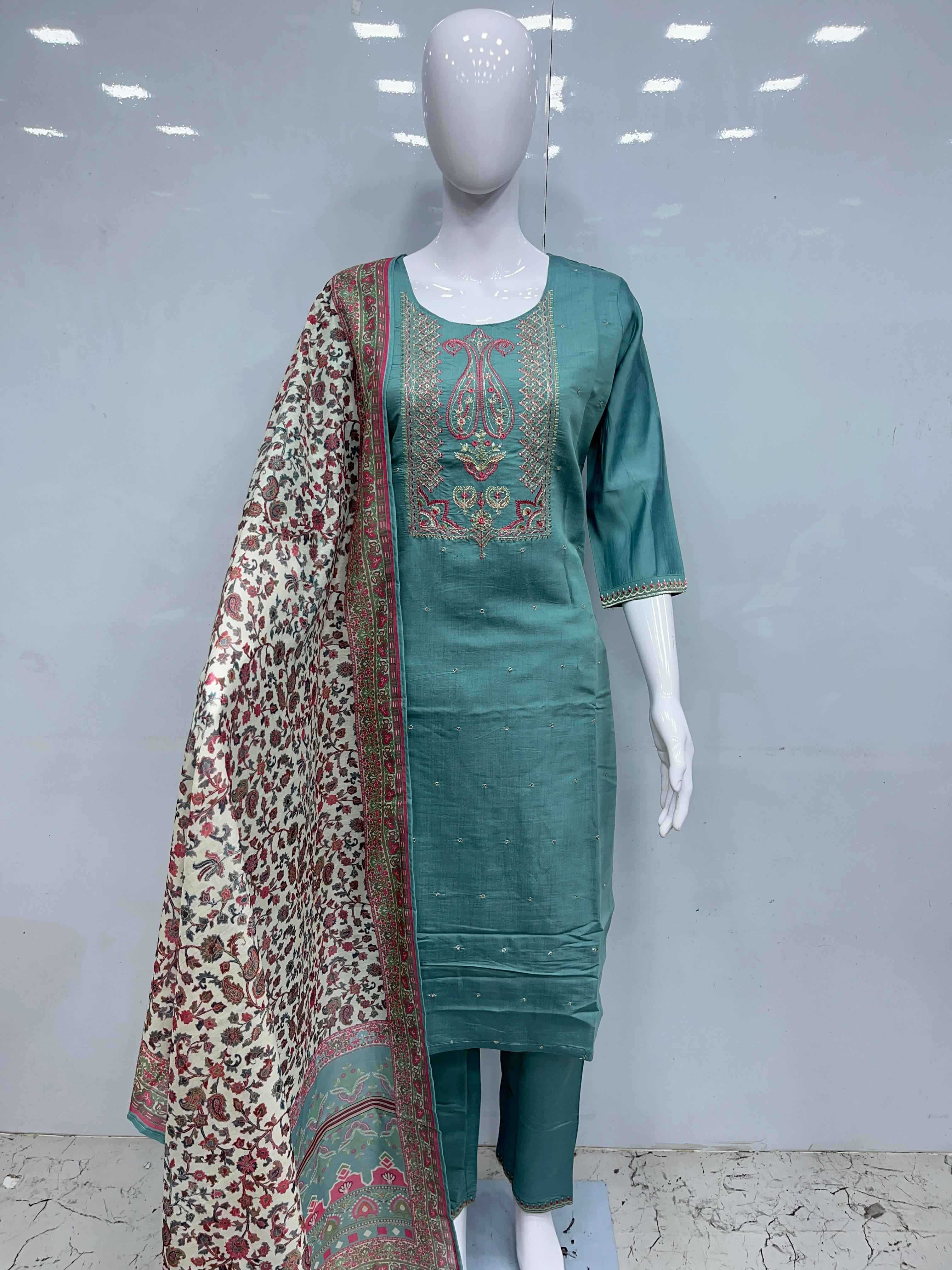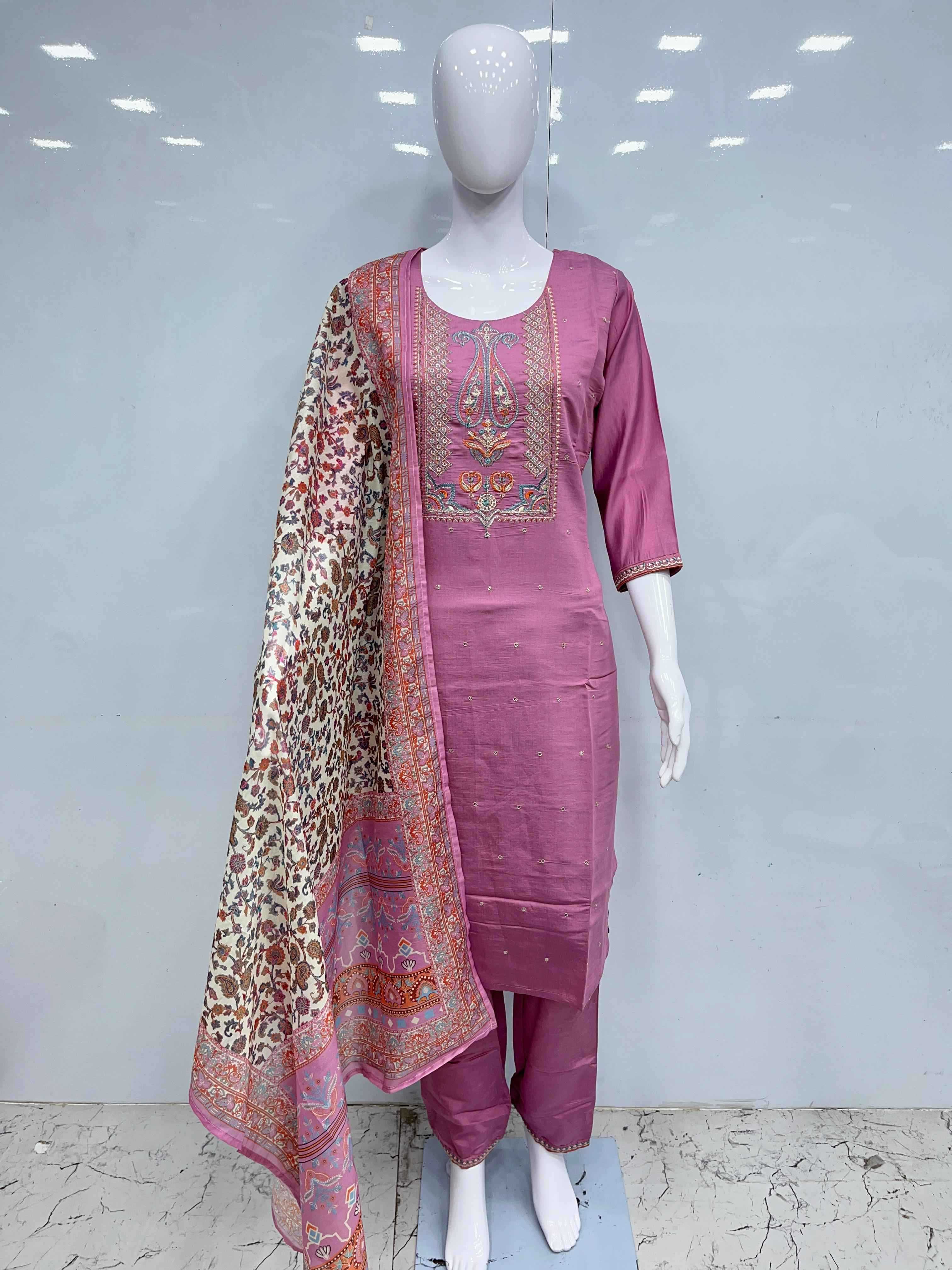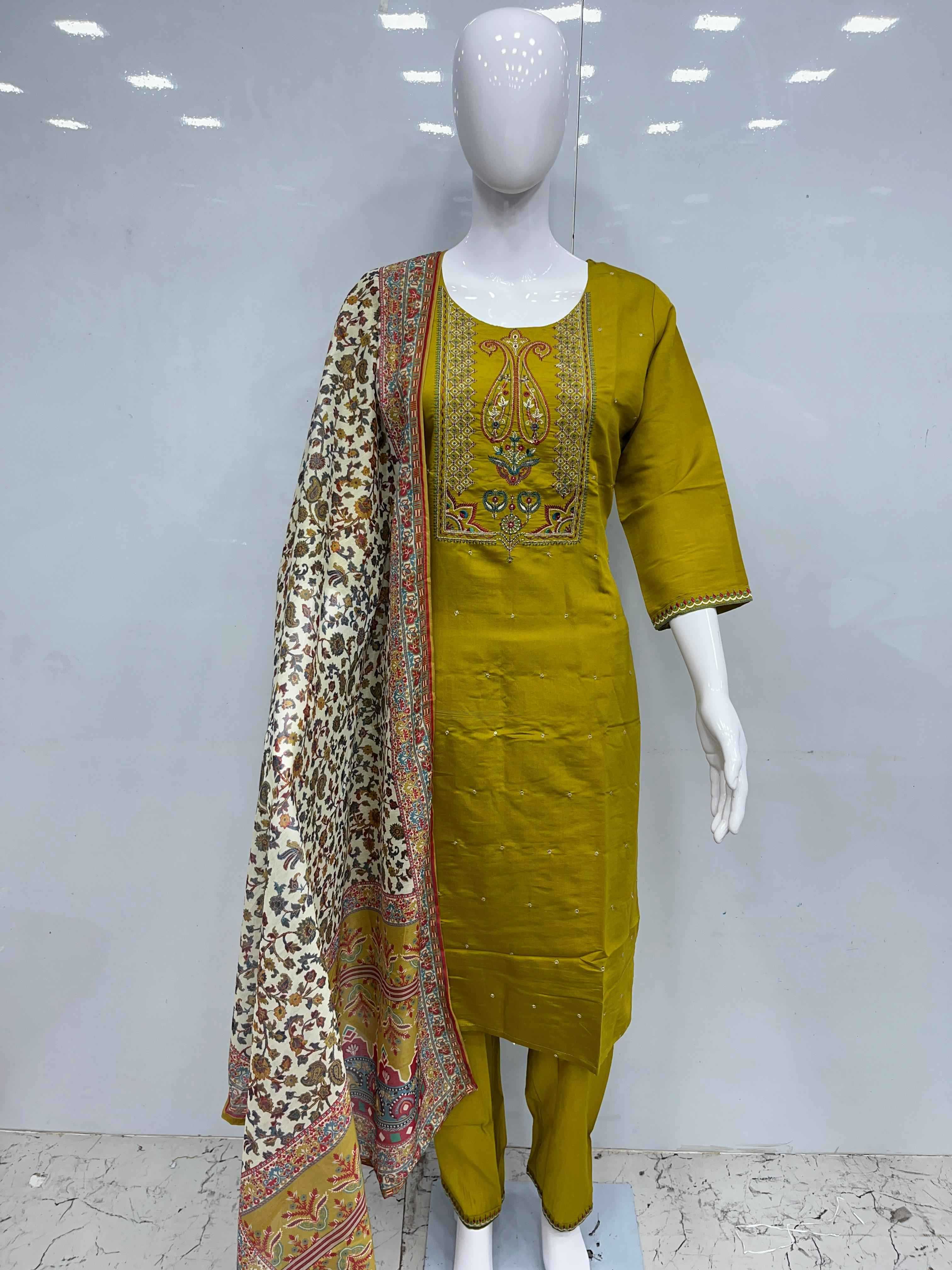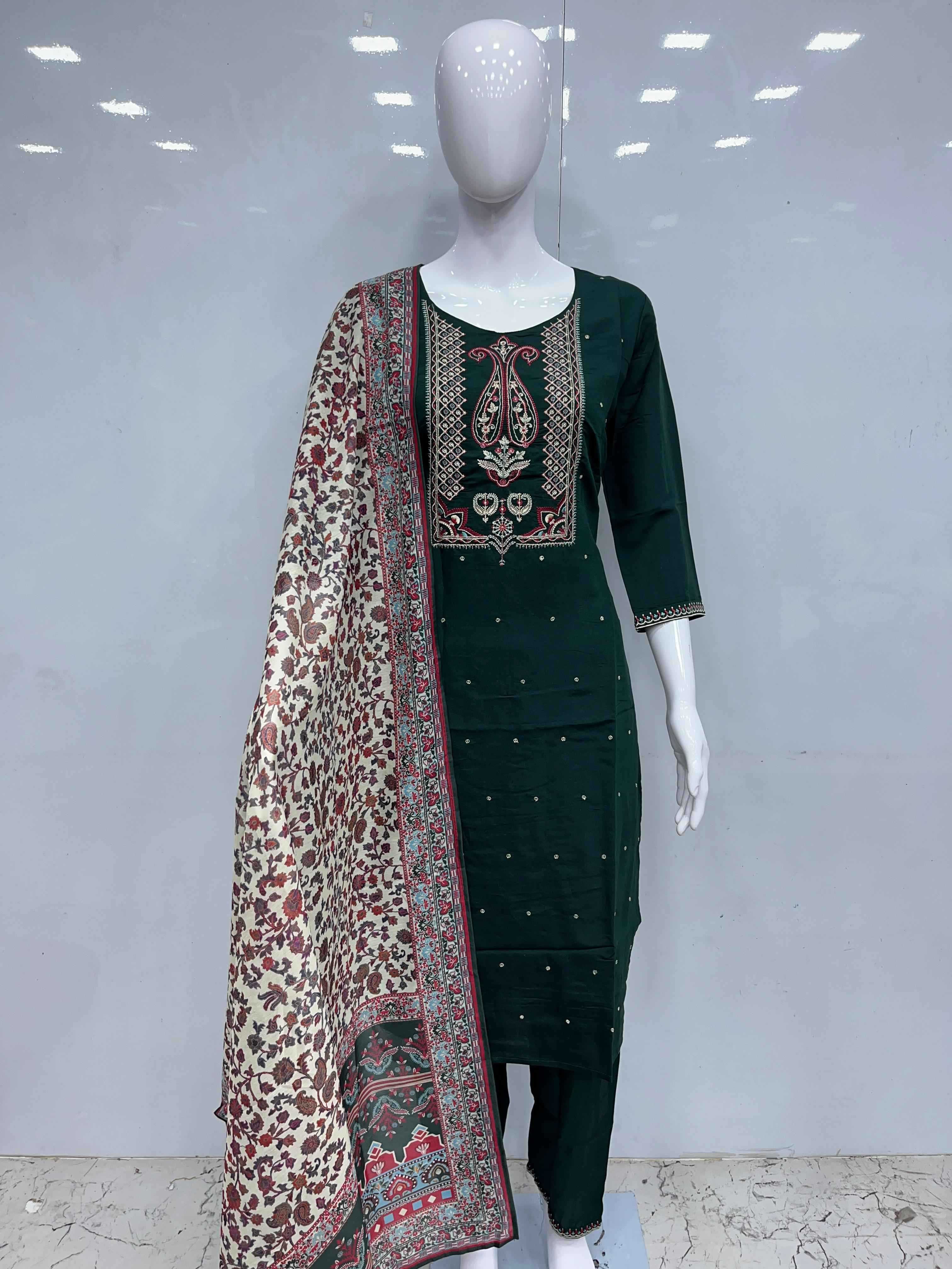 pr roman kashmiri embroidery roman silk readymade combo set suits