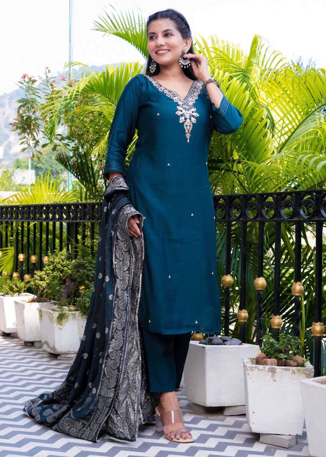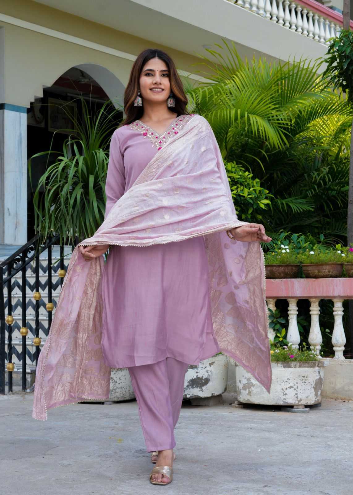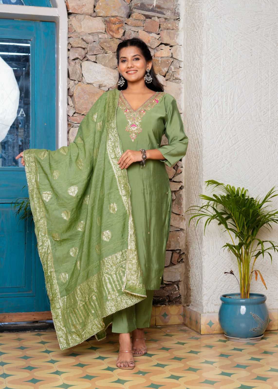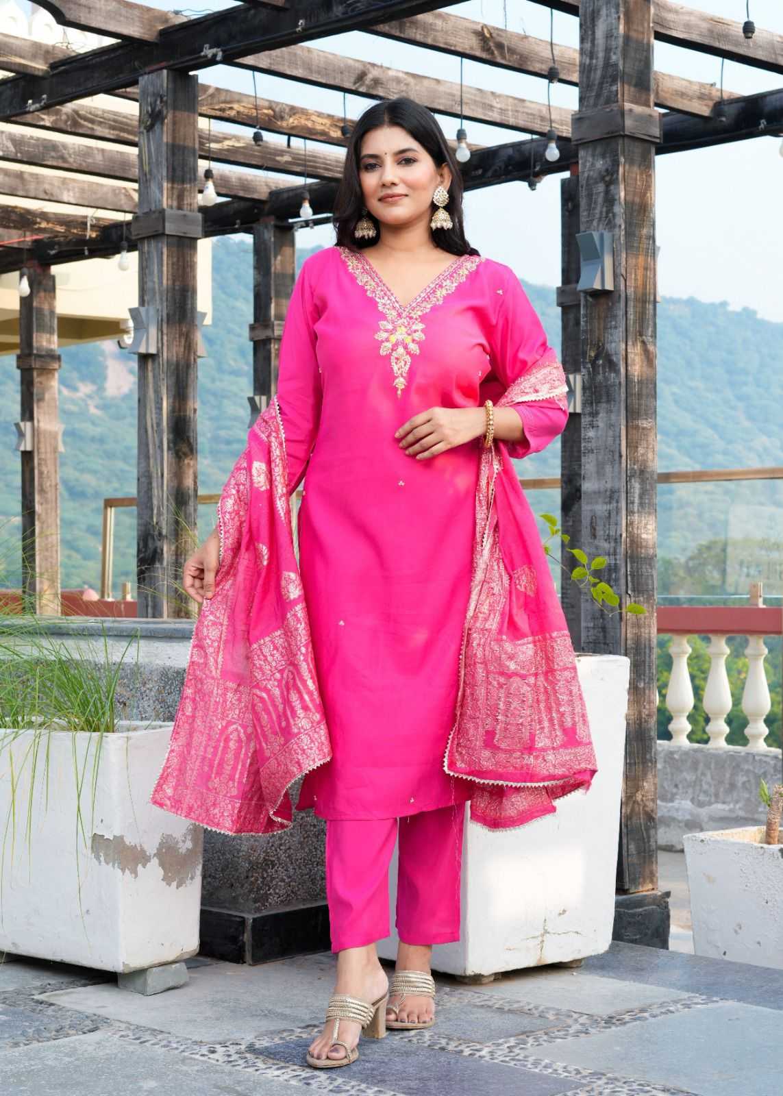 pr roman silk readymade fashionable handwork combo set 3pcs dress
