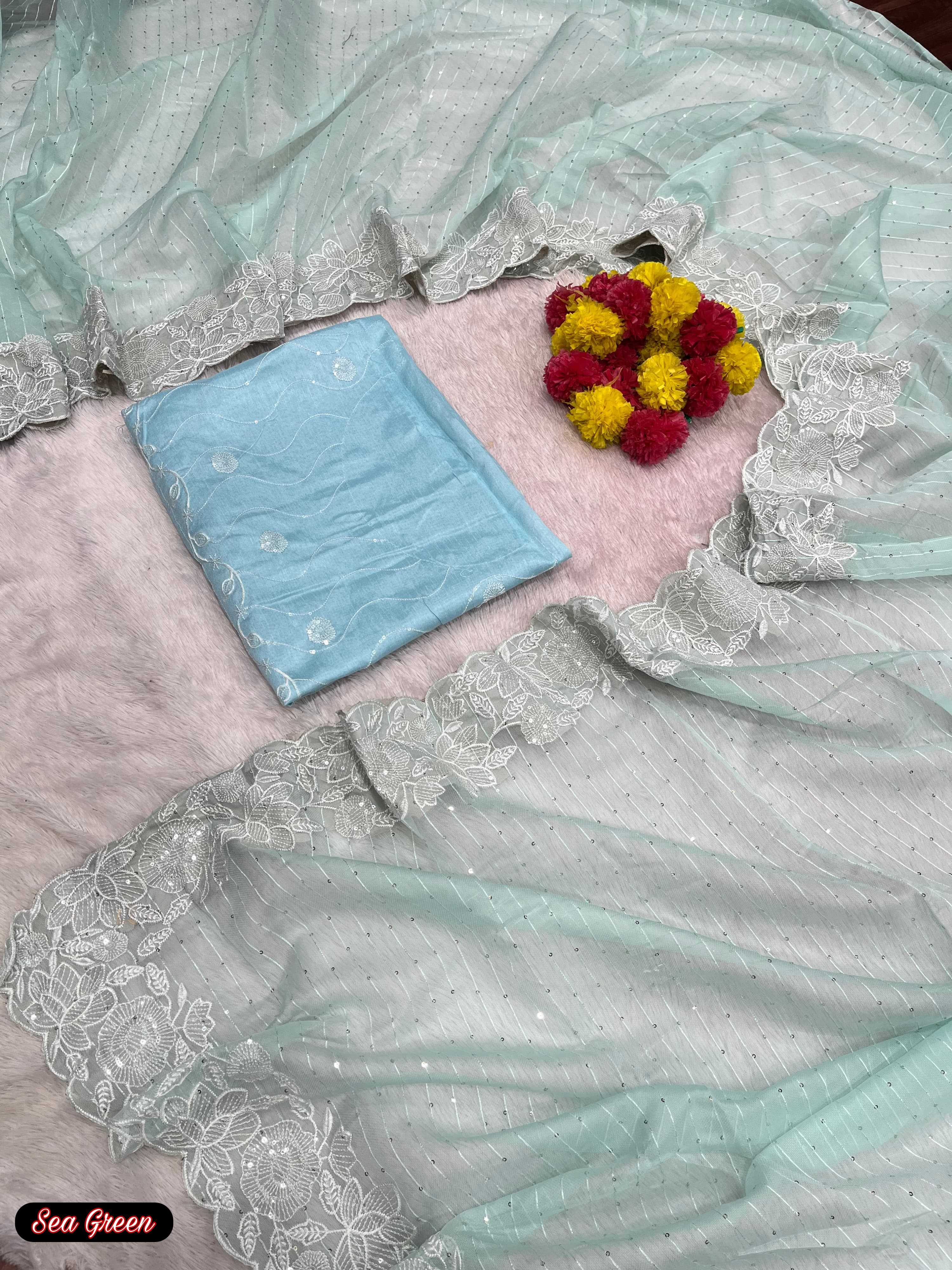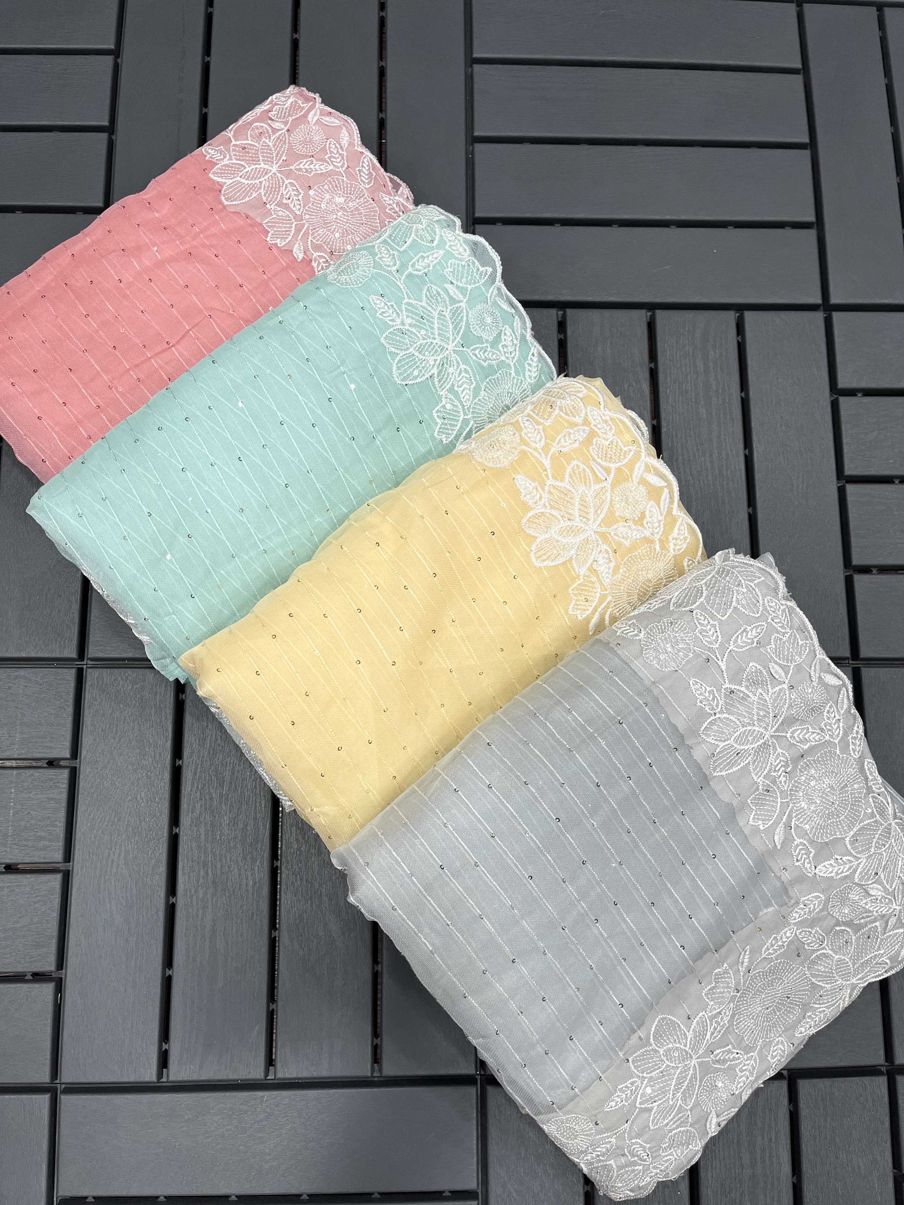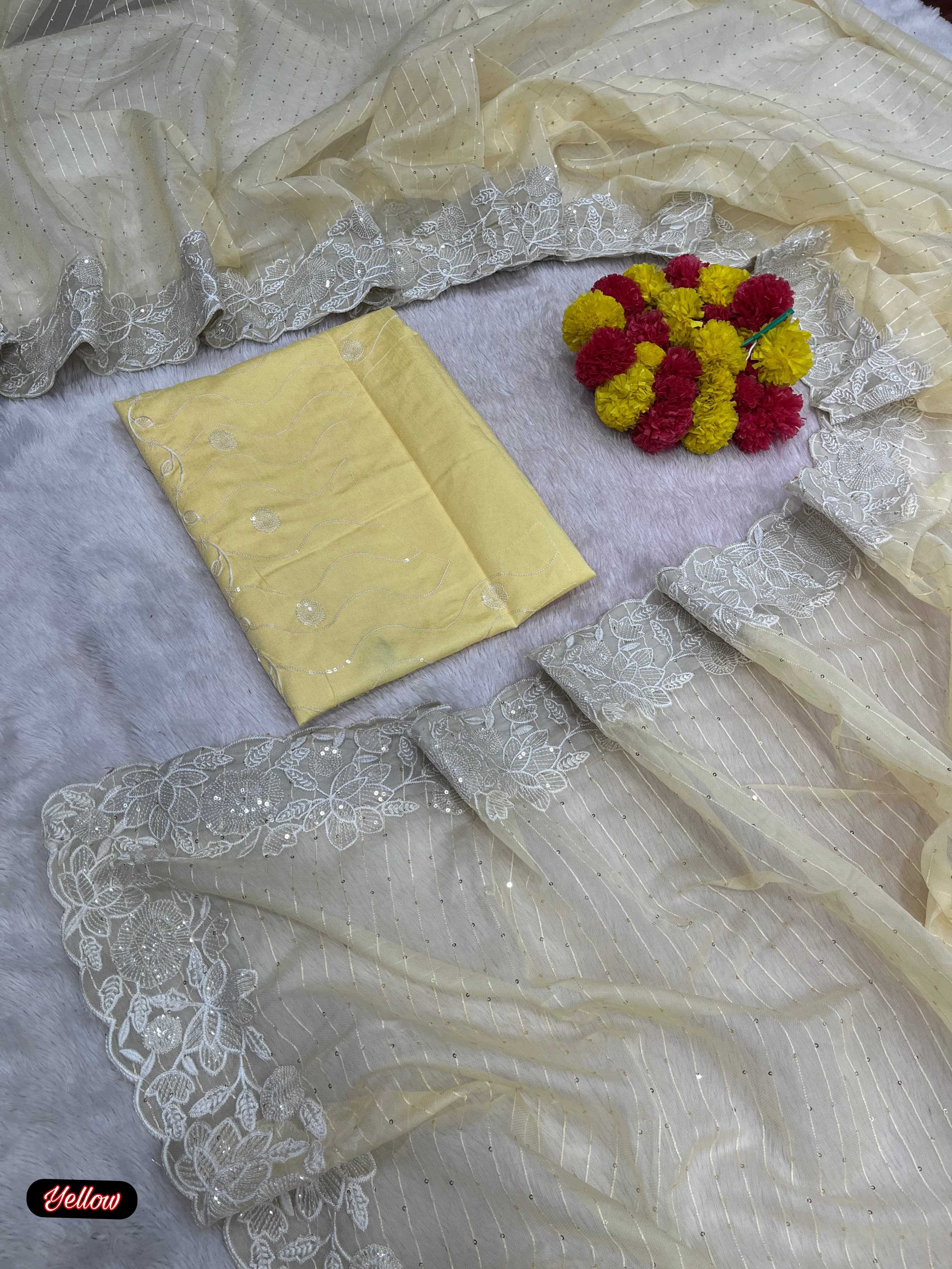 ⭐ NEW LAUNCHING BOLLYWOOD COLLECTION SAREE ⭐ *CODE- Rose White *❤ BEAUTIFUL 4 COLOURS FABRIC DETAILS ⭐ Embroidery details BLOUSE OF Mono Banglori Silk with embroidery Sequence work LOOK GLAMOUROUS, STAY BEAUTIFUL ⭐ |
