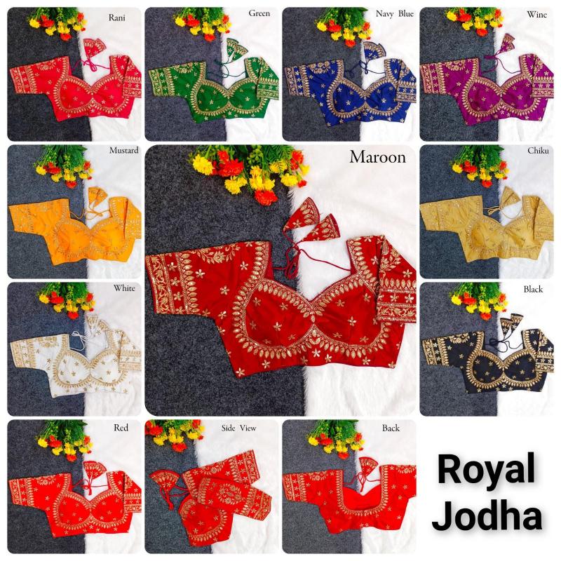 ➡️ EXCLUSIVE PARTYWEAR JARI WITH SEQUENCE EMBROIDERED FANCY FARMA BLOUSE ➡️Design- ROYAL JODHA ➡️Fabric- VICHITRA SILK ➡️Inner- Cotton (Double Lining) ➡️Work- Exclusive Jari With Sequence Embroidery Work ➡️Pattern- PAN NEACK ➡️Quality- A1 ➡️Padded- Yes ➡️Size- Free Size 38 Ready ➡️Length- 14-15 Inch ➡️Open Type- Back Hook ➡️Sleev- Elbow Sleeves Atteched ➡️Colour:- (10 Colours Available) 🖤💛🧡❤️🩷️💙💜🤍🤎 ➡️Price- 340/- ➡️SHIPPING EXTRA ➡️ BOOK FAST READY STOCK |