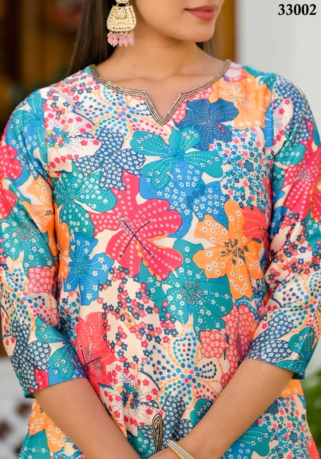Tradition never goes out of style Fabric Details:- Work: Digital floral Print with Heavy Handwork in Top. Top Length: up to 29 Inch. Weight: - 800 Gram. Size (Full stitched) :- L(40),XL(42),XXL(44). Total 2 Designs. Rate: 1399/- GST: 12% |