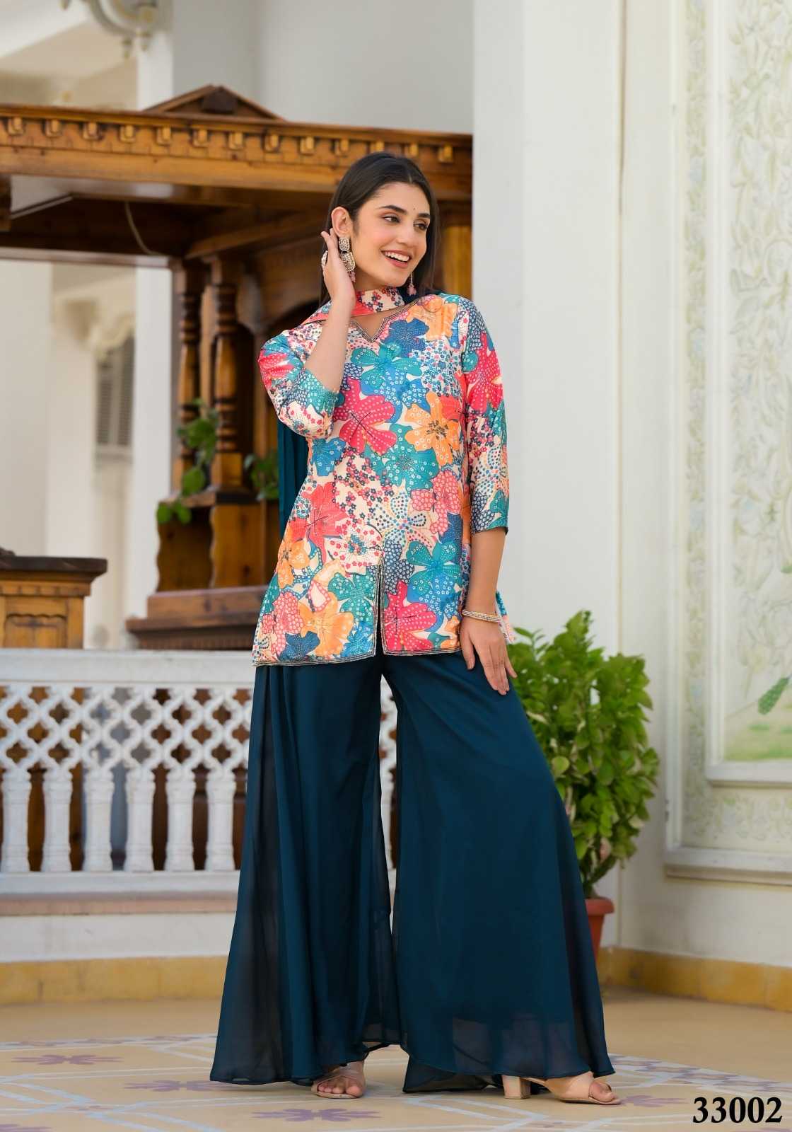 pr samya stylish dull satin fully stitch top plazzo dupatta