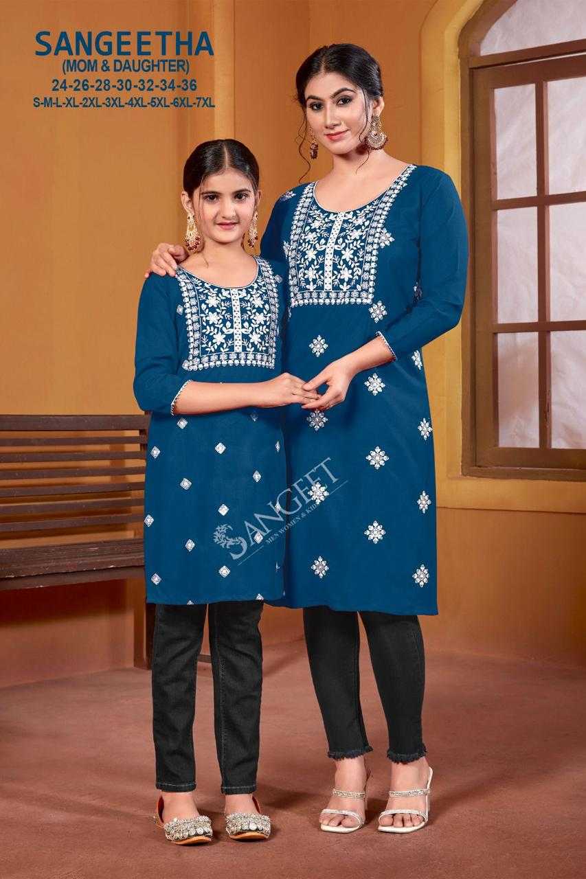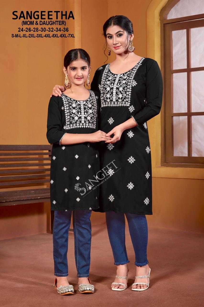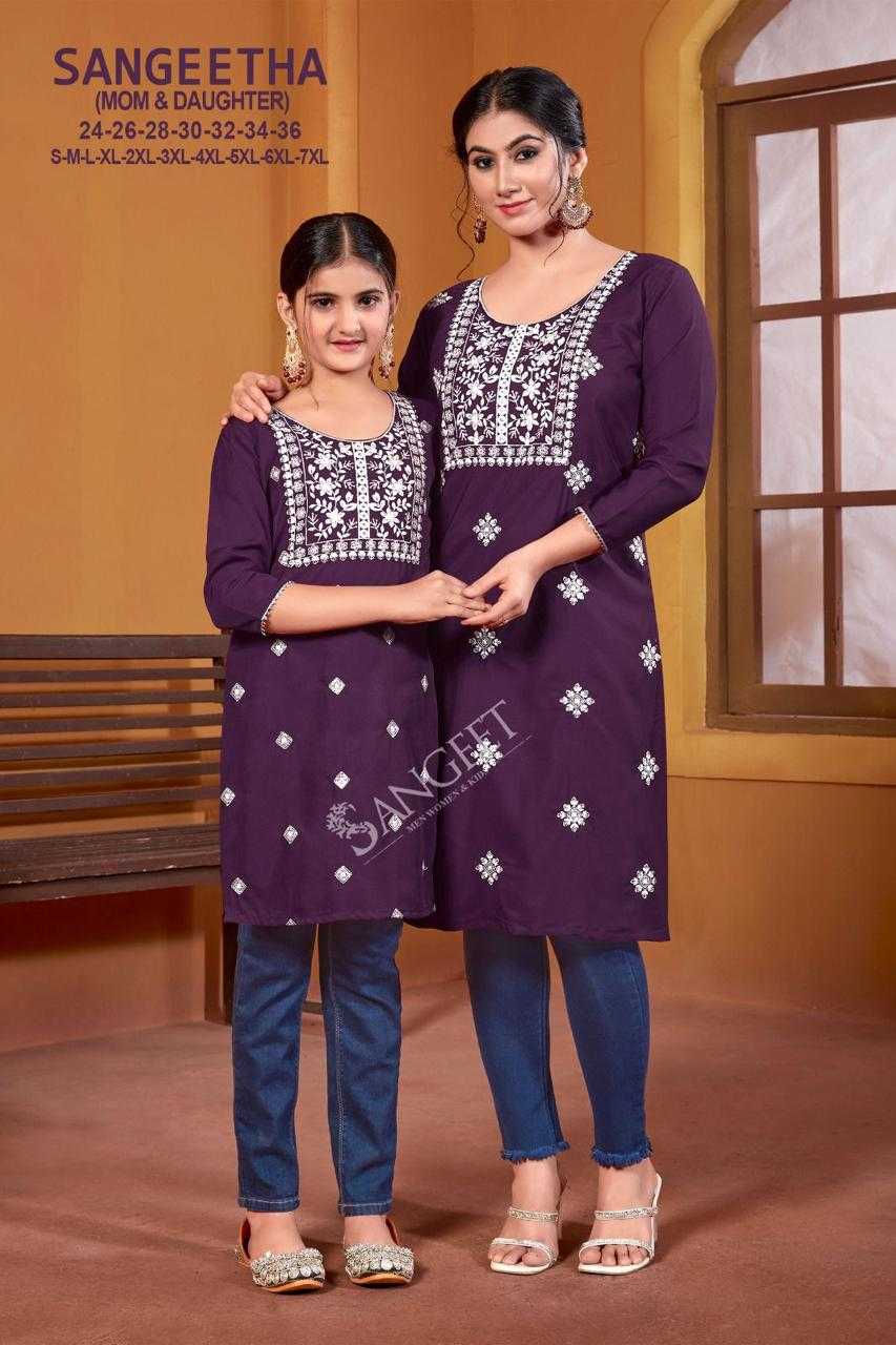 pr sangeetha fancy stitch white embroidery work mother daughter kurti combo set
