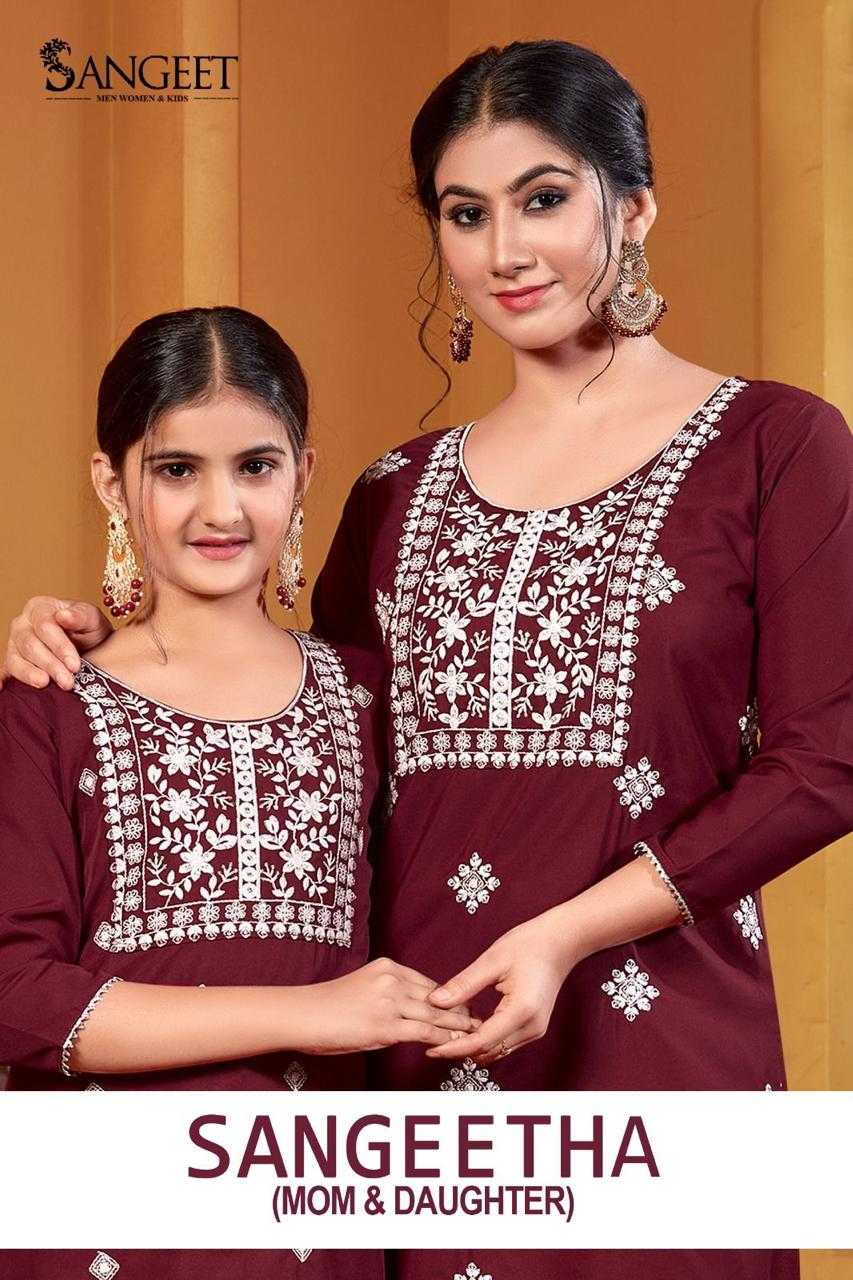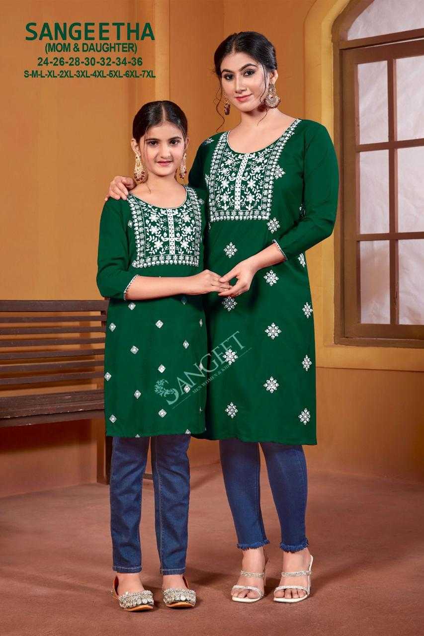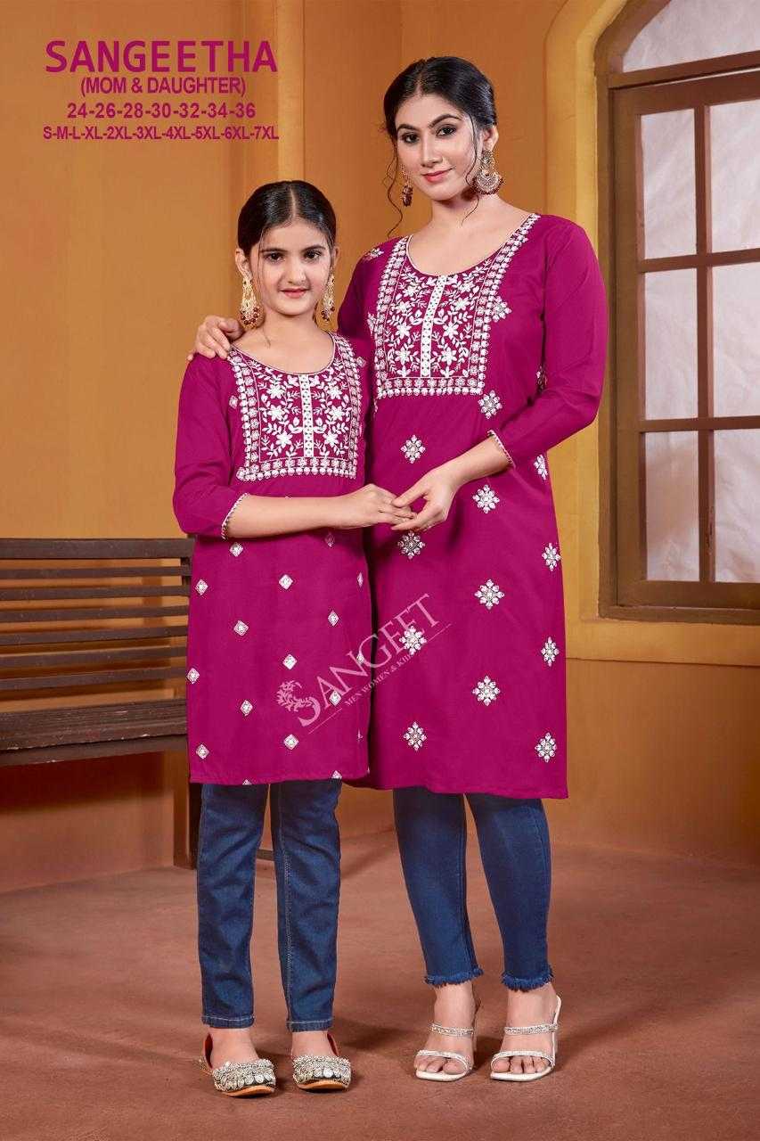 pr sangeetha fancy stitch white embroidery work mother daughter kurti combo set