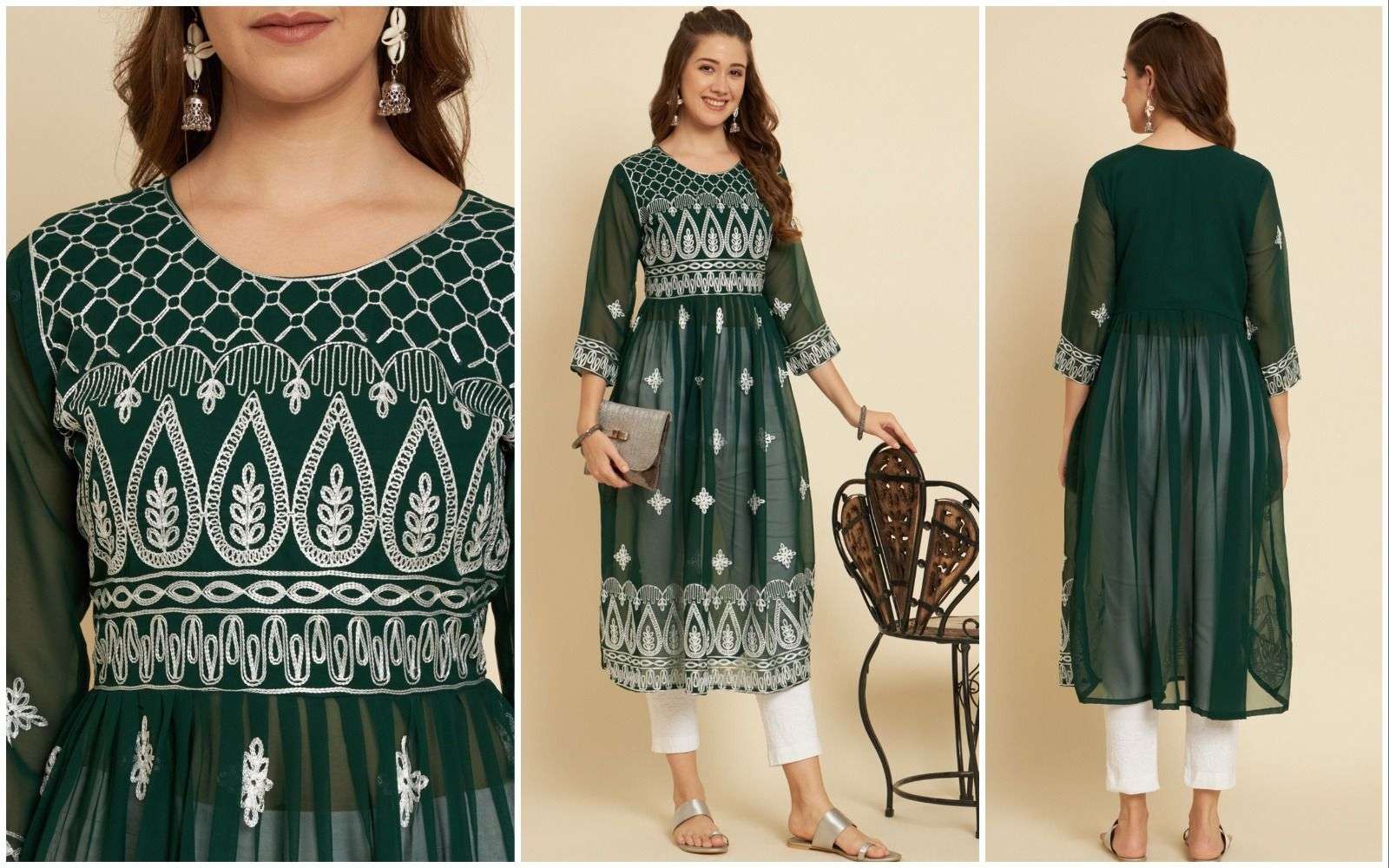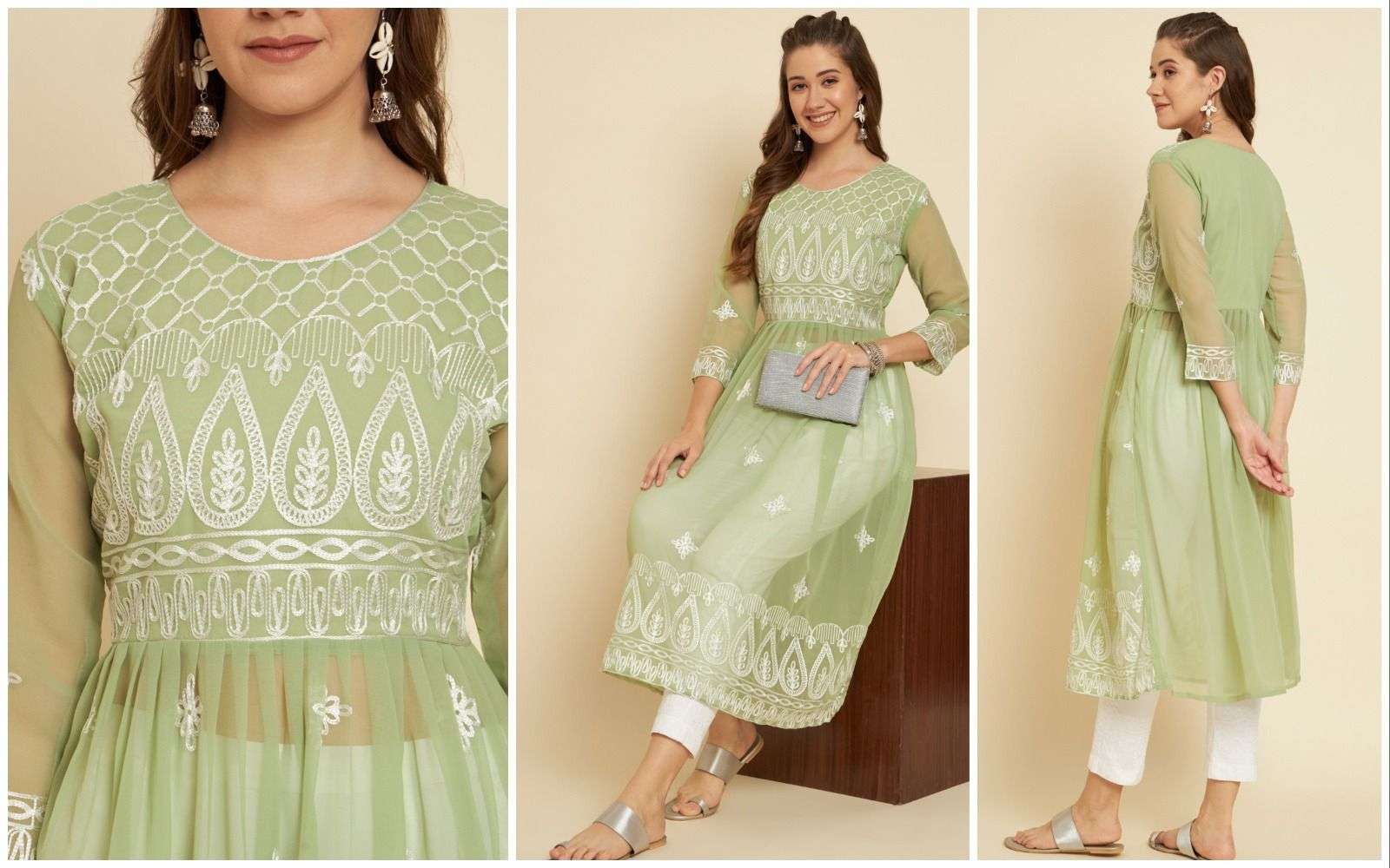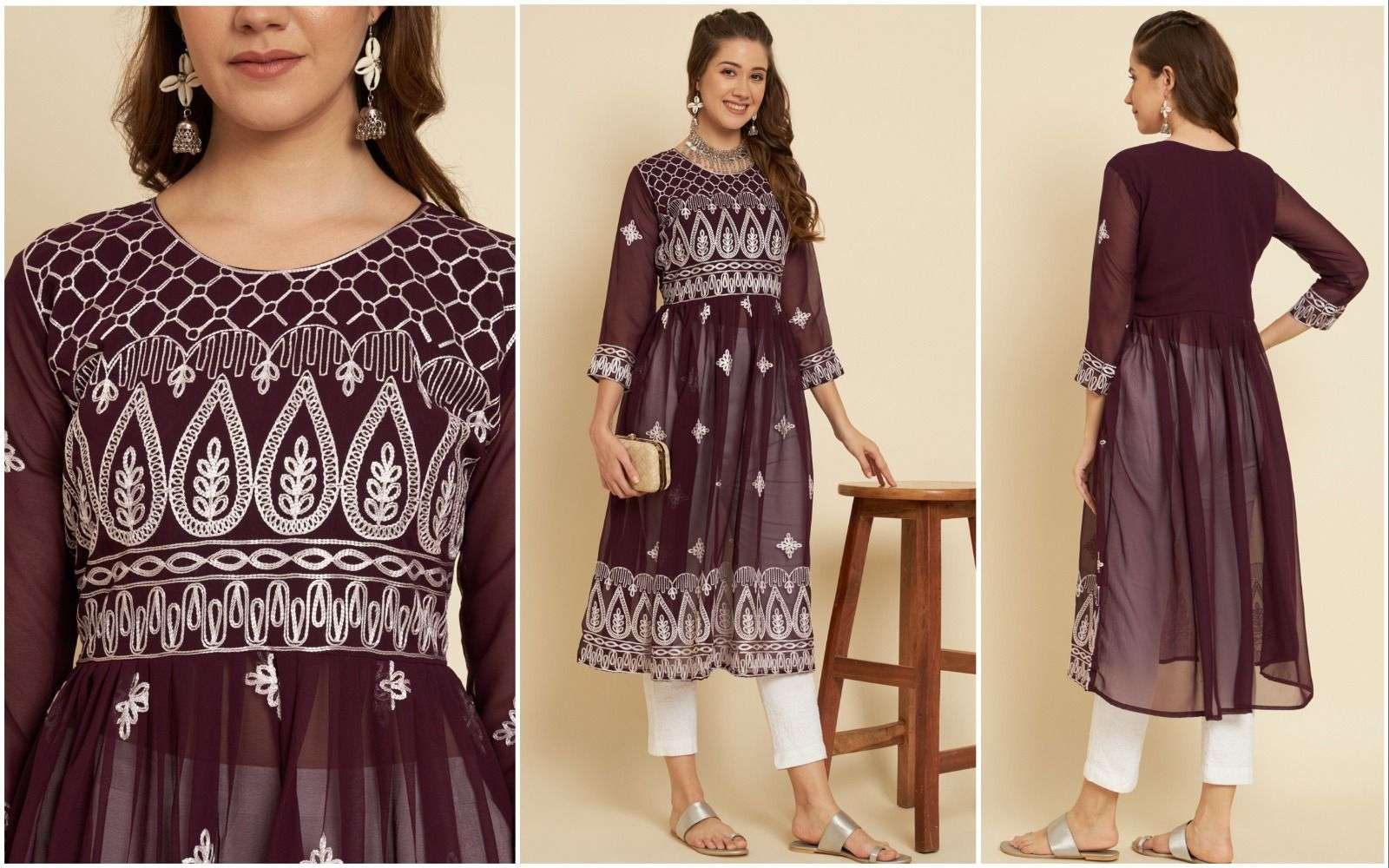 pr sia1 designer lucknowi chikankari work fancy kurtis