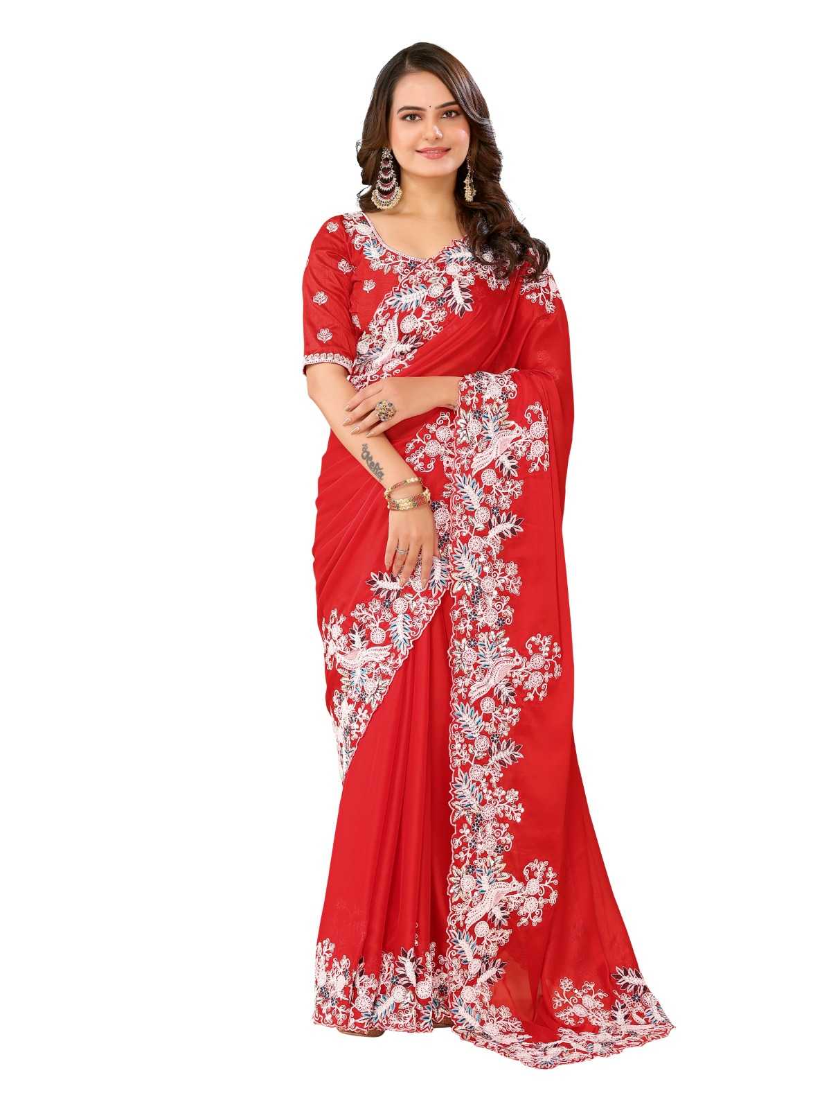 pr subhdra unique style red colour rangoli silk saree
