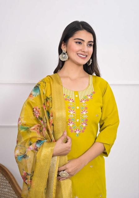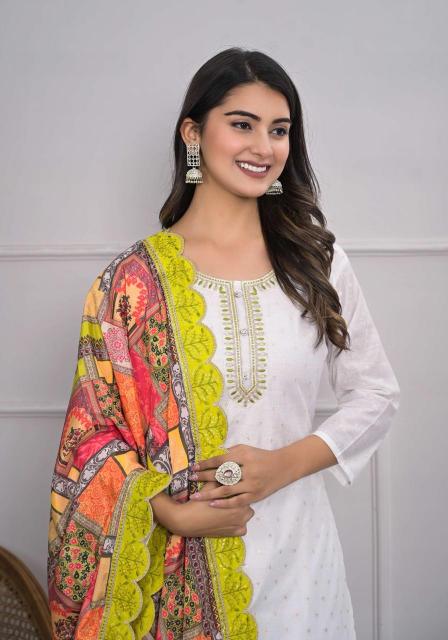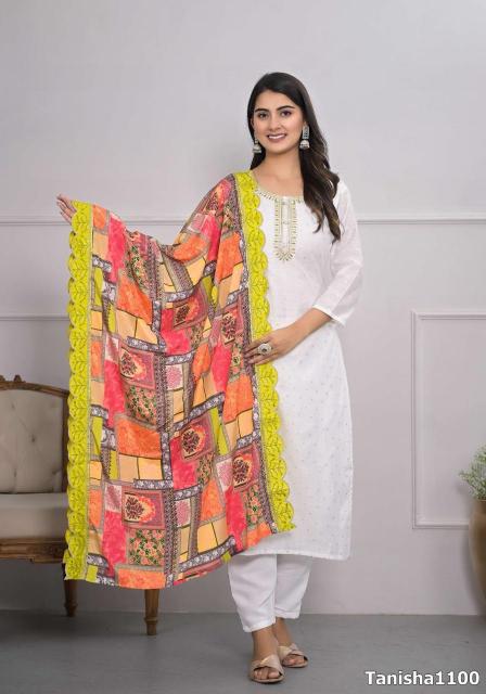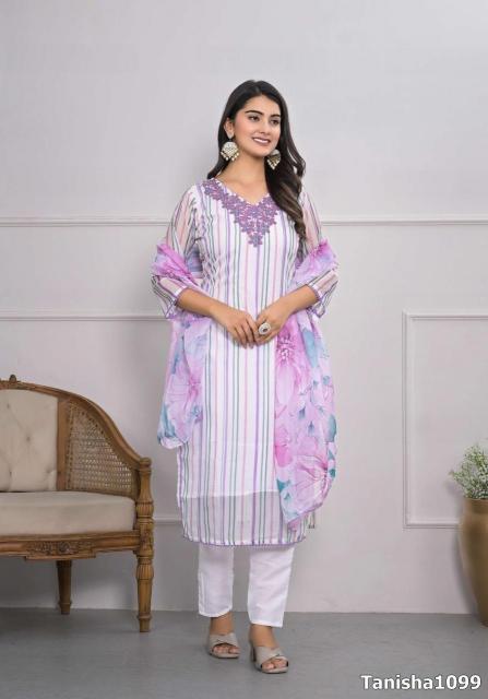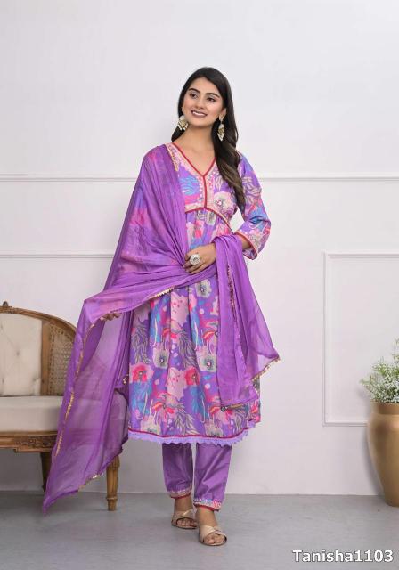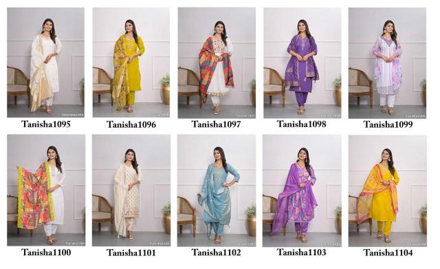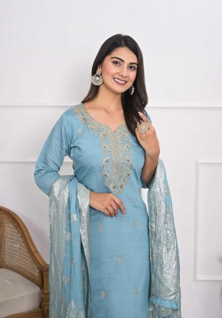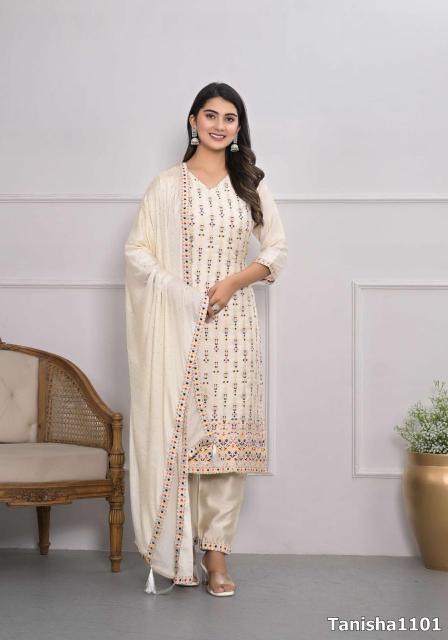 Traditional elegance Festive Kurta Set. Catalog Name: - Tanisha Vol 15. Top/Bottom Fabric: - Work: - Embroidery with Thread and sequence. Size: - M (38), L (40), XL (42), XXL (44). Weight: -750 gms. GST: - 5%. Rate:- |