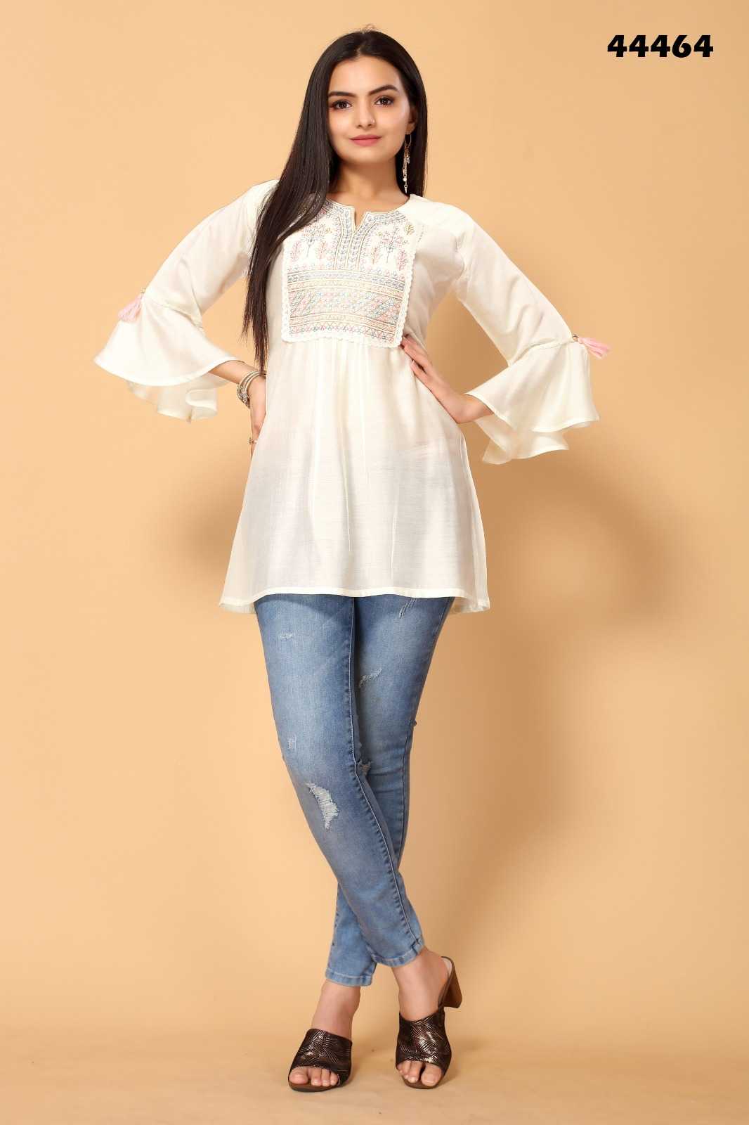 ♻ OUR NEW WESTERN SHORT TOP COLLECTION♻️ CATALOG NAME : TARINI VOL 06 PRICE :*+ SIZE : S(36), M(38), L(40). XL(42),XXL(44) WORK : Embroidered SET WISE AVAILABLE 👇 TOP LENGTH: 30 INCH