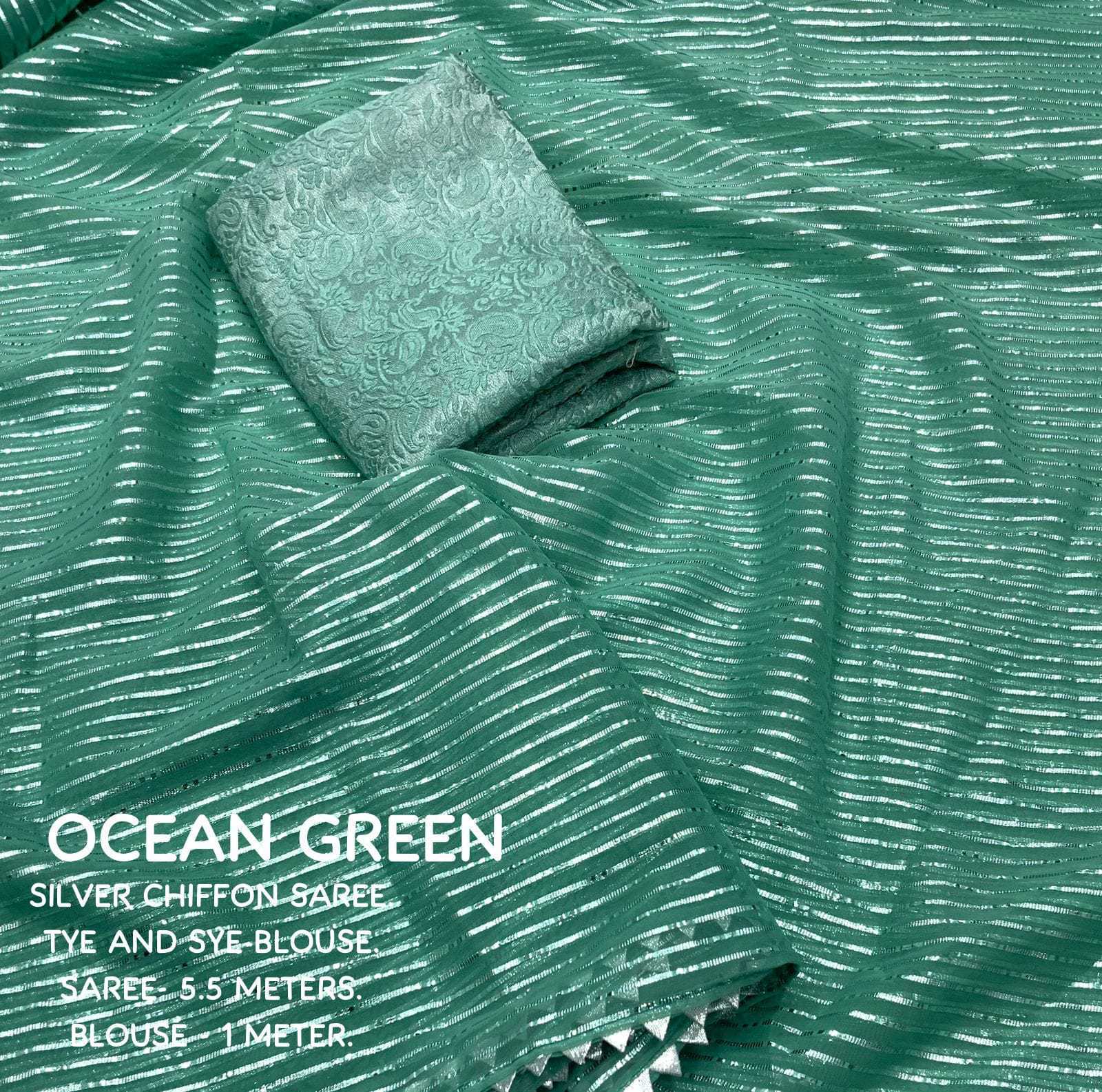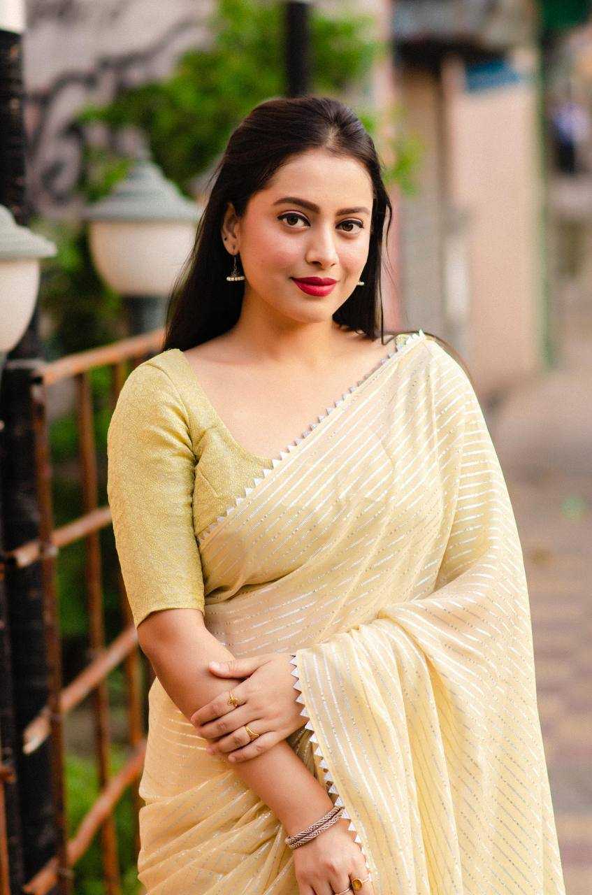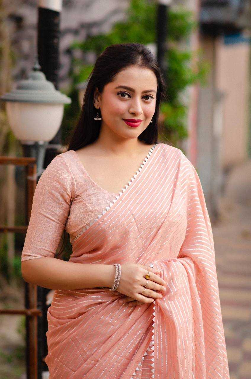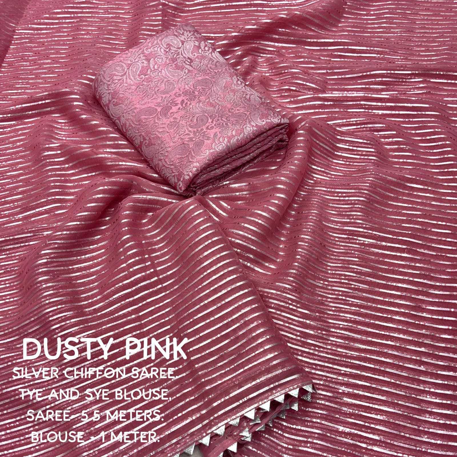 BEST SELLER TEMPLE CHIFFON (VOL-3) Quality- soft chiffon saree with silver zari weaving line in allover saree Gota patcted temple border Blouse - ton to ton tye and dye banarsi silk blouse Length- Rate - 599+ship Top trusted quality |