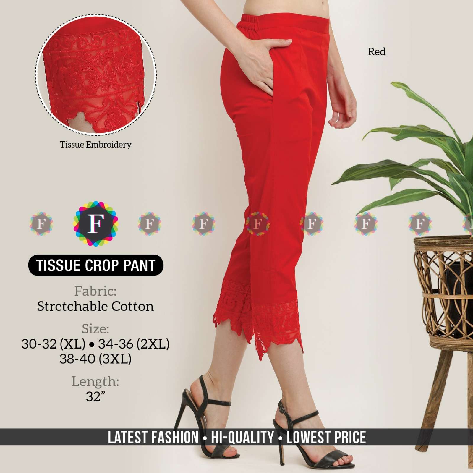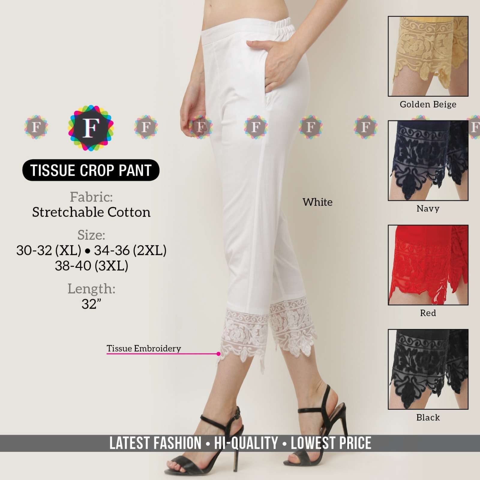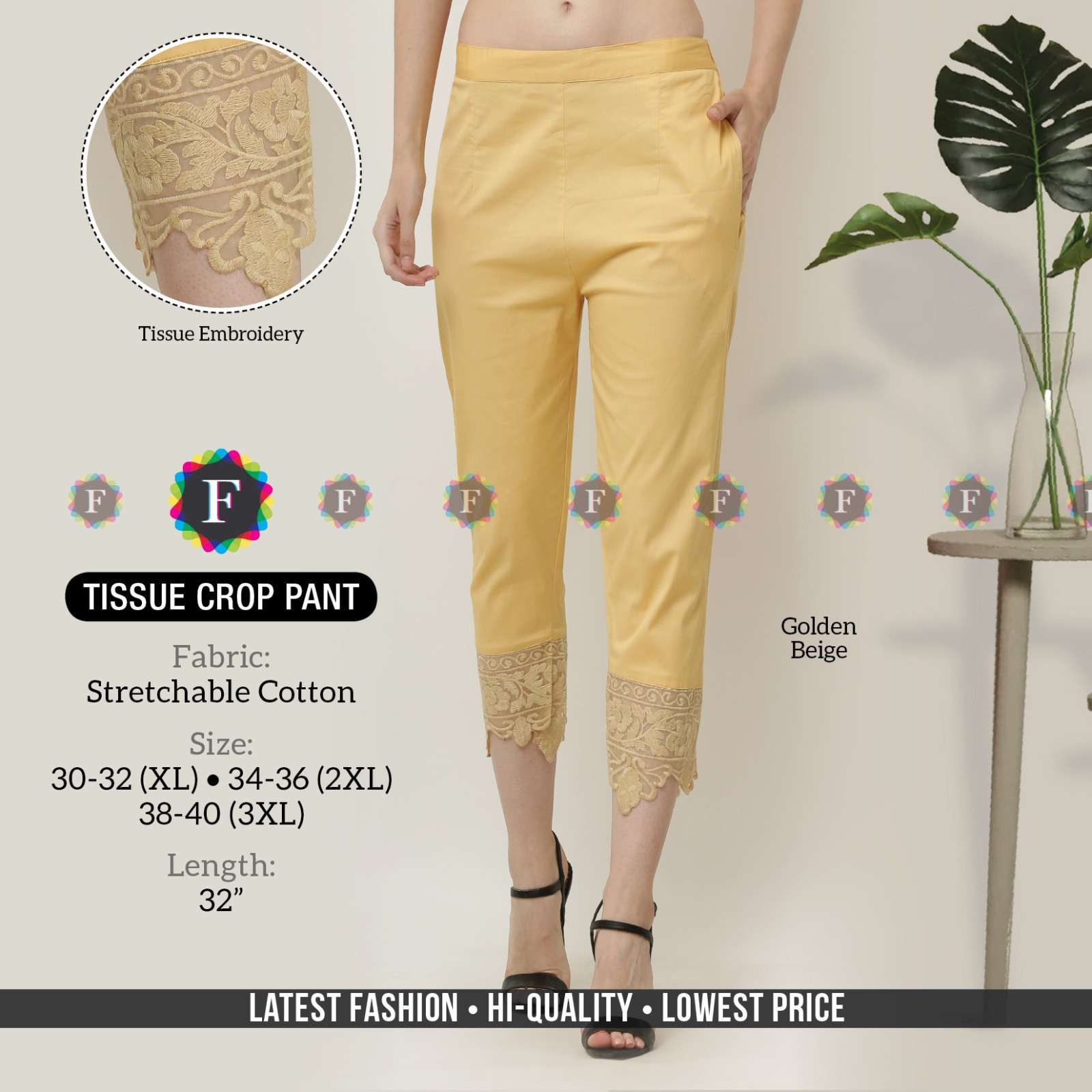 pr tissue crop pant fancy embroidery work stretchable cotton pants