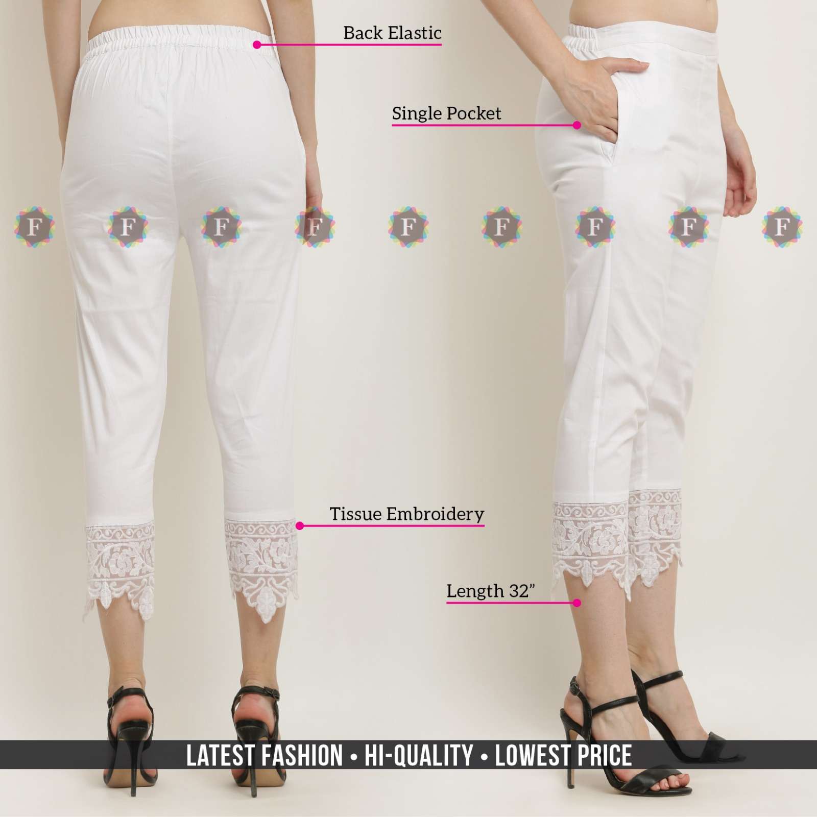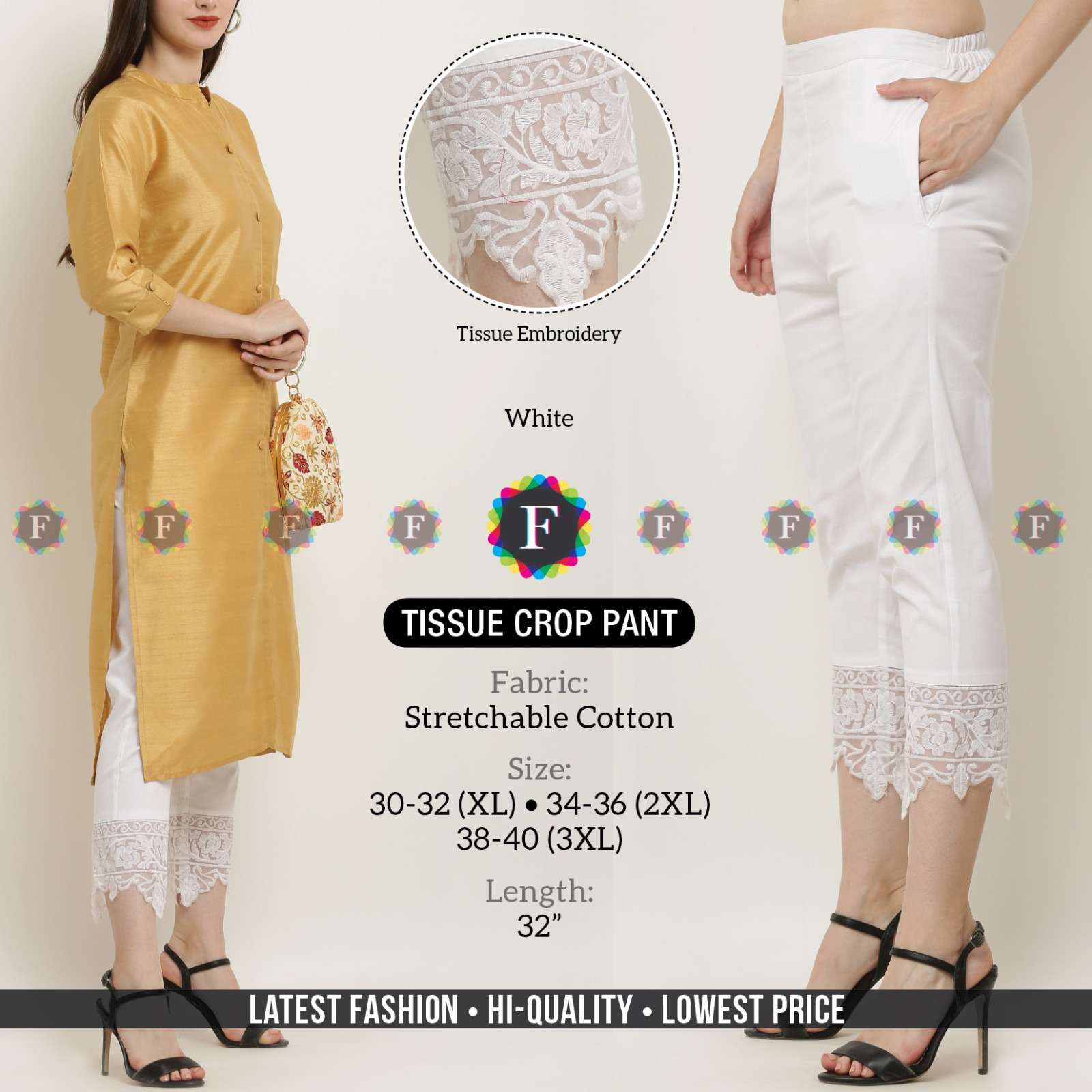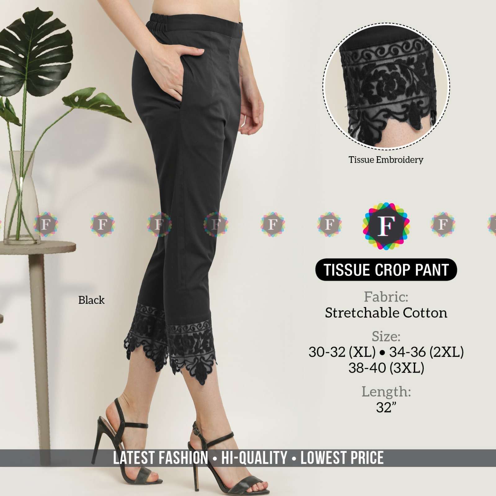 pr tissue crop pant fancy embroidery work stretchable cotton pants