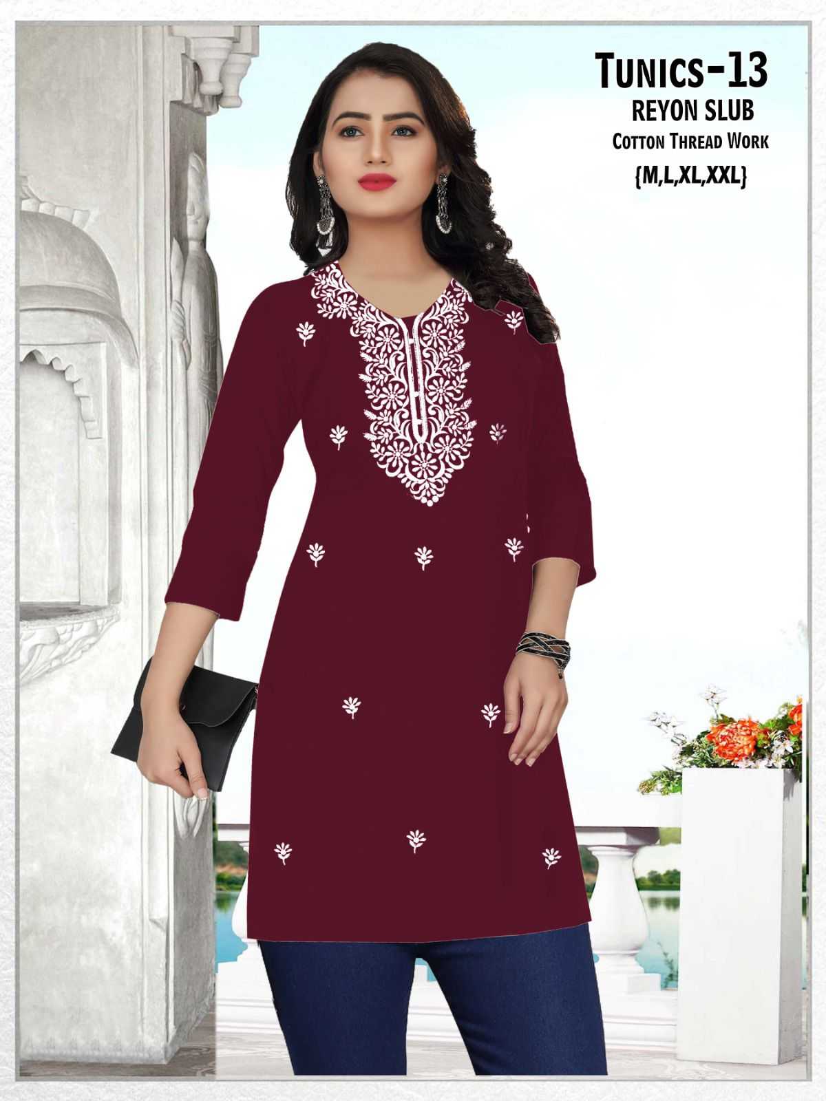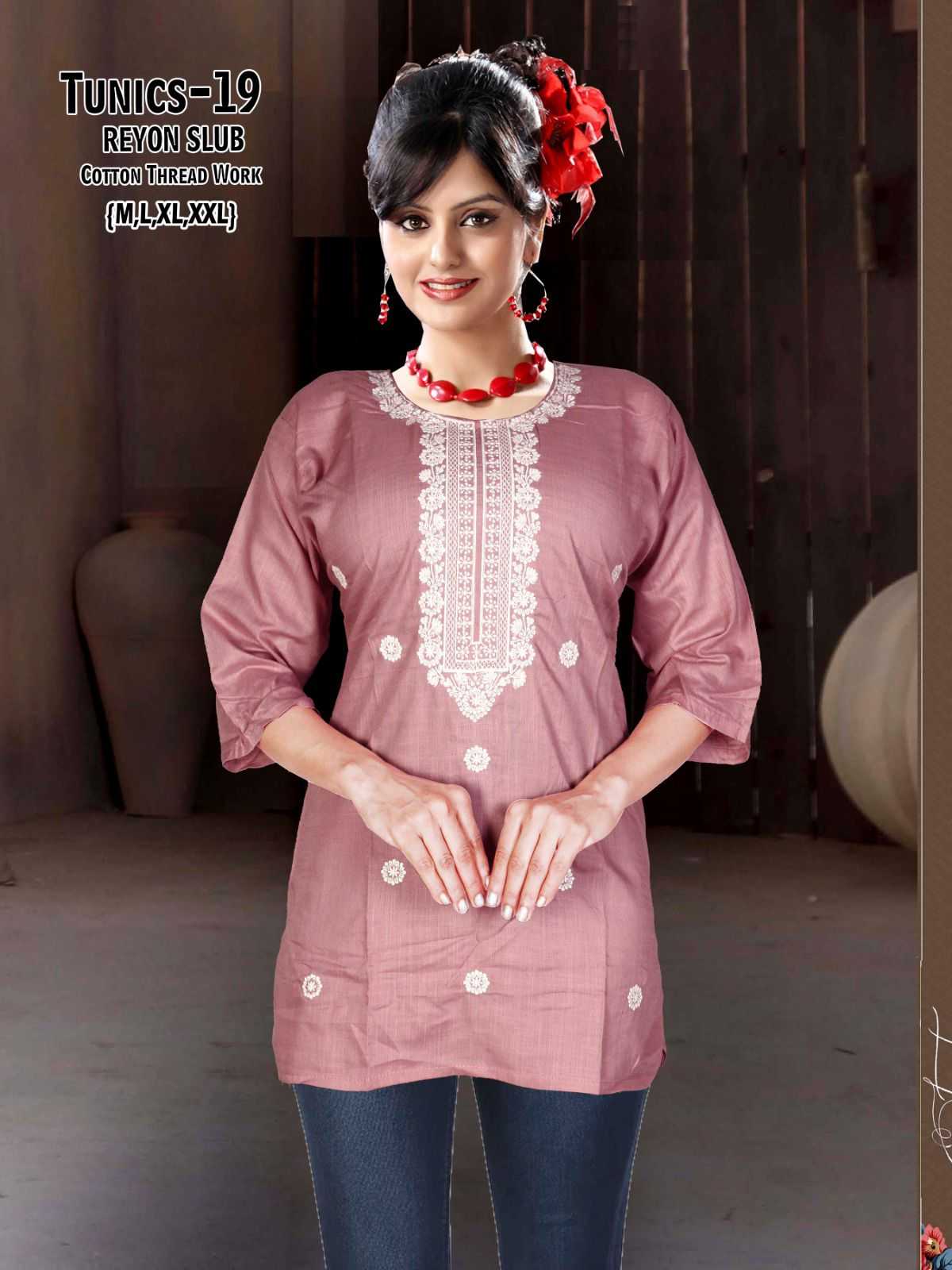 pr tunics rayon slub stylish outfit look readymade combo set short kurti