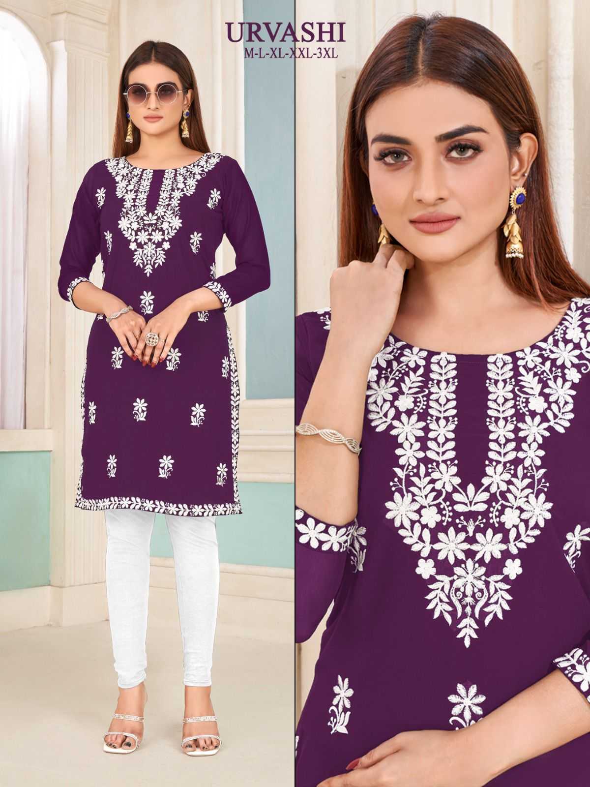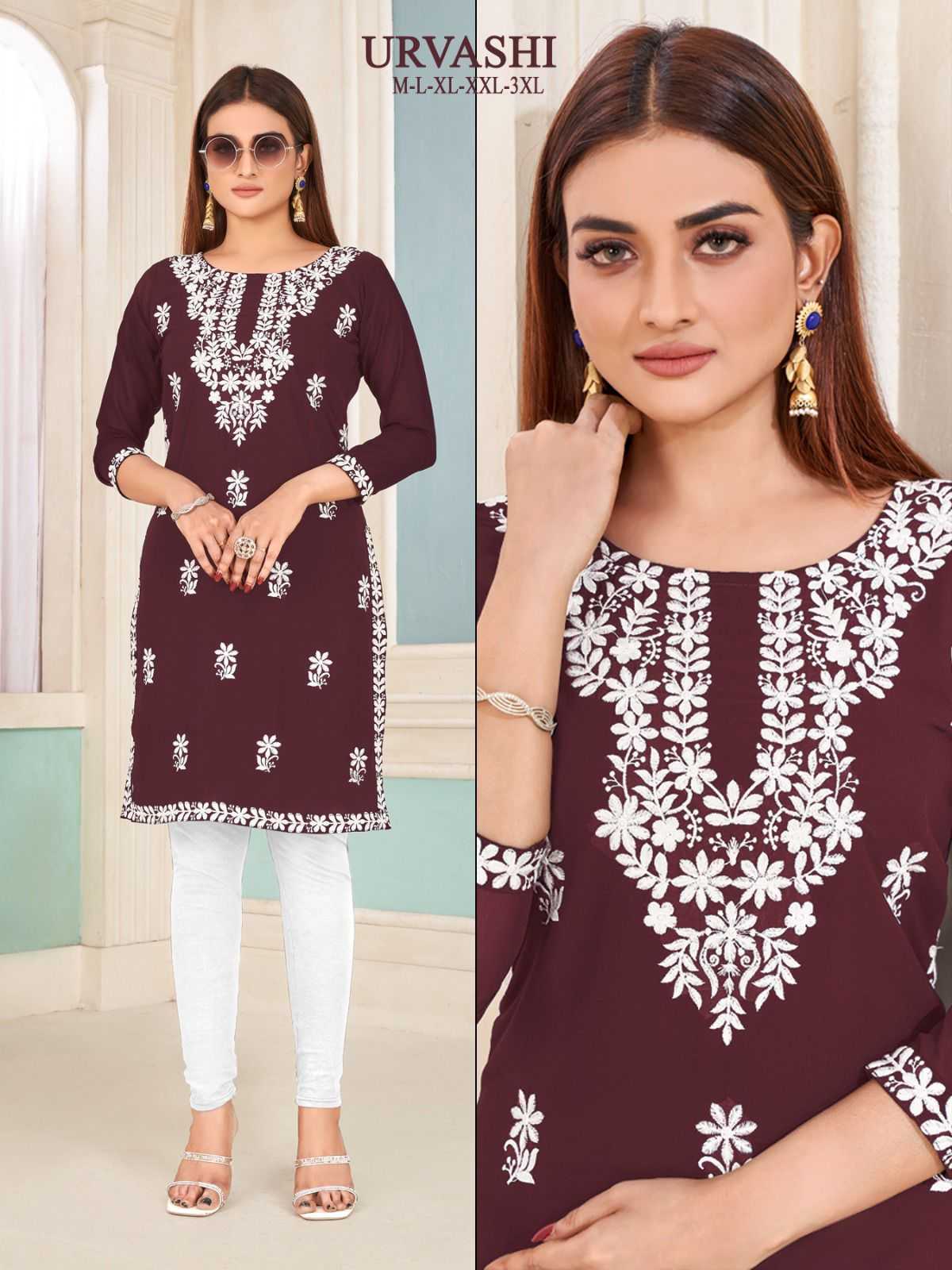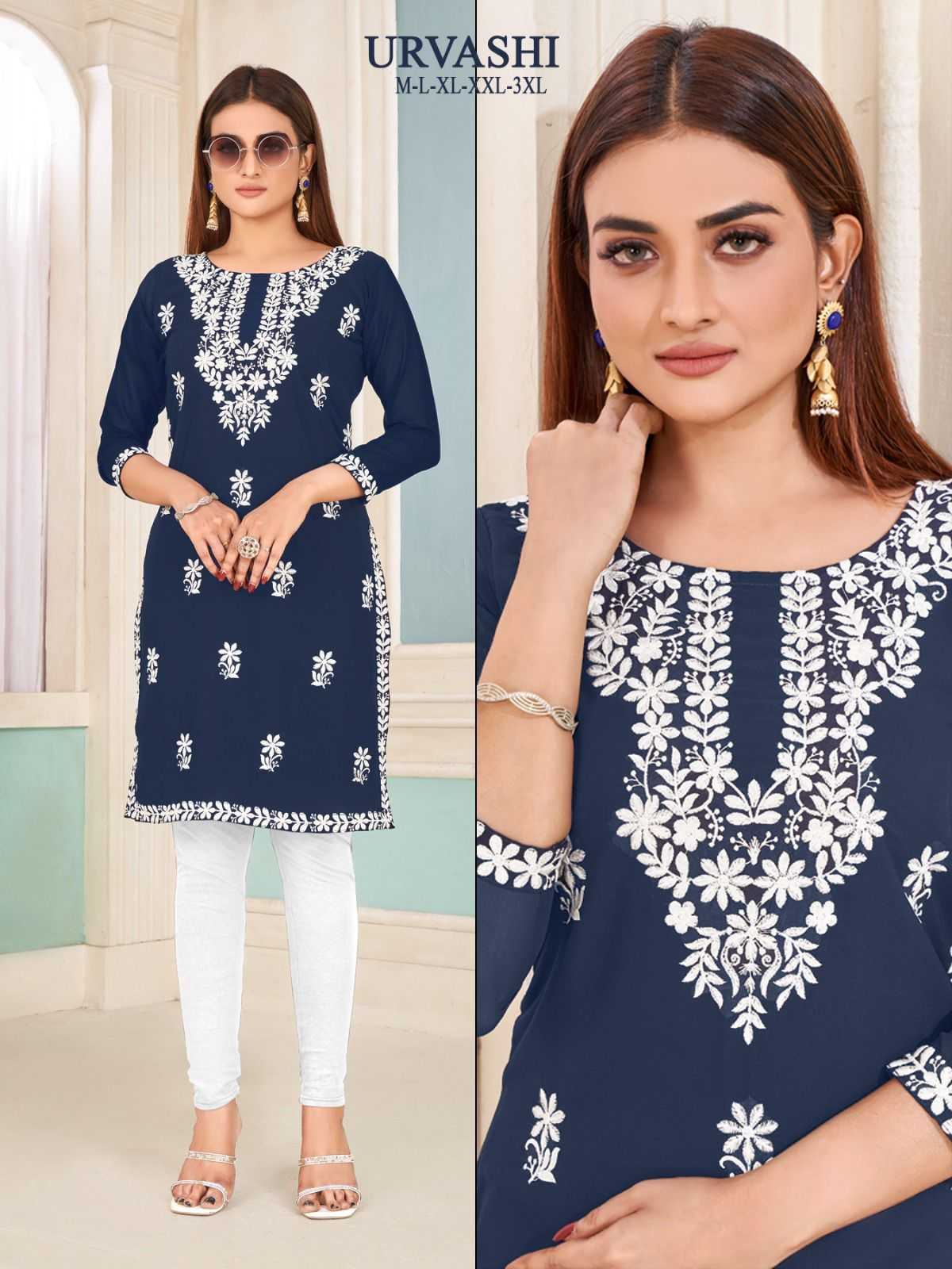 pr urvashi nx stitch georgette white embroidery kurti collection
