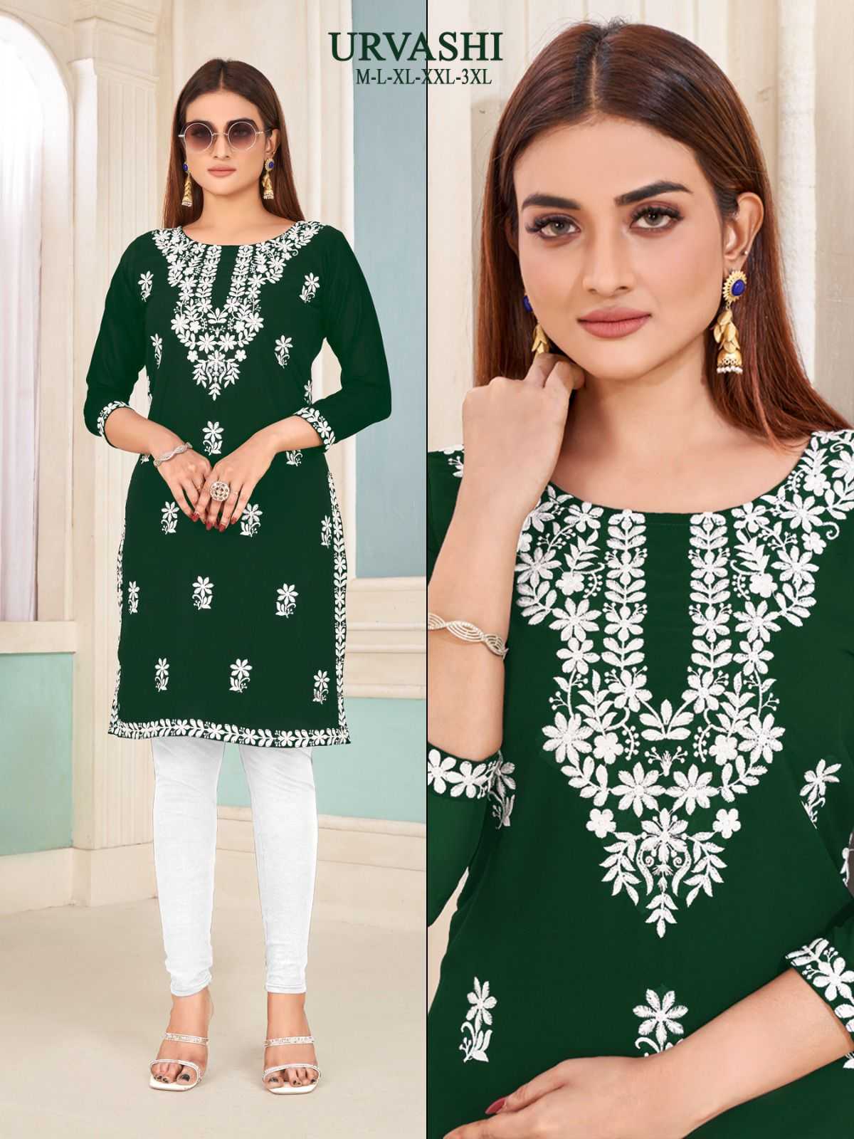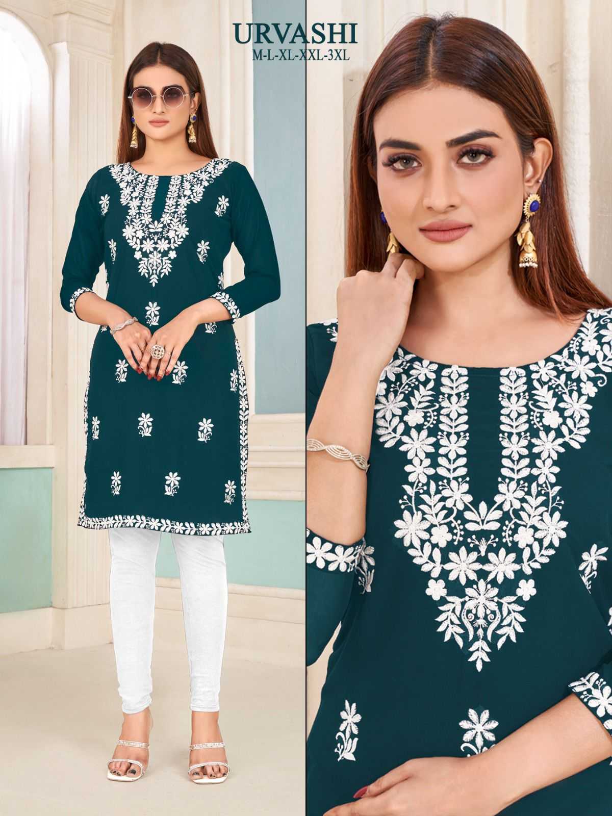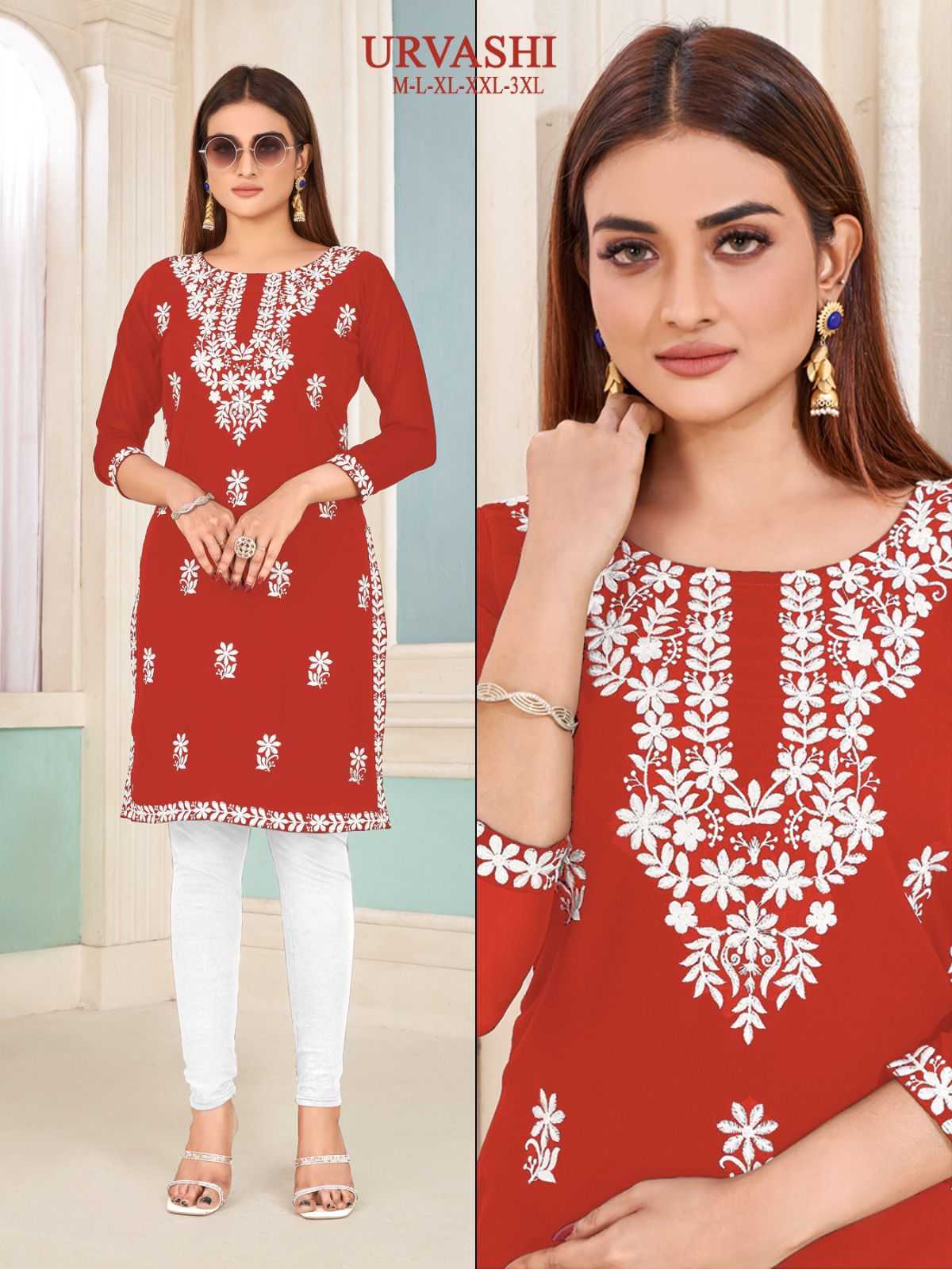 pr urvashi nx stitch georgette white embroidery kurti collection