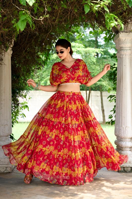 pr vaatika nnk1132 chiffon readymade traditional wear short sleeve crop top