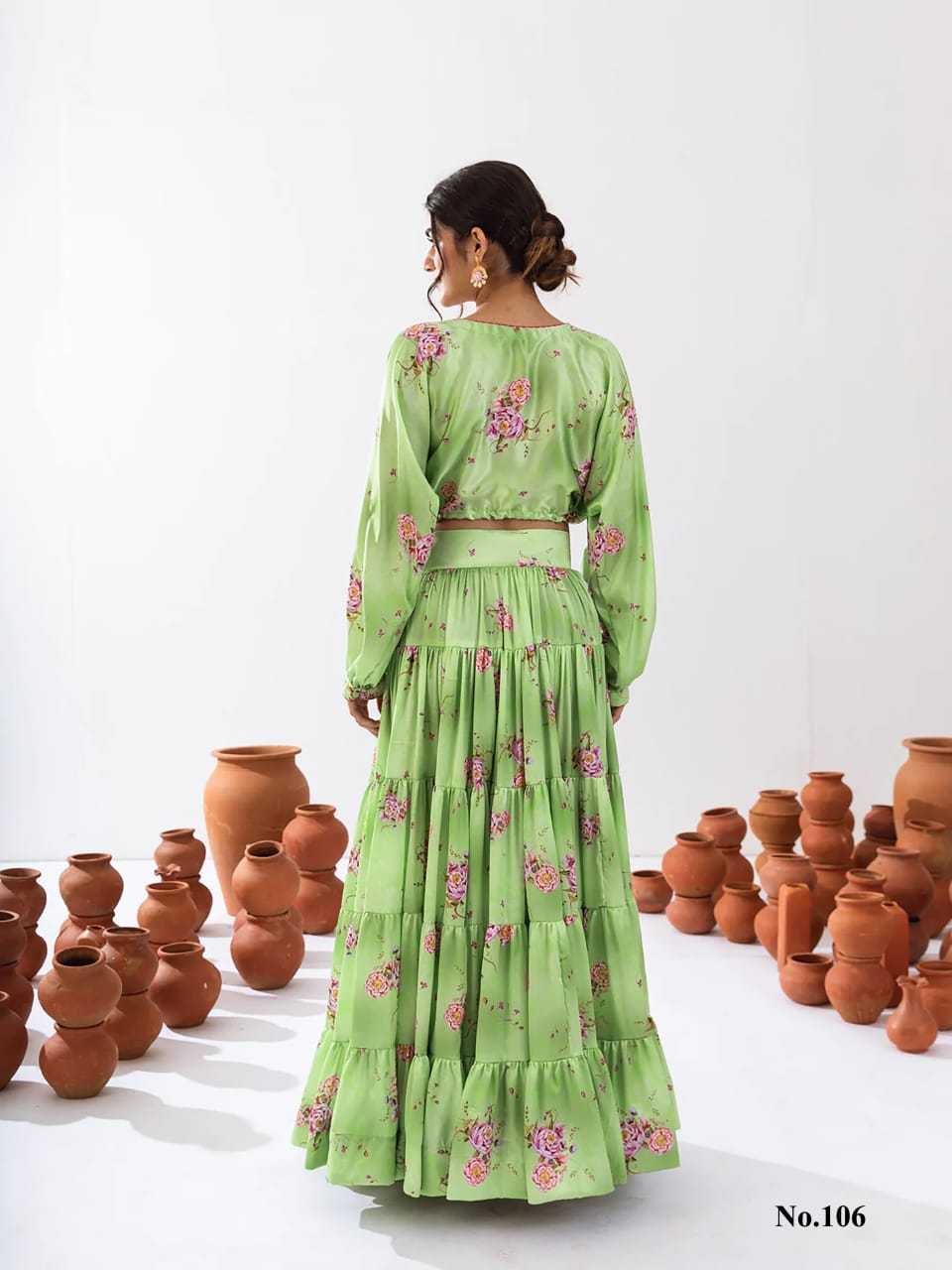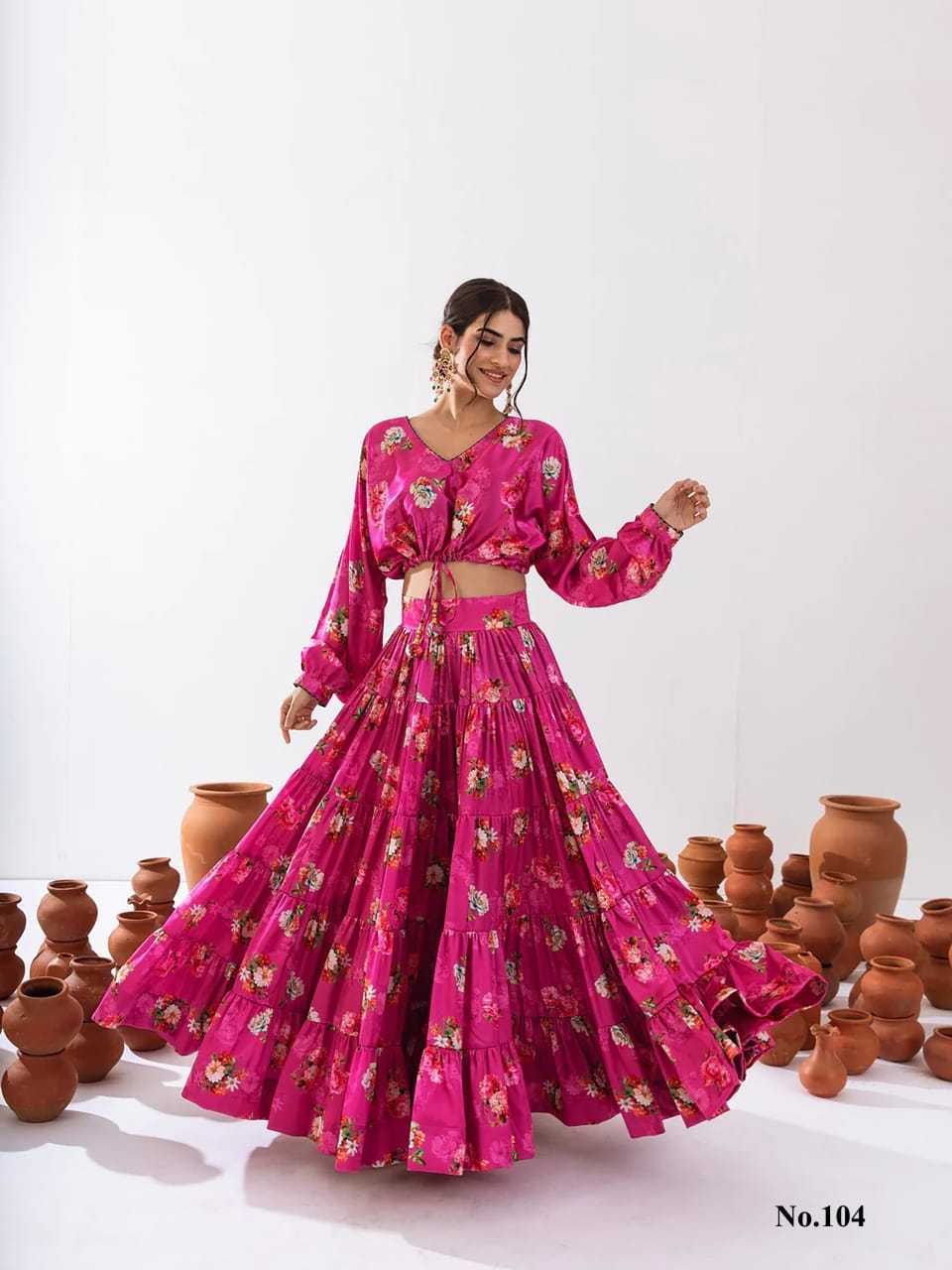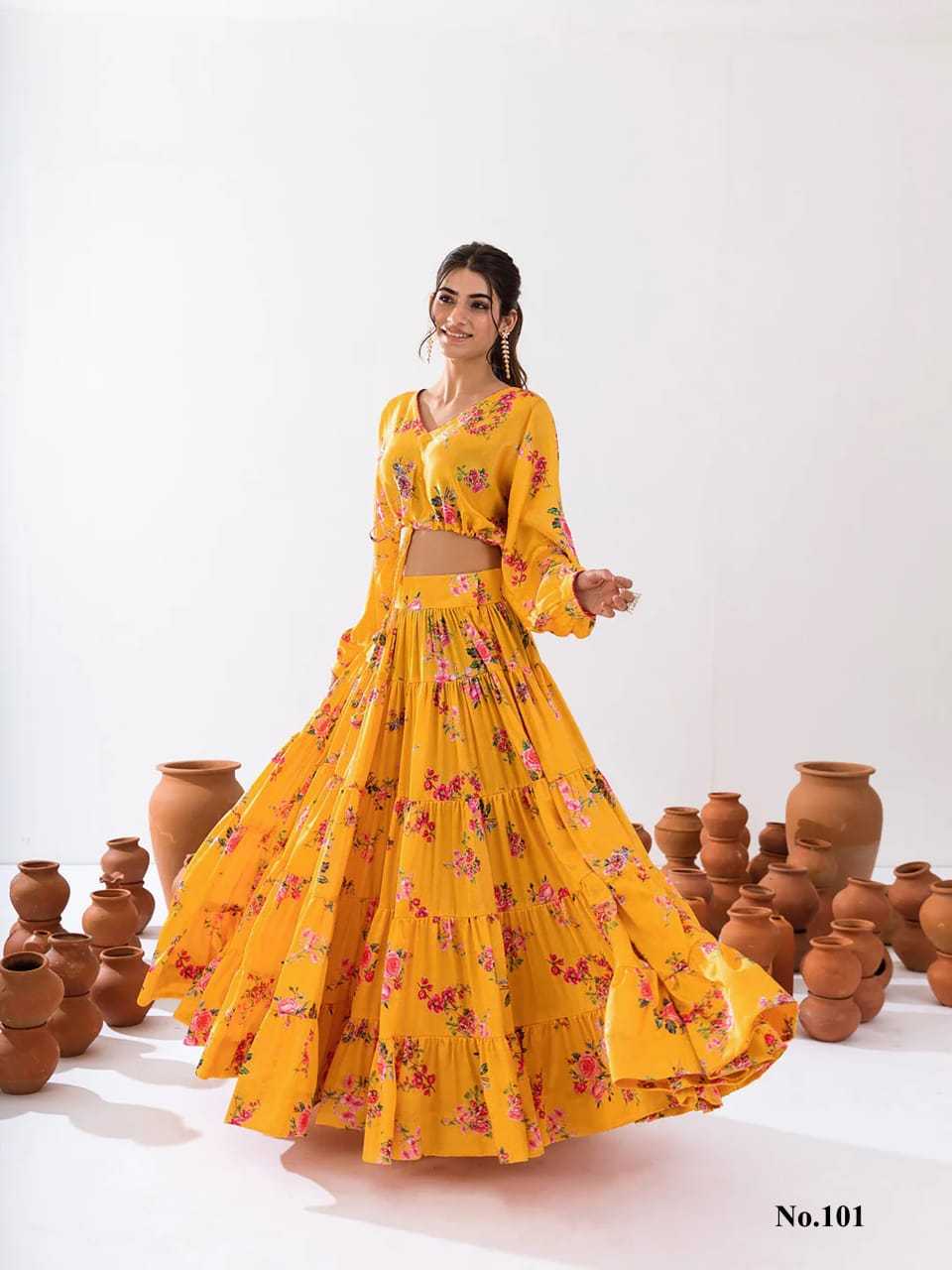 Product details Pack Contains: 1 crop top,1 lahenga Pattern: Heavy Digital print Fabric: Heavy Airtex chinon Crop Top length: - 14-15”inch Crop-top stitching: - waist adjustable top enhanced with matching beautiful latkan Lahenga length: - 40-42”inch Lahenga stitching :- 5 layer panel, perfect fitting with side zip and clip & full inner , full round flair up to 10mtr... Lahenga flair Detail :- Up to 10 mtr+ flair Full stitched , Full round flair, Size: XS(34),S(36),M(38),L(40),XL(42),XXL(44),3XL(46),4XL(48),5XL(50),6XL(52) Style:- 2 piece Attractive Floral printed tier skirt with full flair paired with waist adjustable crop top enhanced with matching beautiful latkan Occasion:- Festival Wear, Function, Ceremonial, Wedding Wear, Party Wear Note: - 10-12% Colour variations may occur due to different screen resolutions RATE: - 1499/- GST :- 5% |
