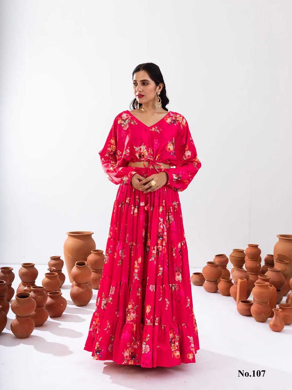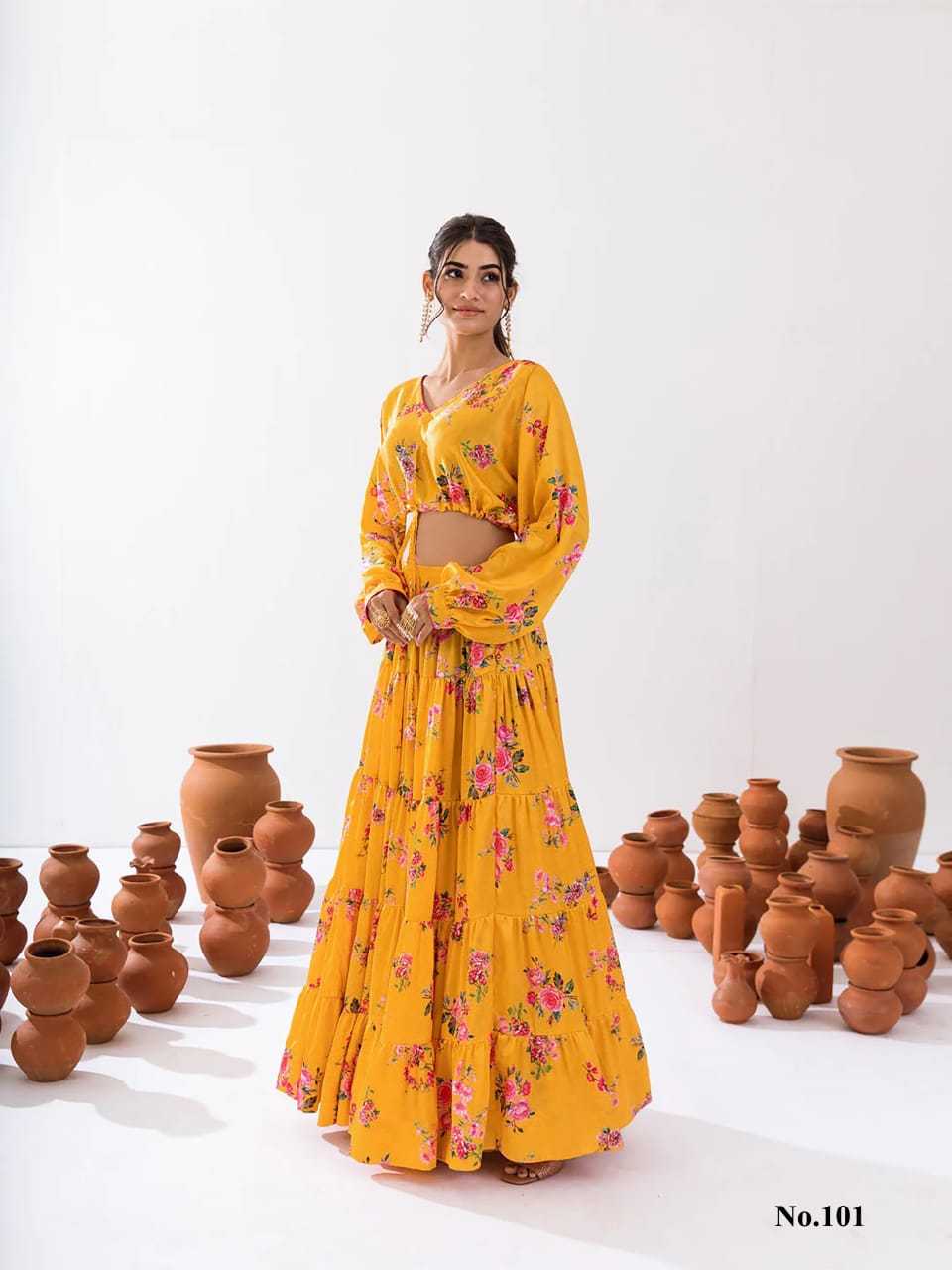 pr vallari vol 1 airtex chinon floral printed classic look fully stitch crop top suppiler