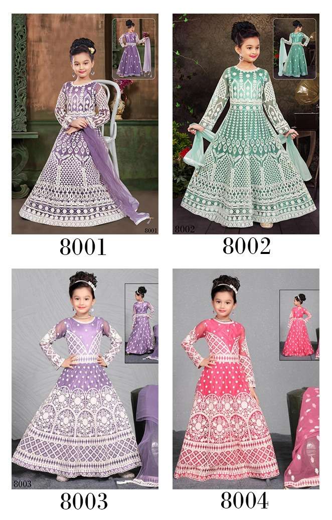 pr vamika net gown kids wear readymade embroidered thread work exports