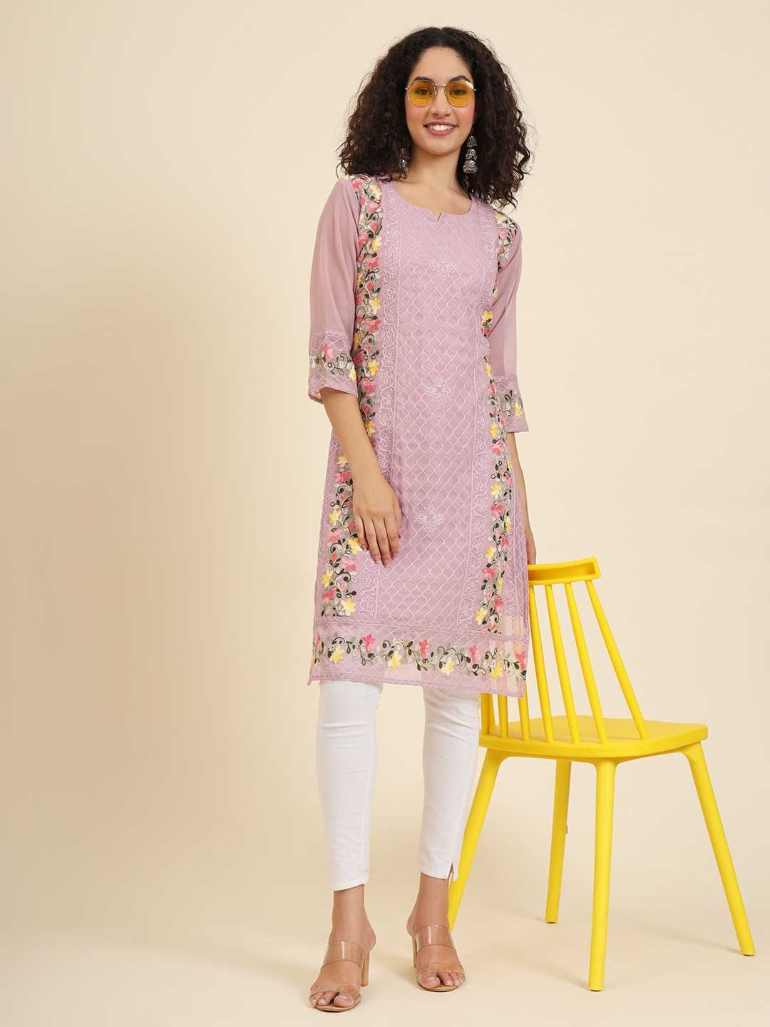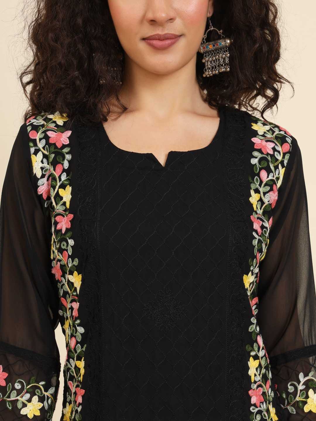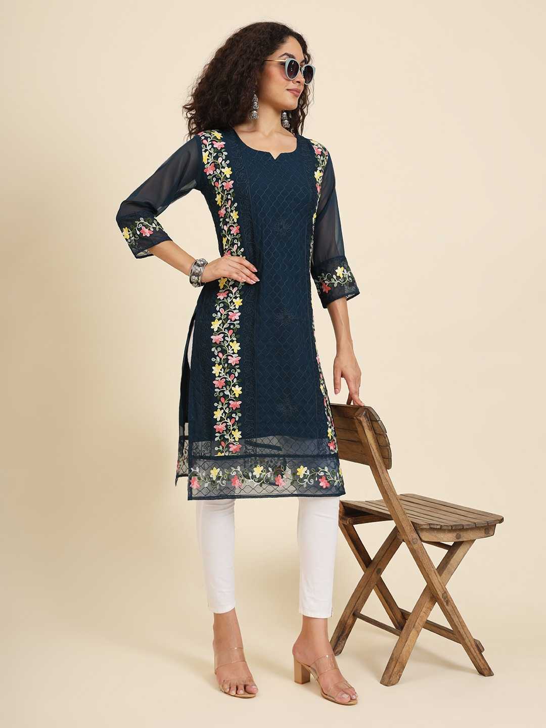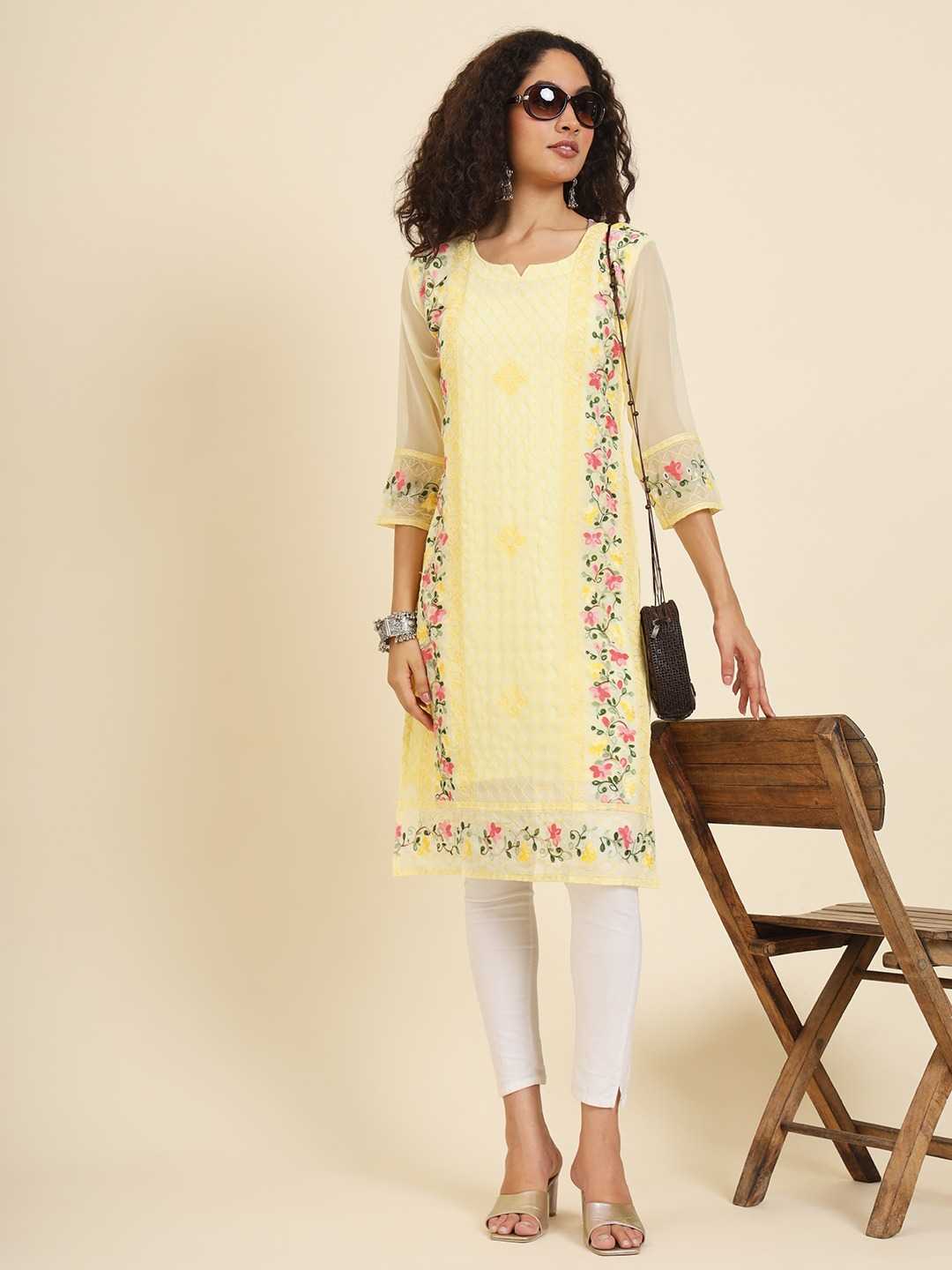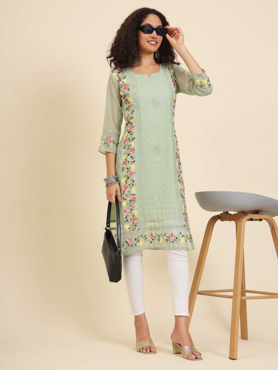 pr white flower vol 6 georgette lucknowi chickenkari full stitch kurti