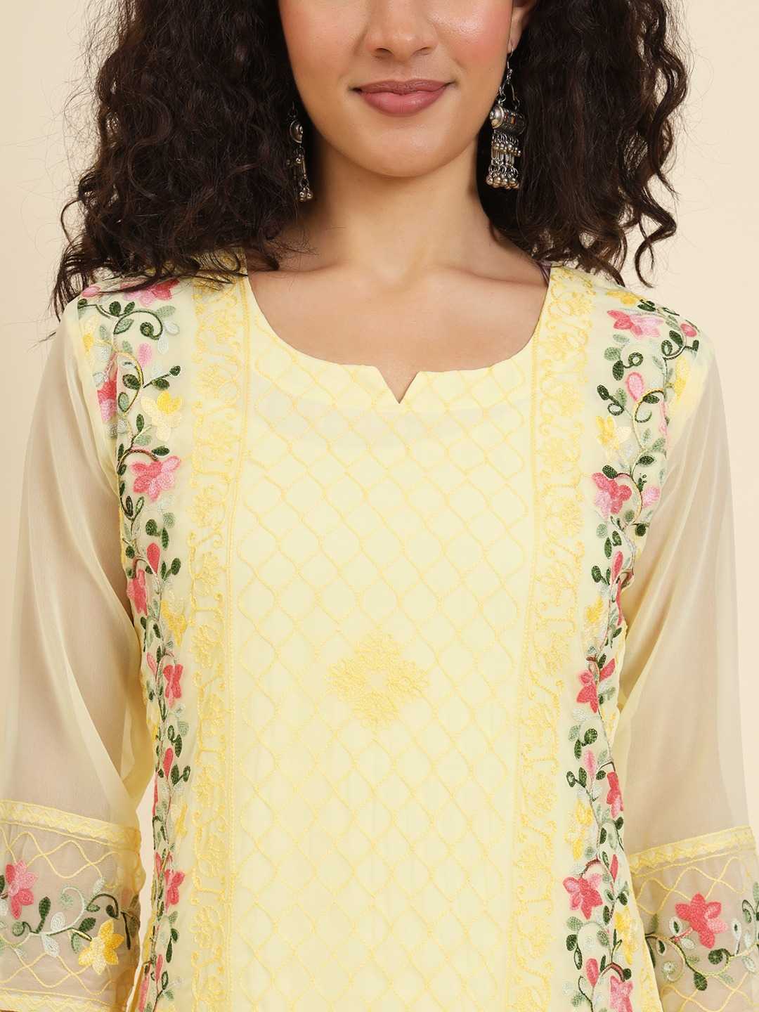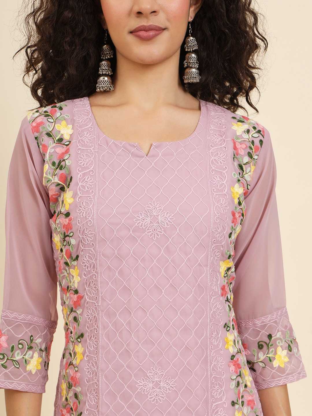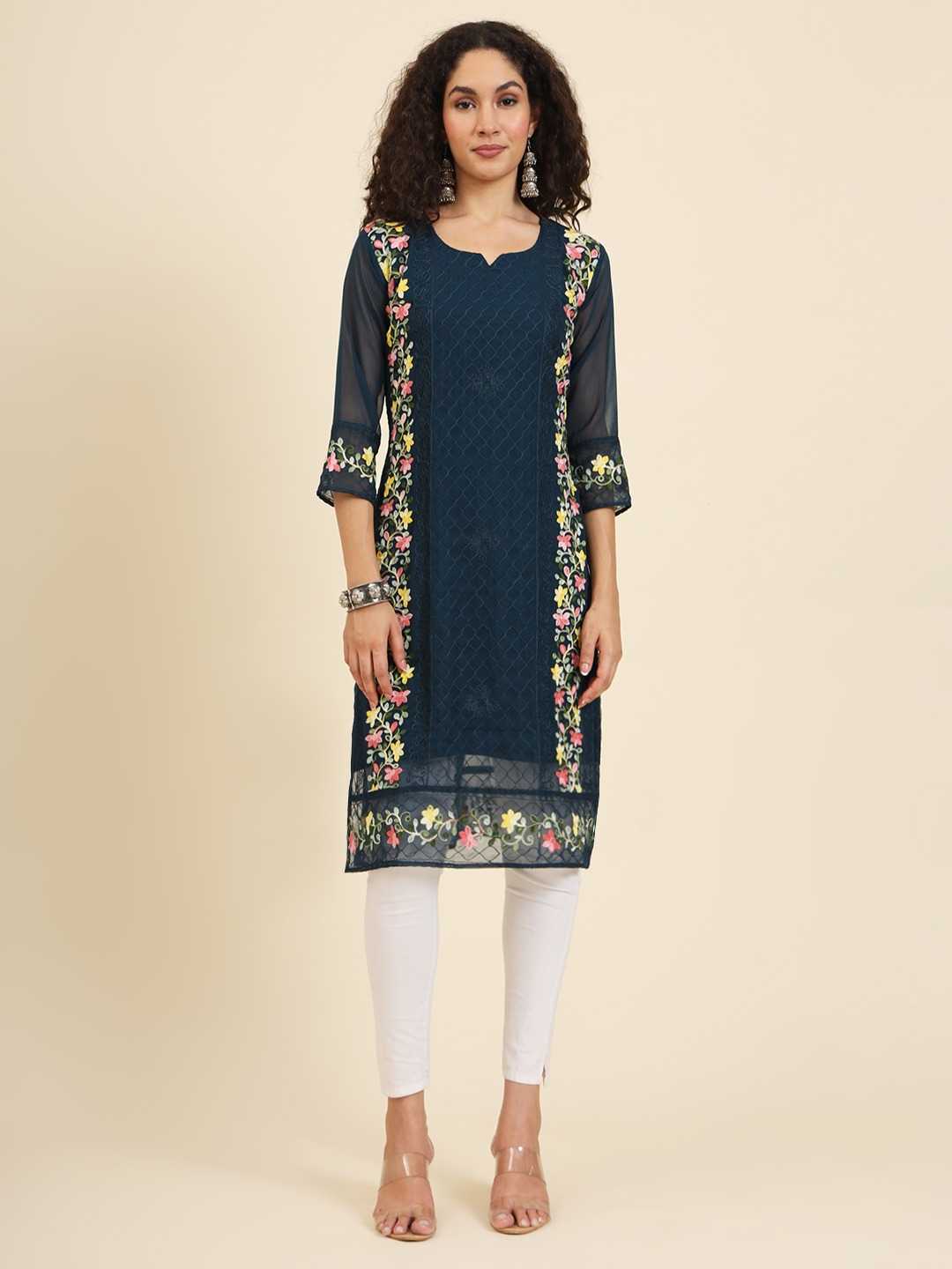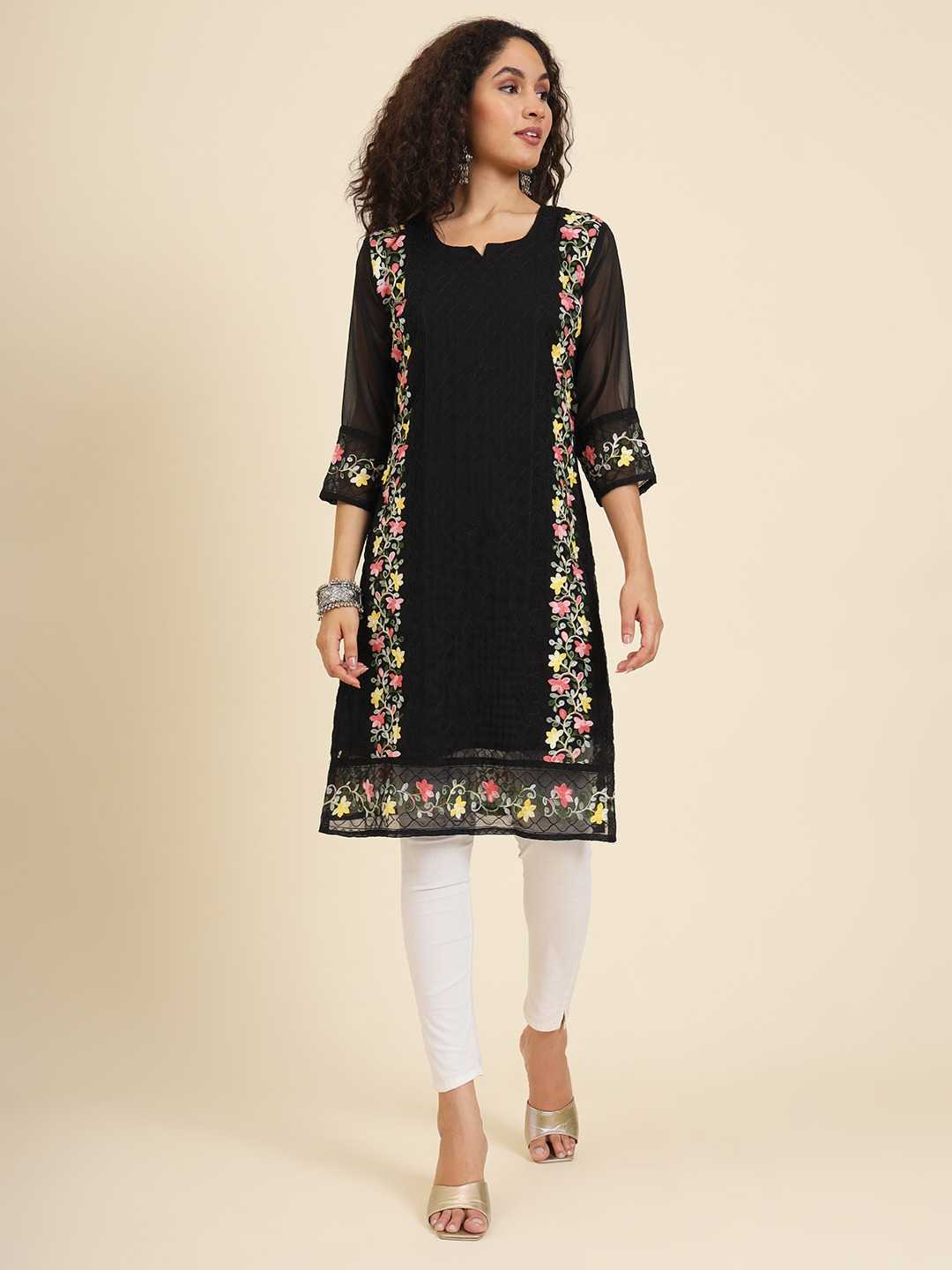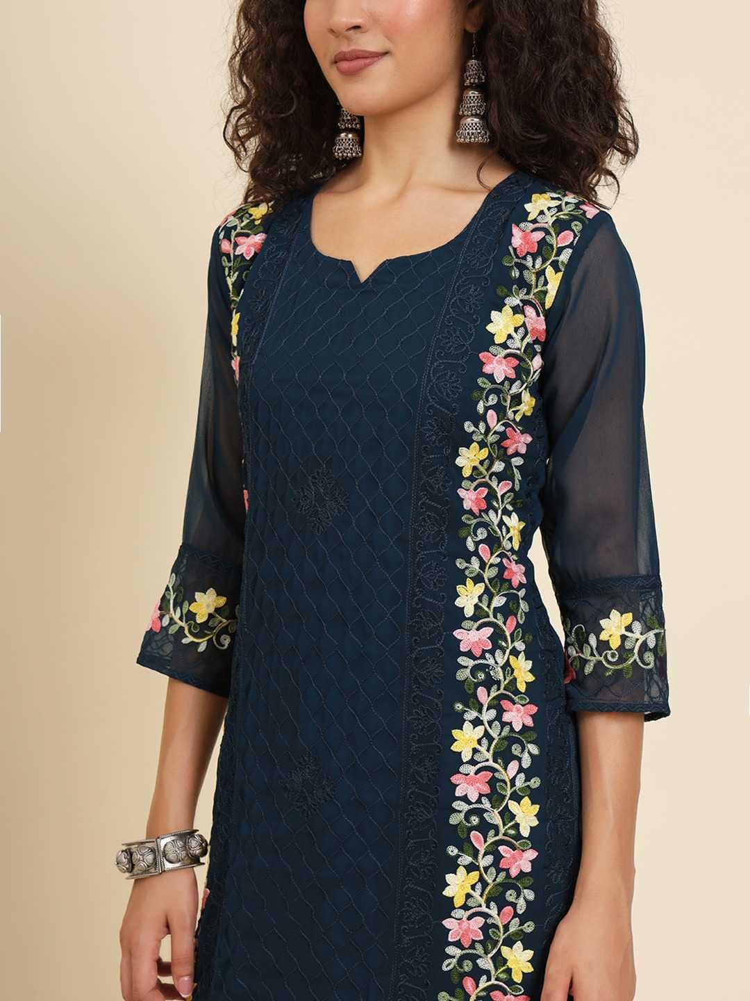 pr white flower vol 6 georgette lucknowi chickenkari full stitch kurti