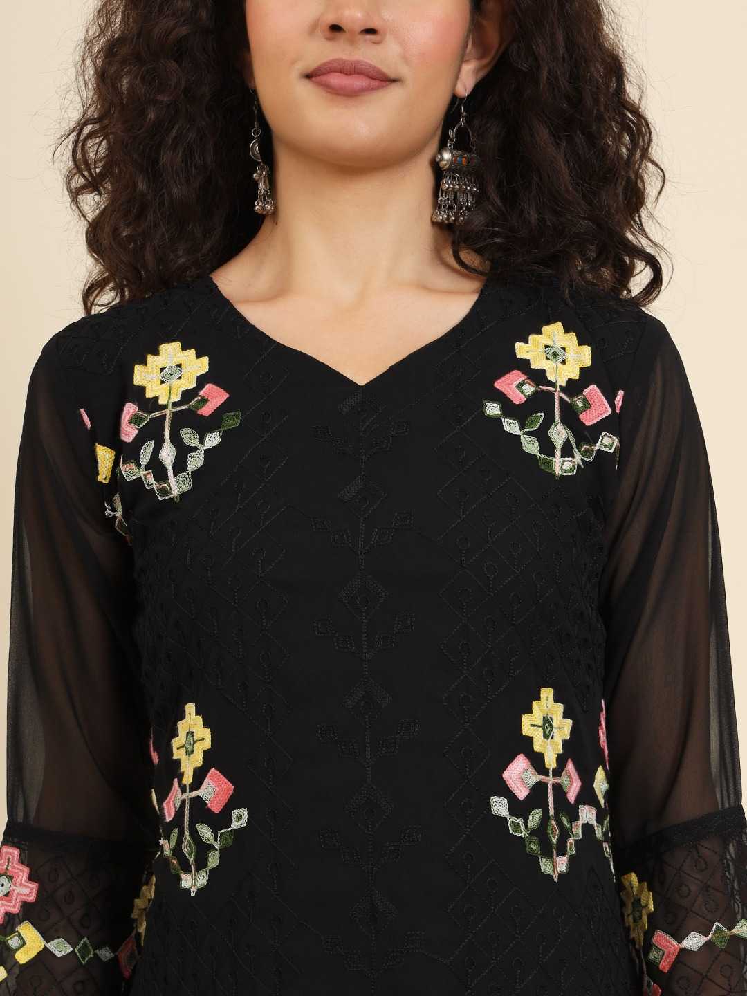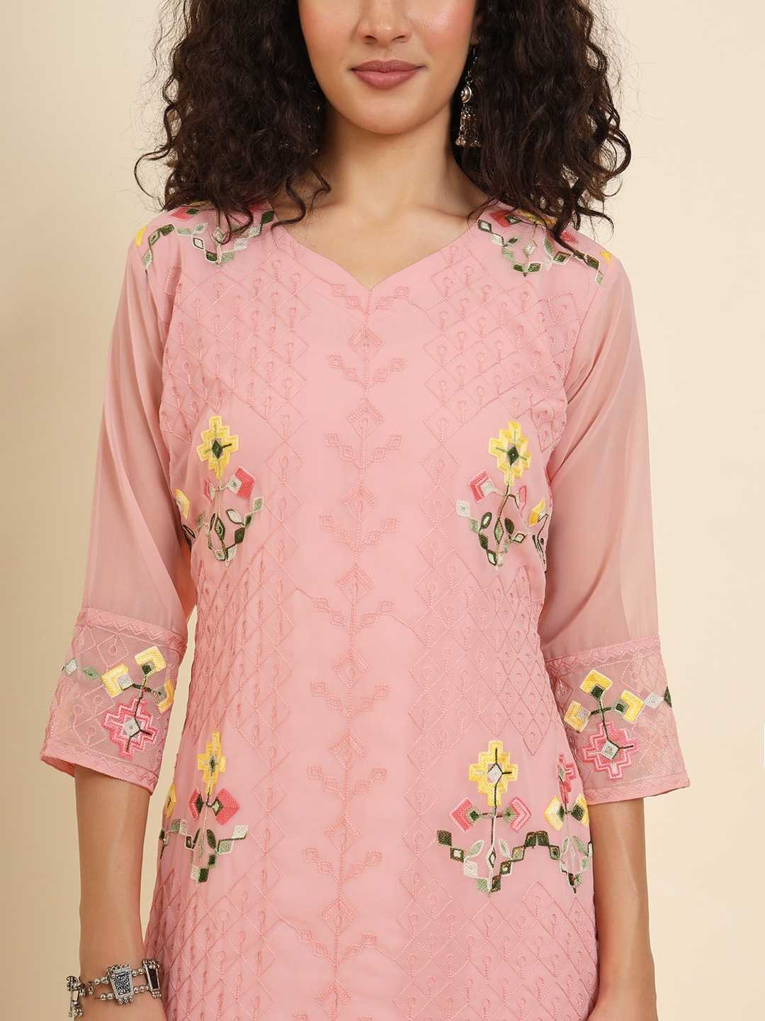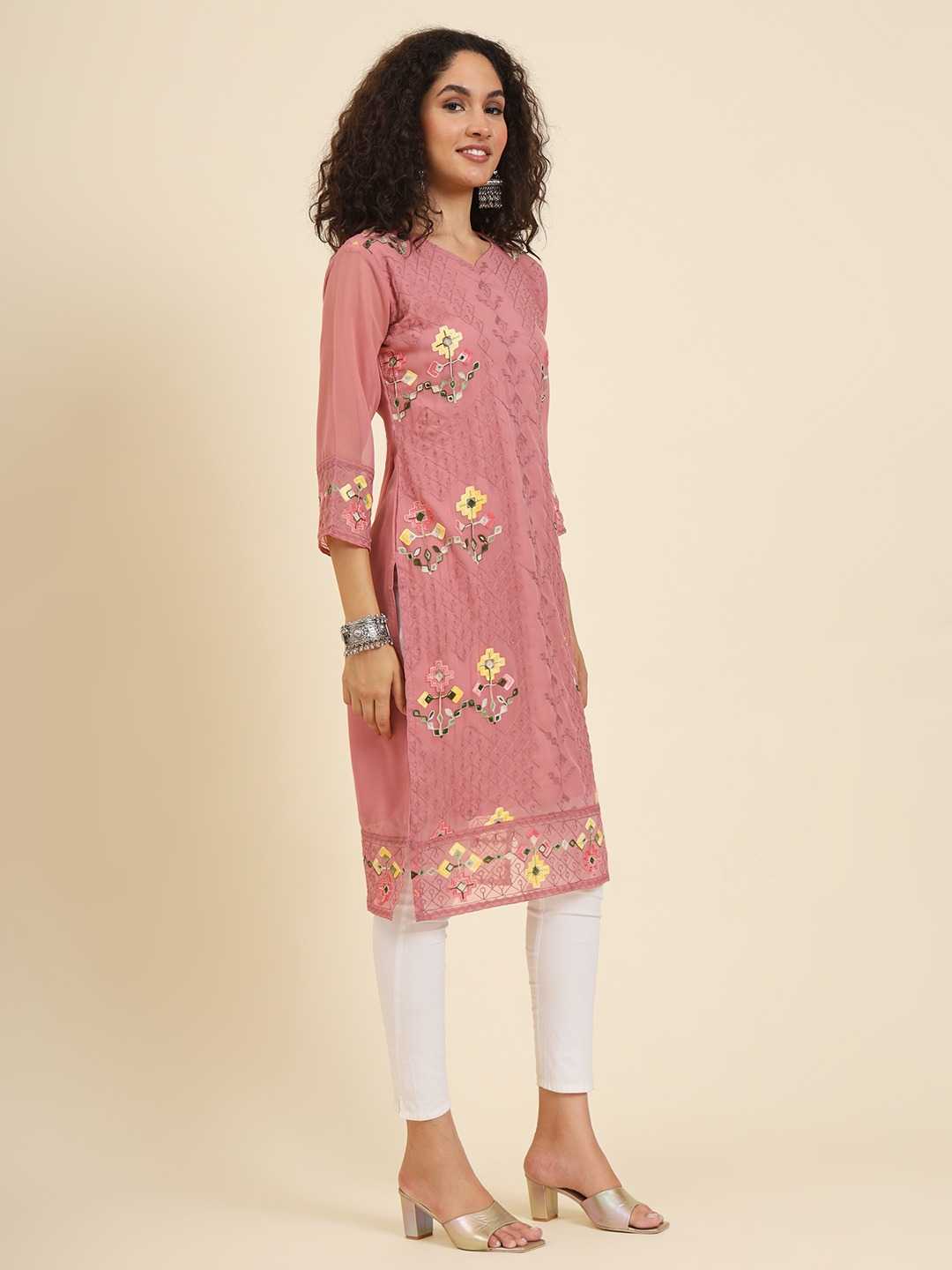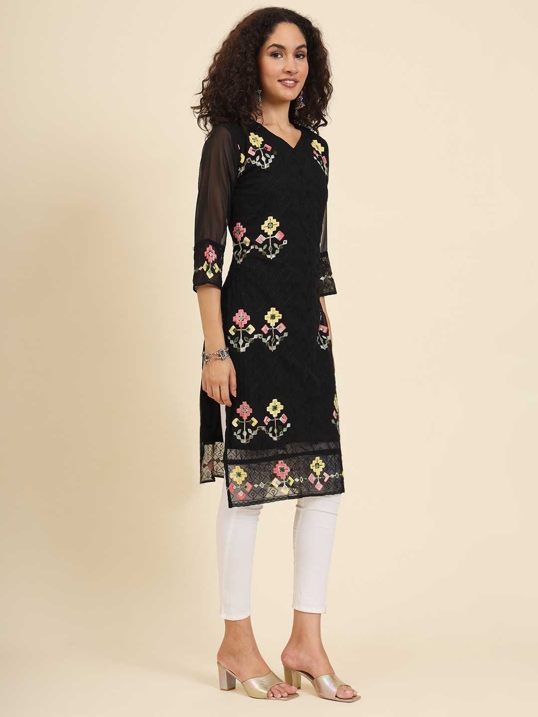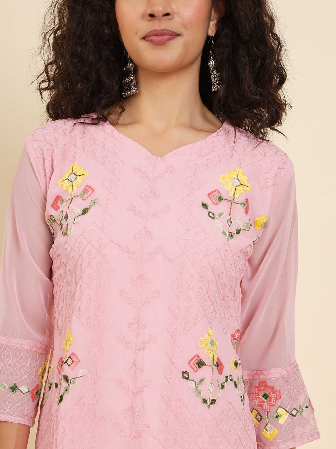 pr white flower vol 8 fancy georgette chikankari long kurti supplier