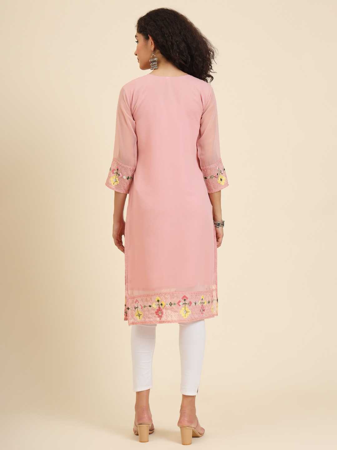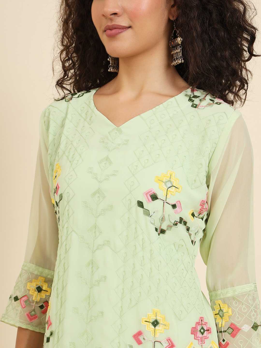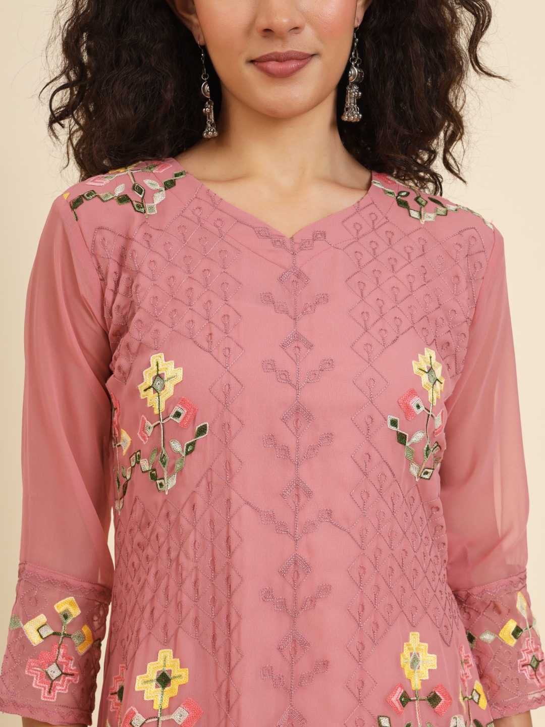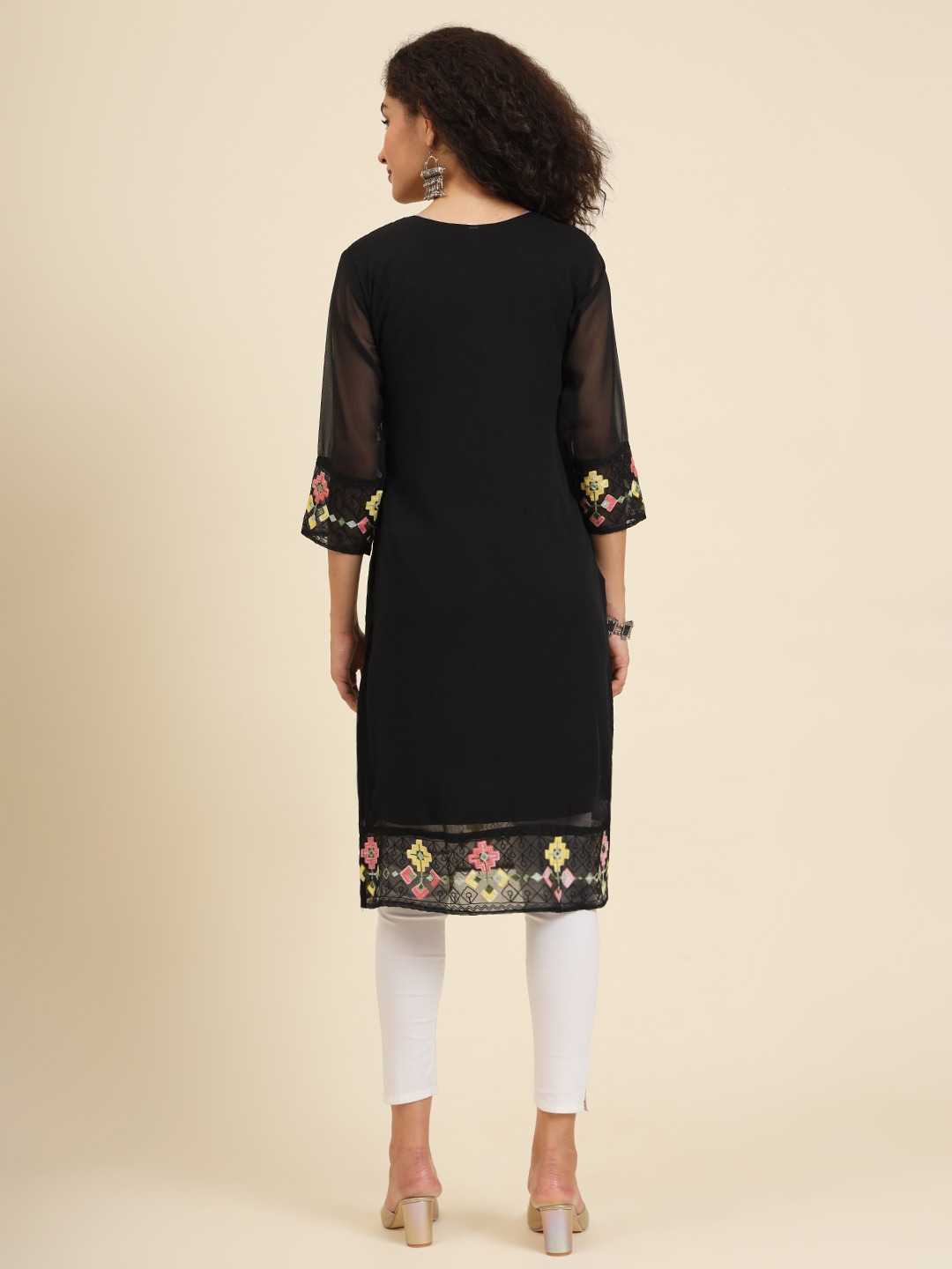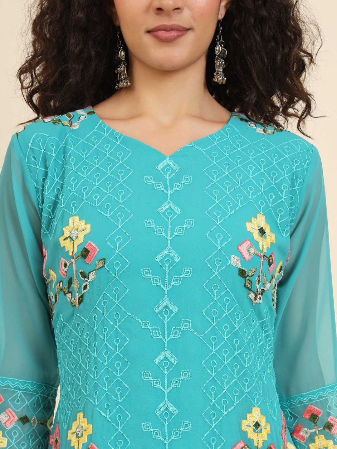 pr white flower vol 8 fancy georgette chikankari long kurti supplier