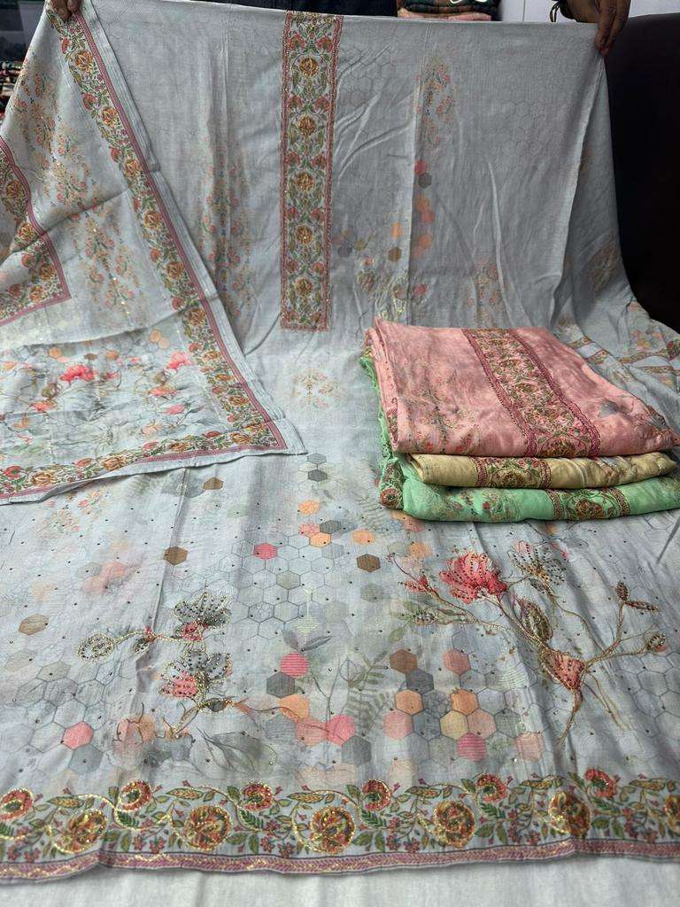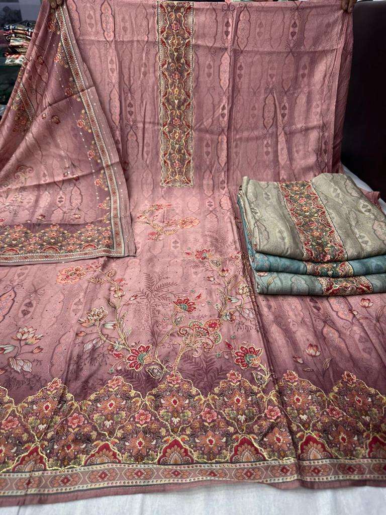 pr with handwork and swaroski work muslin print pakistani suit supplier
