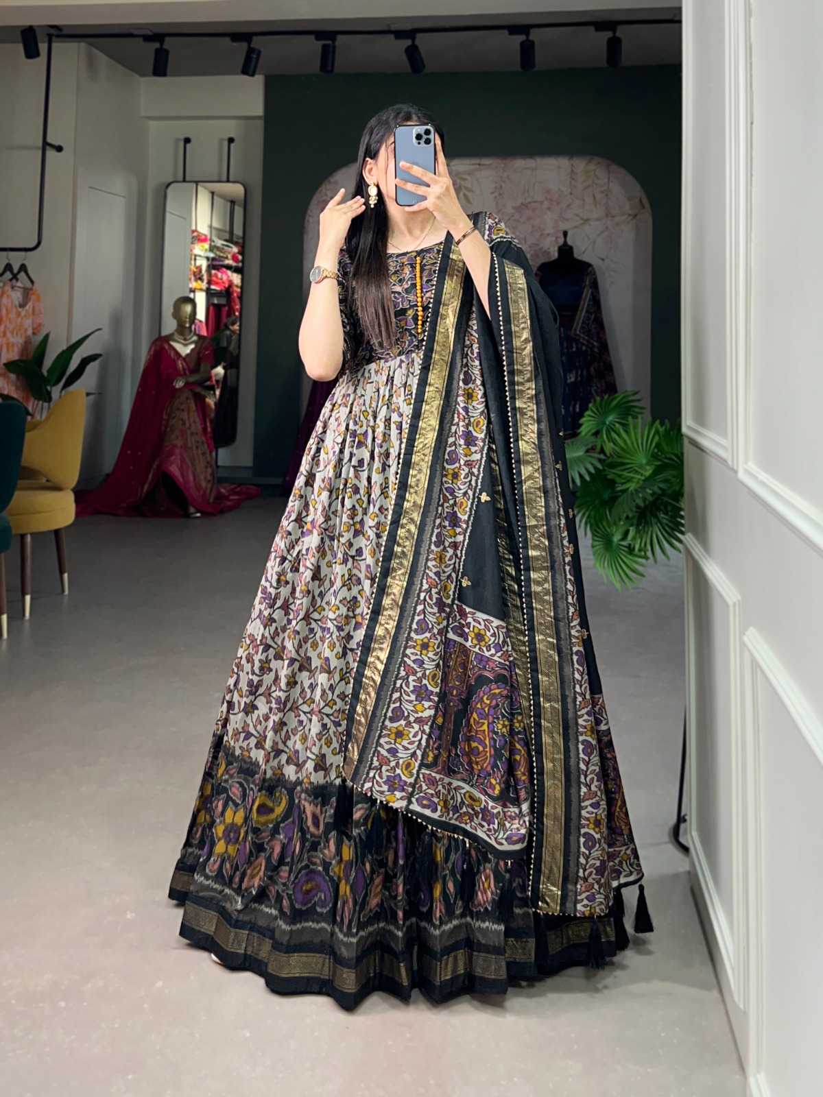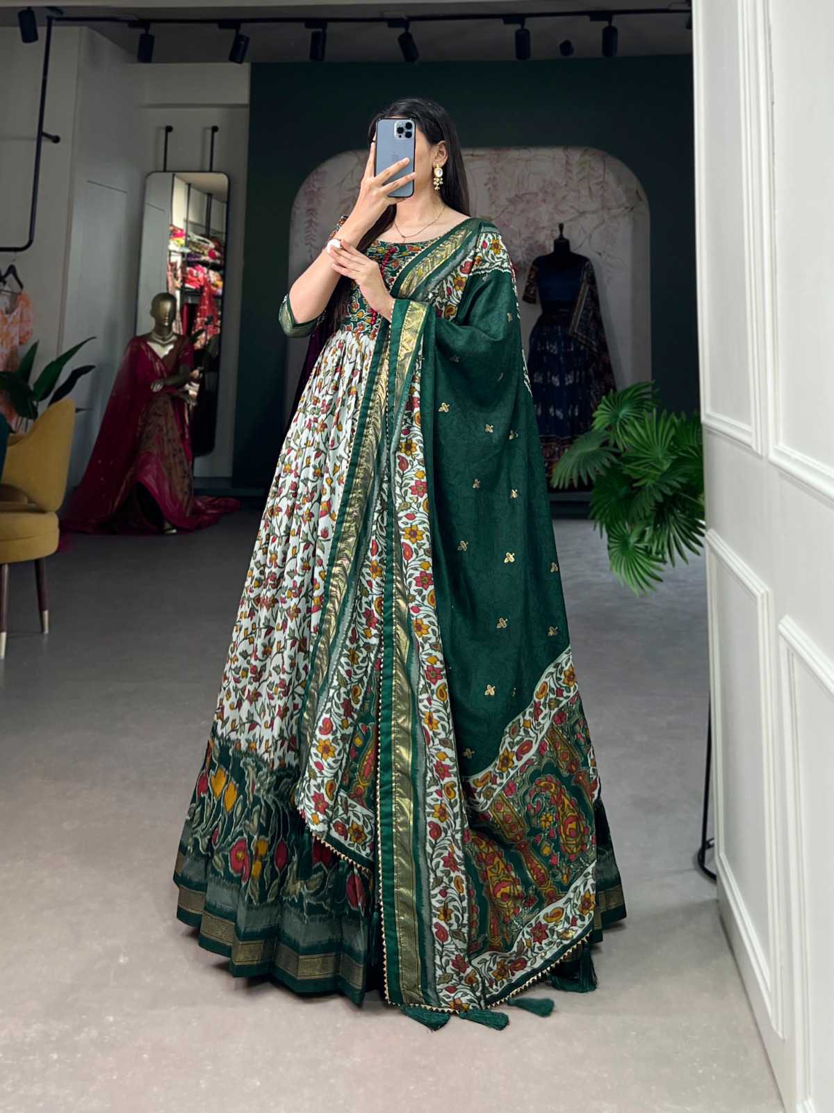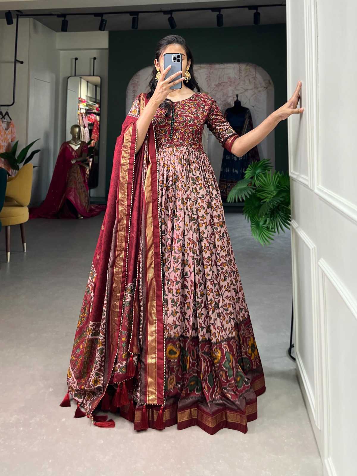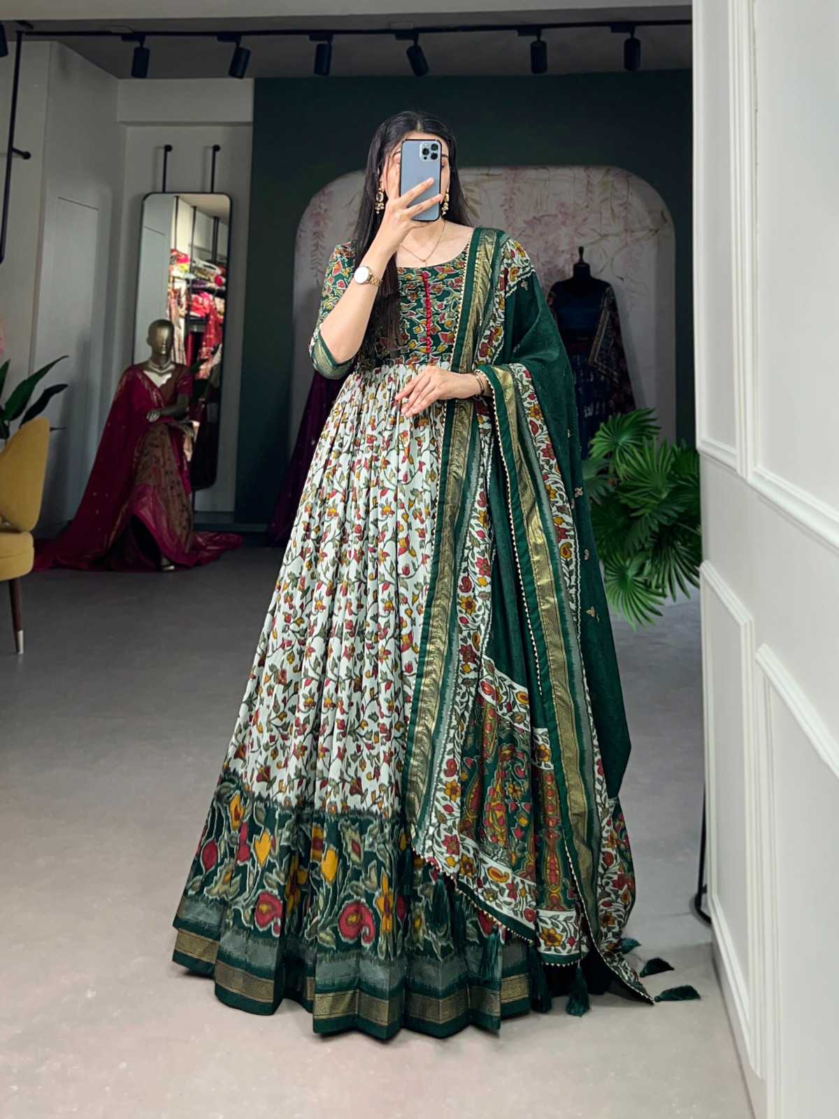pr ynf5036 amazing look tussar silk full stitch long gown with dupatta set